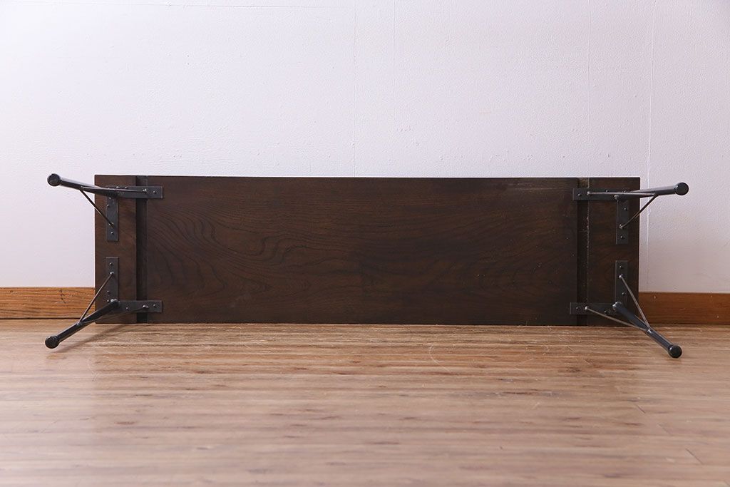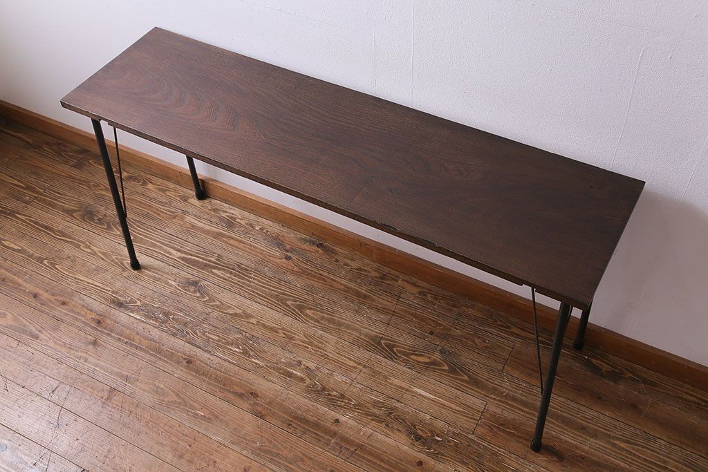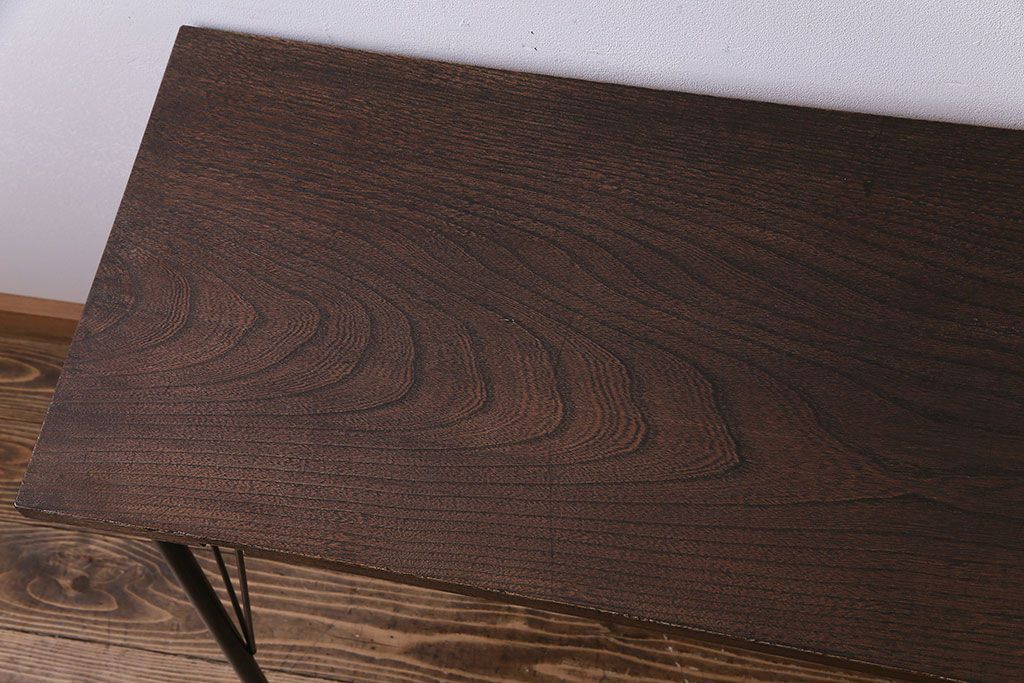 明治大正期 ケヤキ一枚板 古材をリメイクした鉄脚テーブル(コンソールテーブル、作業台)