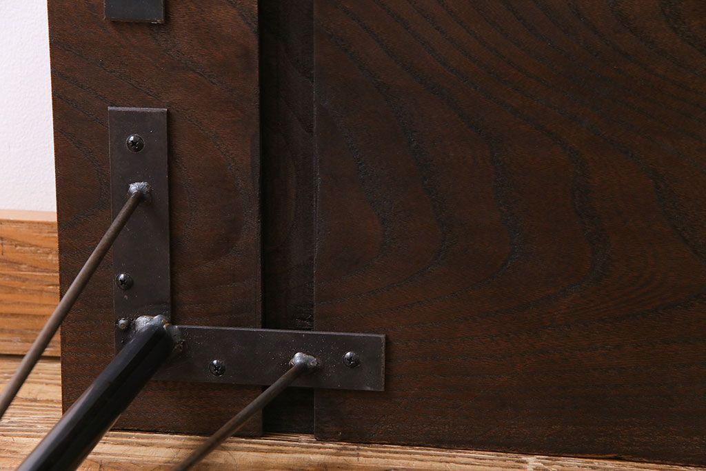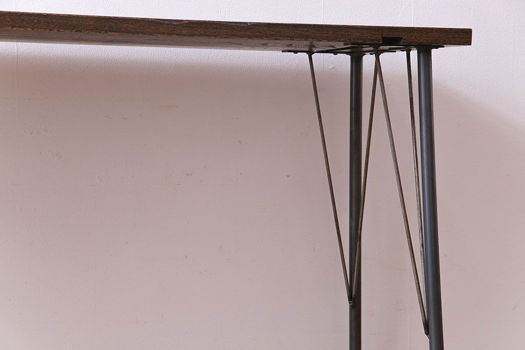 ラフジュ工房> テーブル > 明治大正期 ケヤキ一枚板 古材をリメイクした鉄脚テーブル(コンソールテーブル、作業台)