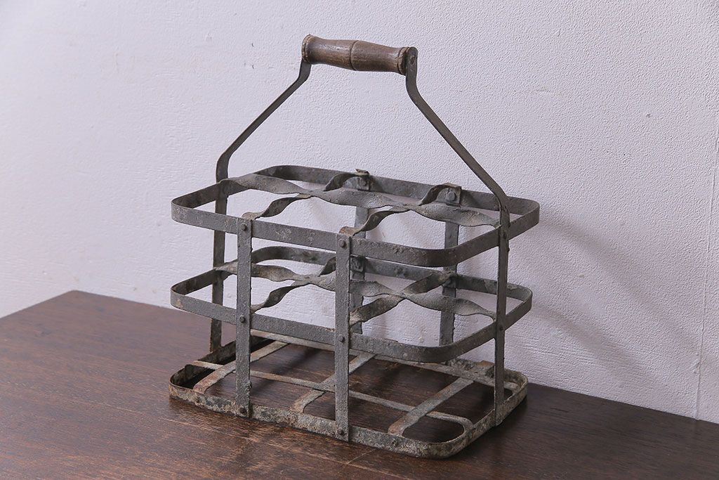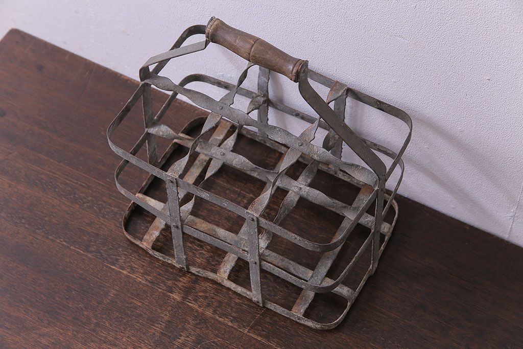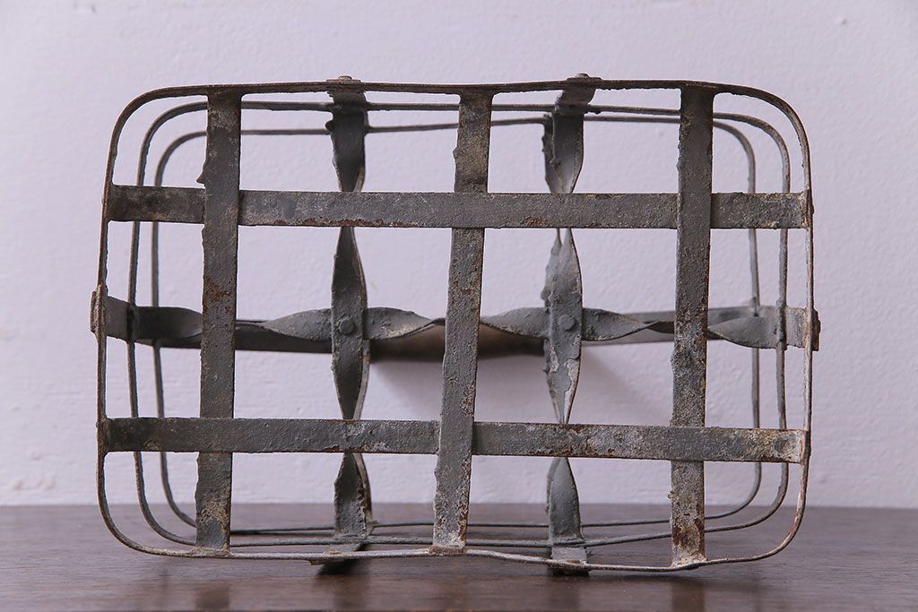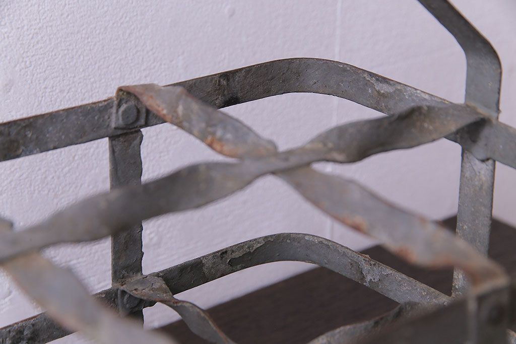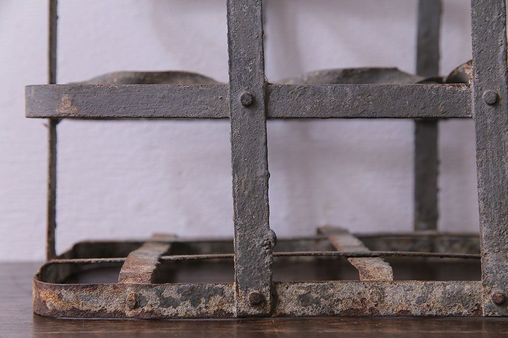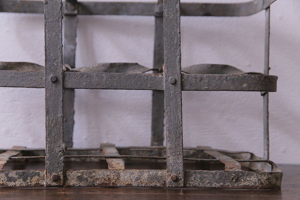 ラフジュ工房> 小物収納・トランク> バスケット > アンティーク雑貨 イギリスビンテージ 錆びた風合いがお洒落なアイアン製ボトルラック(ボトルケース)(1)