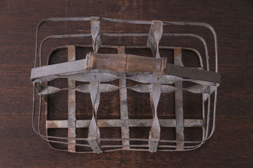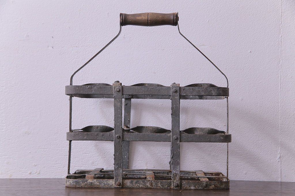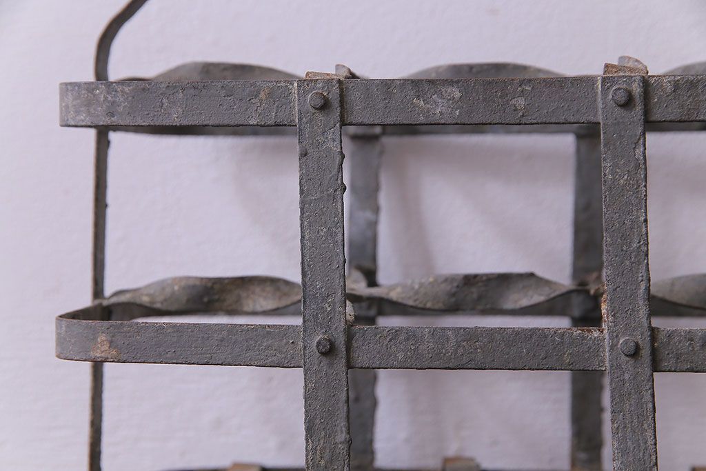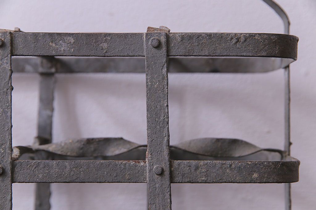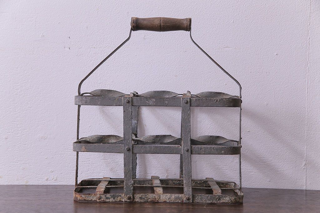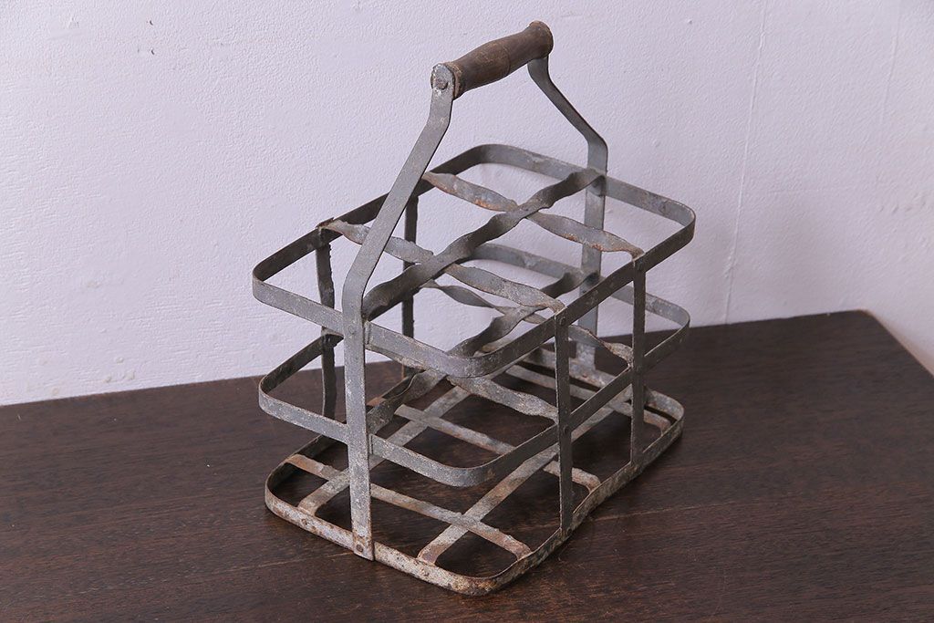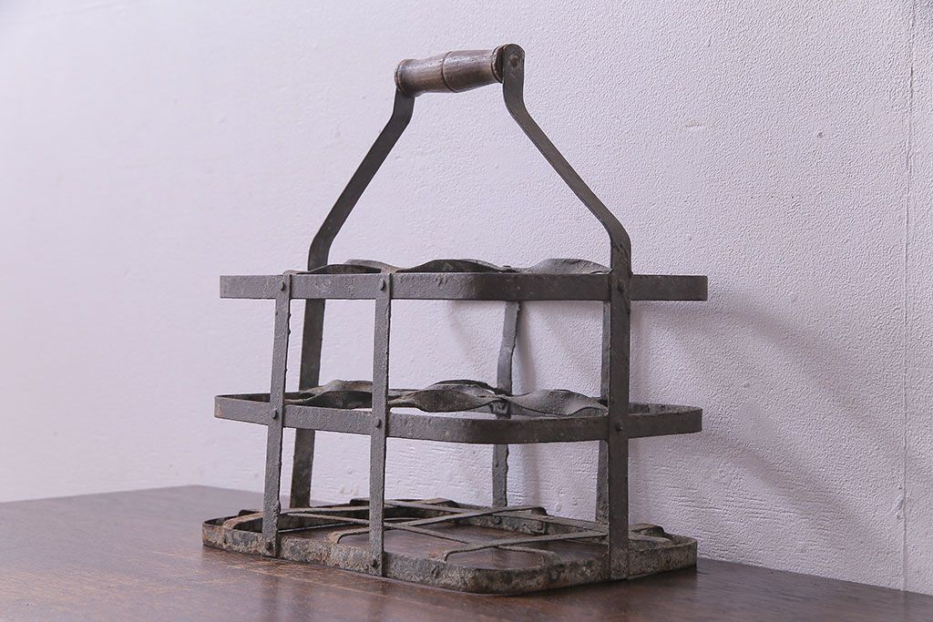 ラフジュ工房> 小物収納・トランク> バスケット > アンティーク雑貨 イギリスビンテージ 錆びた風合いがお洒落なアイアン製ボトルラック(ボトルケース)(1)
