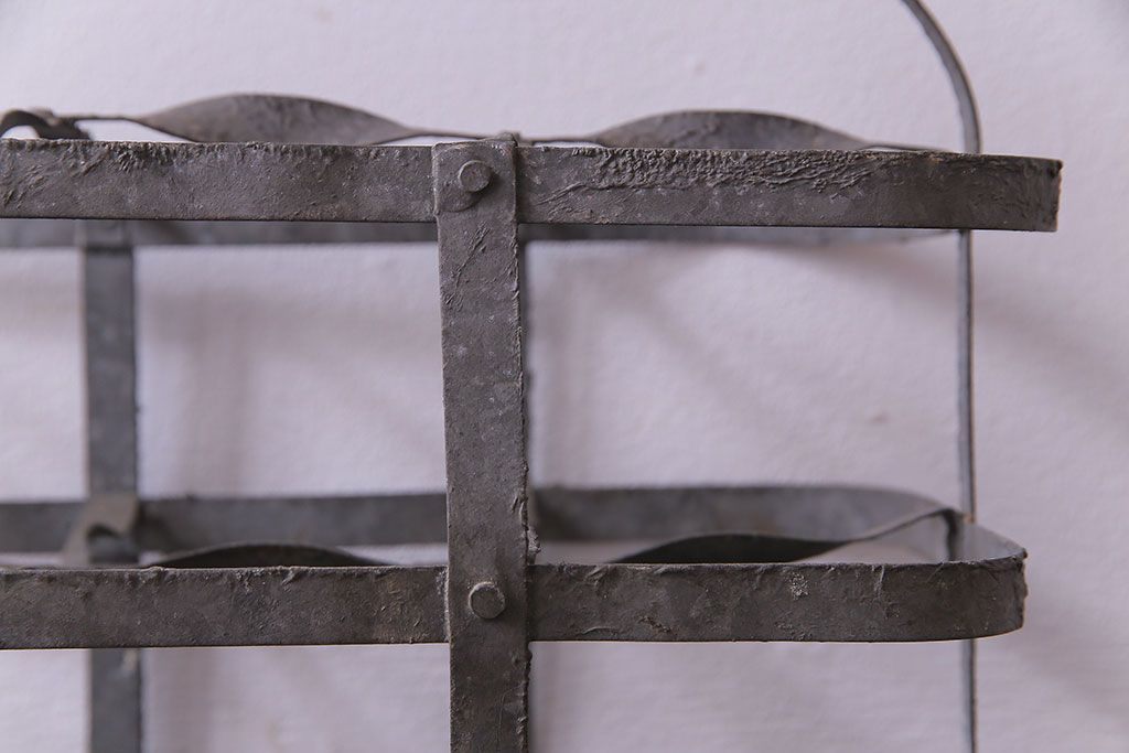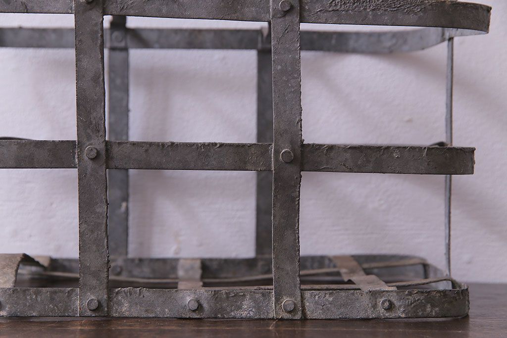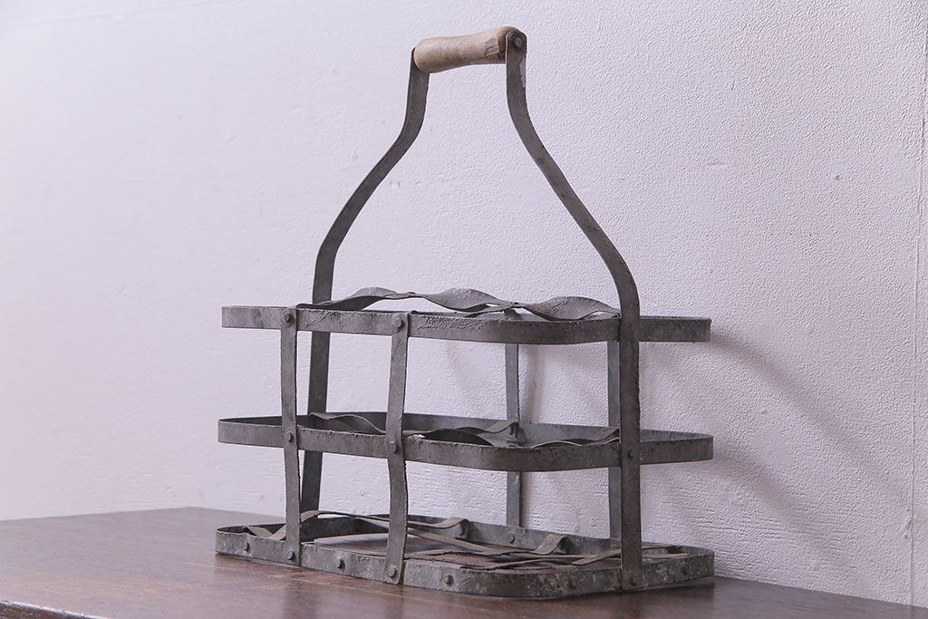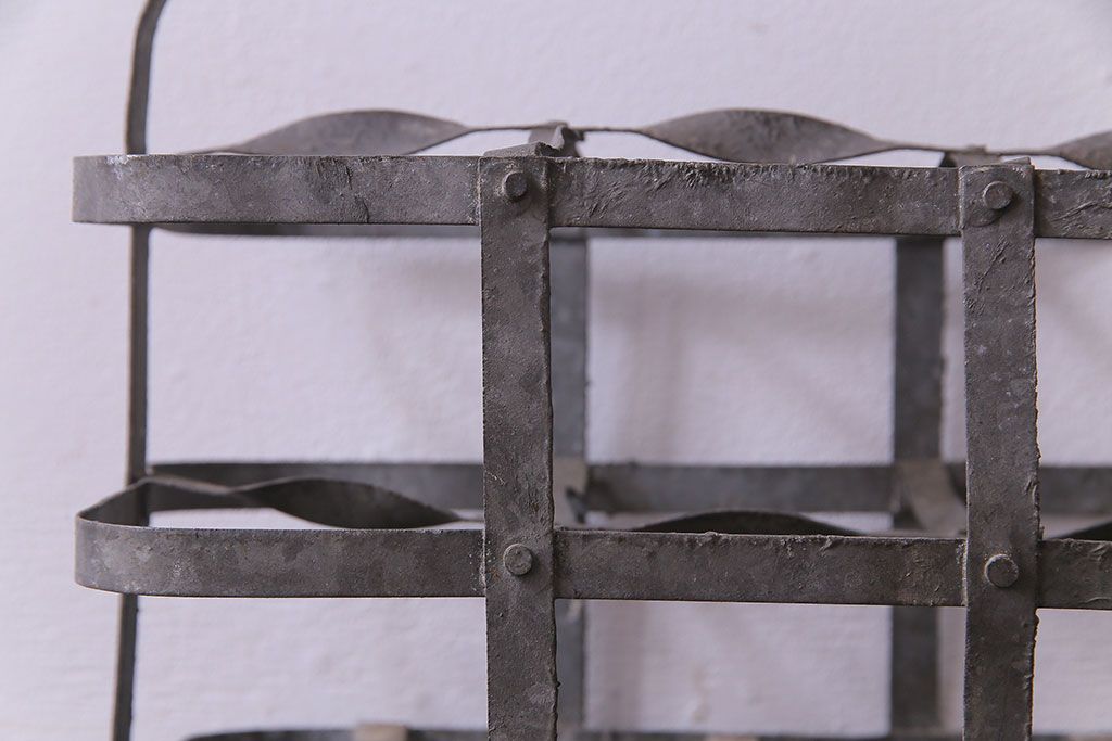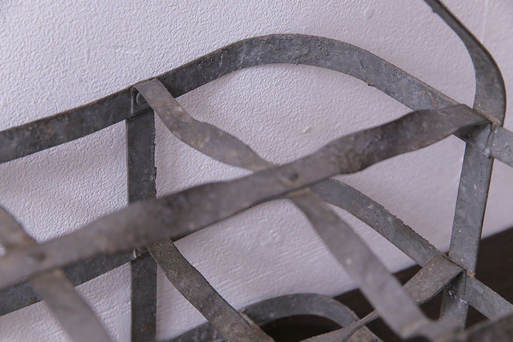 ラフジュ工房> 小物収納・トランク> バスケット > アンティーク雑貨 イギリスビンテージ 錆びた風合いがお洒落なアイアン製ボトルラック(ボトルケース)(2)