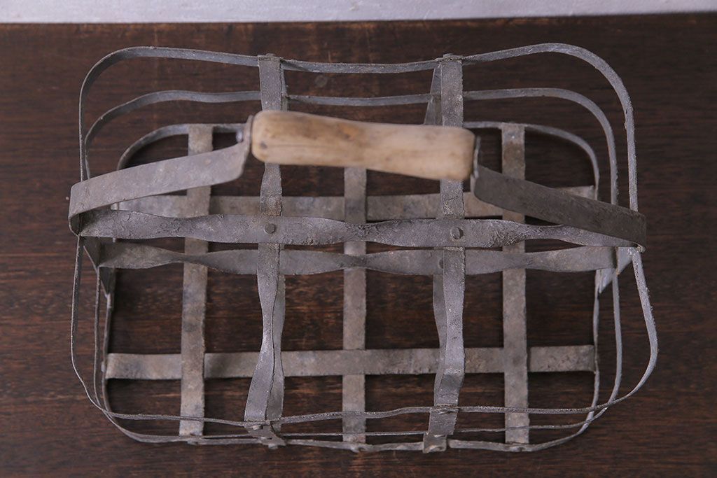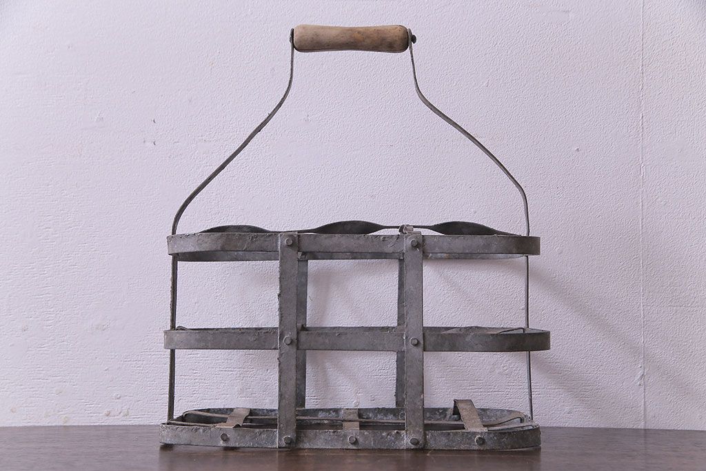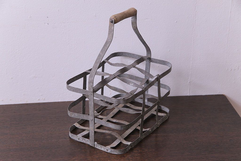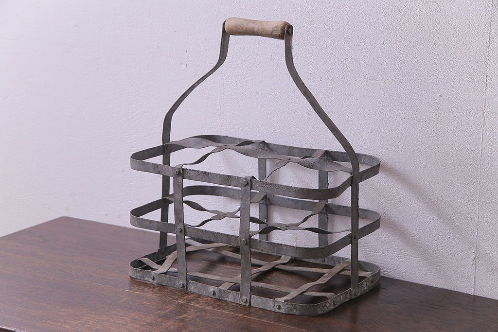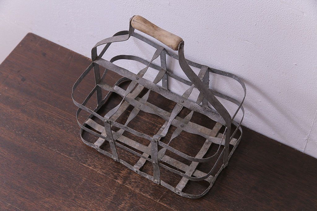 ラフジュ工房> 小物収納・トランク> バスケット > アンティーク雑貨 イギリスビンテージ 錆びた風合いがお洒落なアイアン製ボトルラック(ボトルケース)(2)