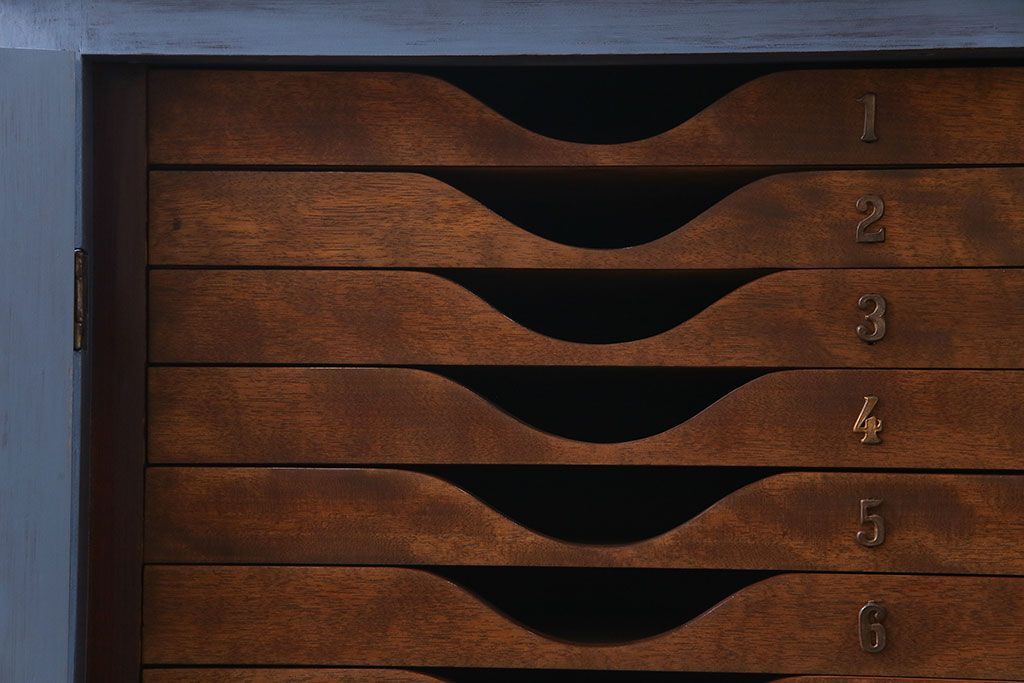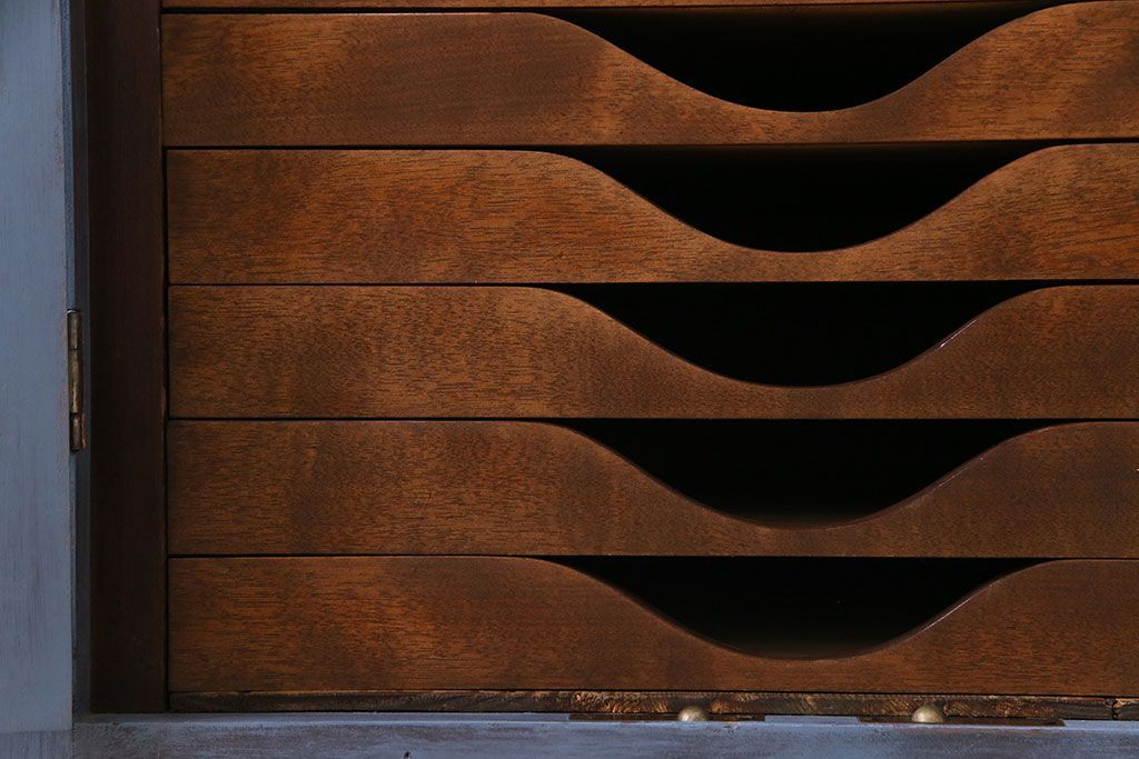 ラフジュ工房> チェスト・引き出し > アンティーク雑貨 和製アンティーク 当店ペイント シャビーな風合いと落ち着いた色味が魅力のレコードケース(サイドチェスト)