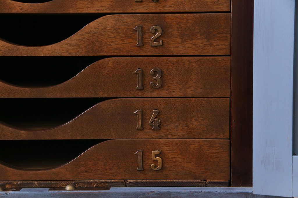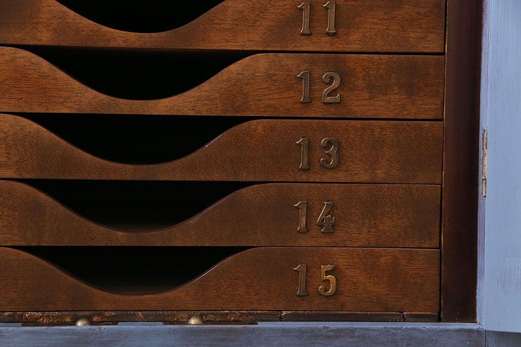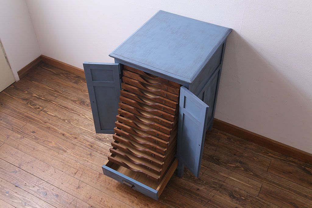 ラフジュ工房> チェスト・引き出し> サイドチェスト > アンティーク雑貨 和製アンティーク 当店ペイント シャビーな風合いと落ち着いた色味が魅力のレコードケース(サイドチェスト)
