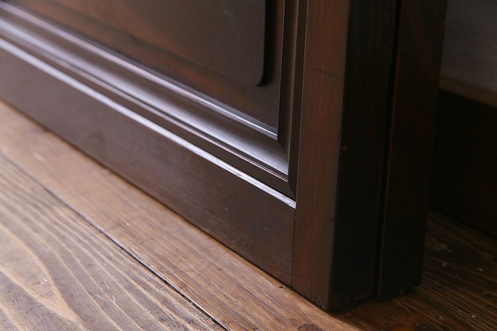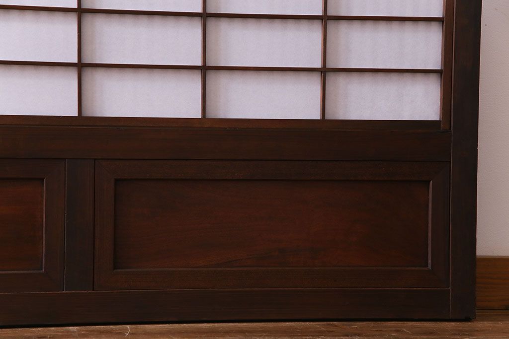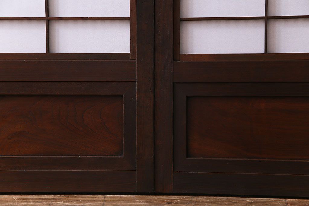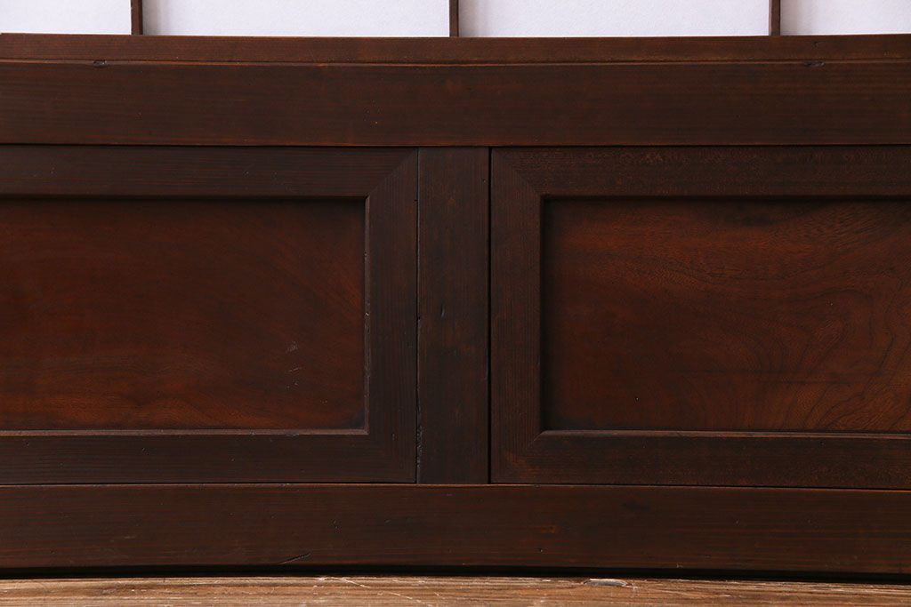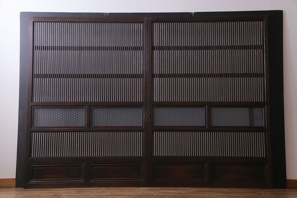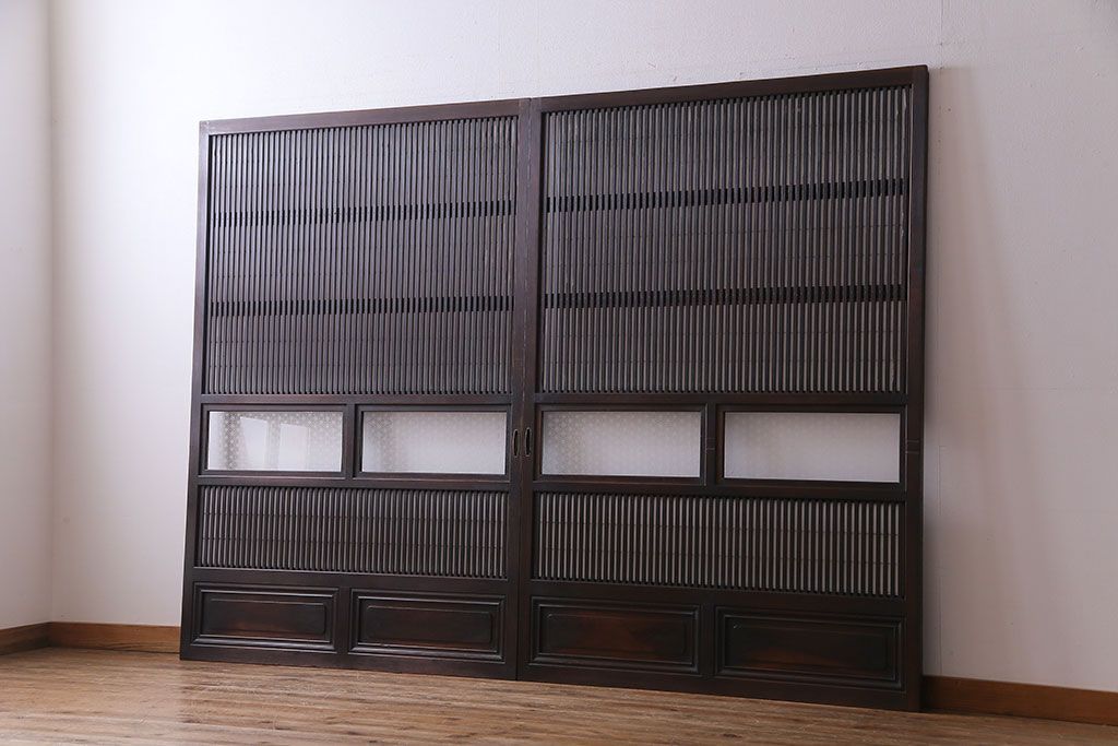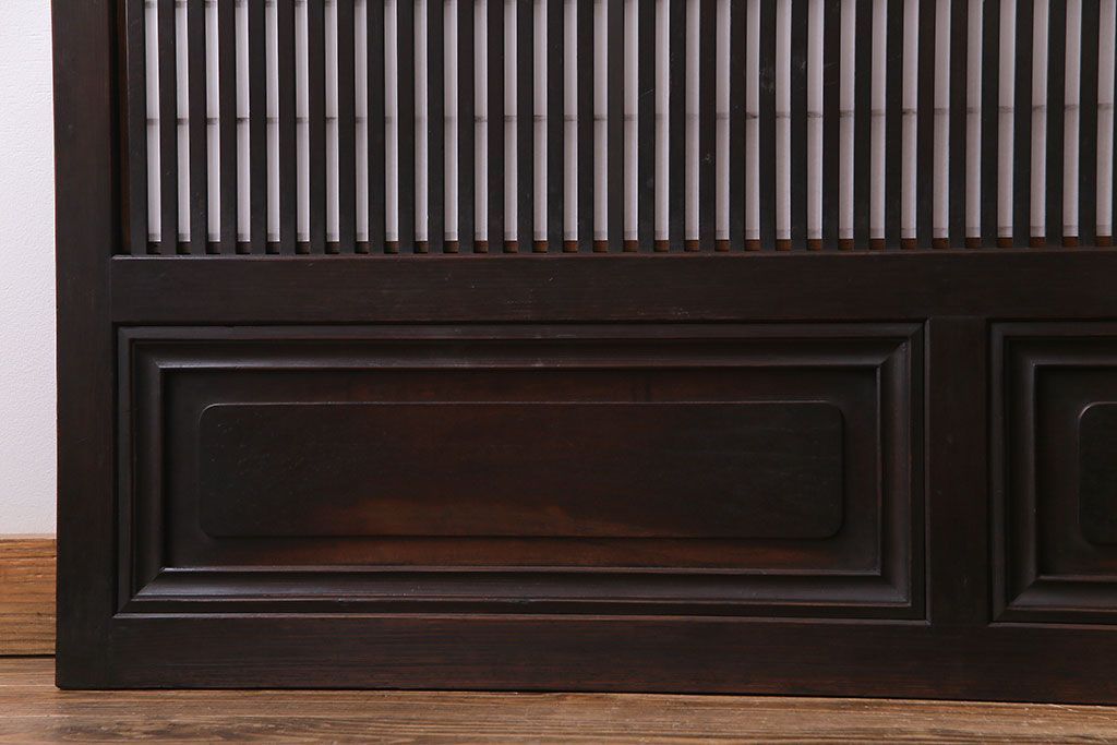和製アンティーク 腰板ケヤキ材 花ガラスが上品な裏障子付きの格子戸(障子戸、引き戸、建具)2枚セットです。