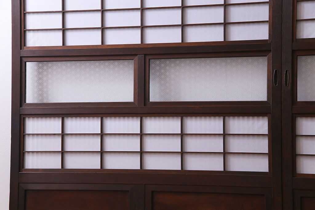 和製アンティーク 腰板ケヤキ材 花ガラスが上品な裏障子付きの格子戸(障子戸、引き戸、建具)2枚セット