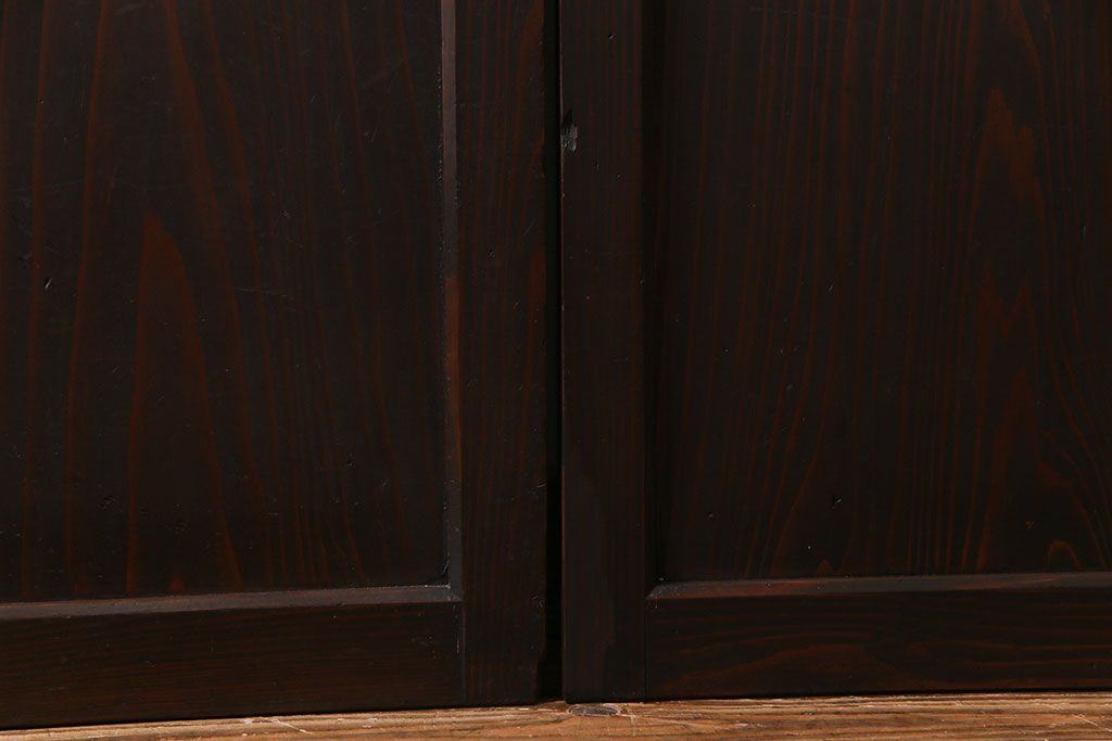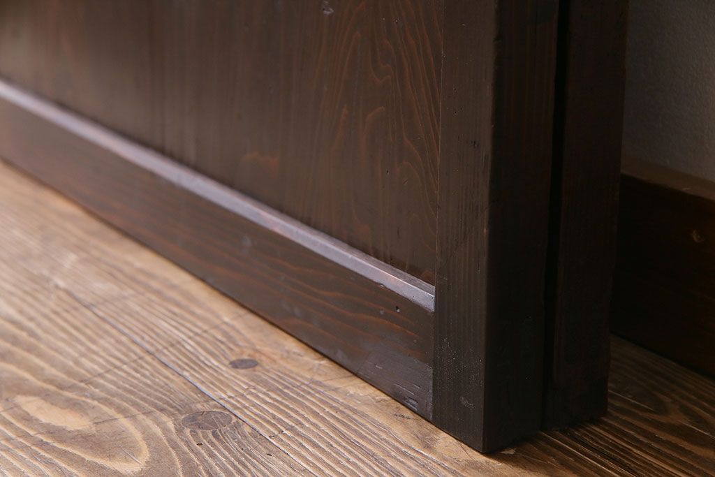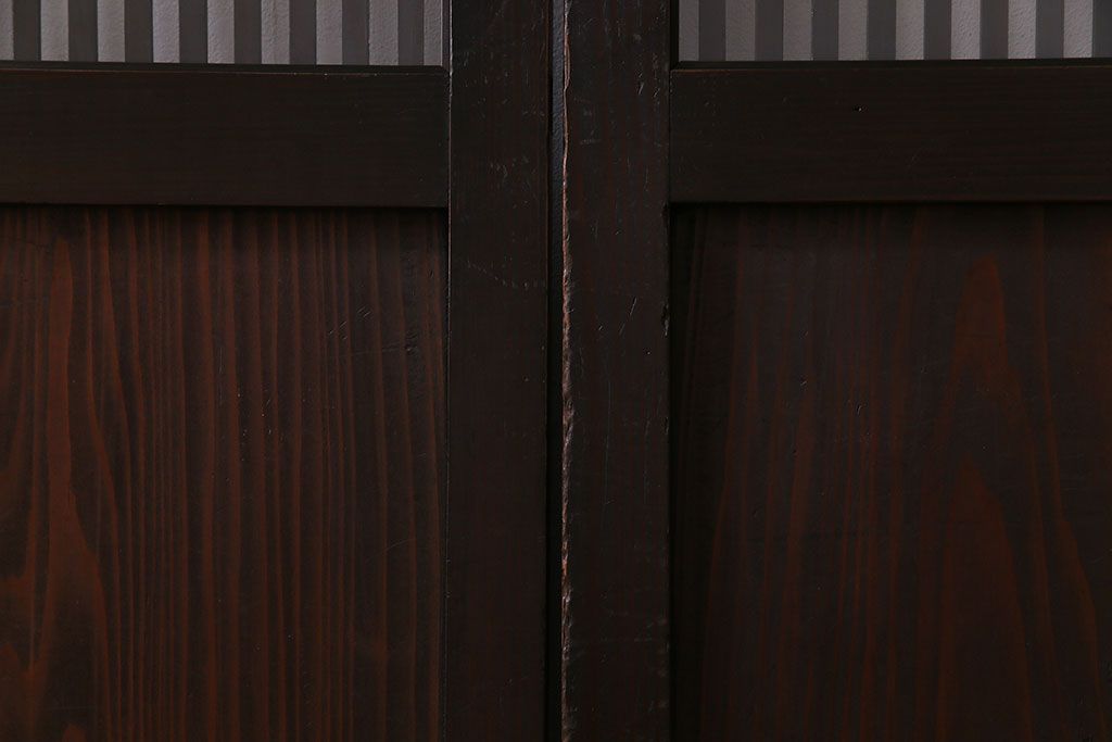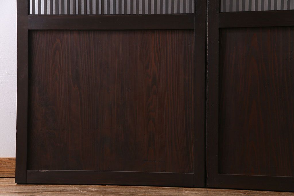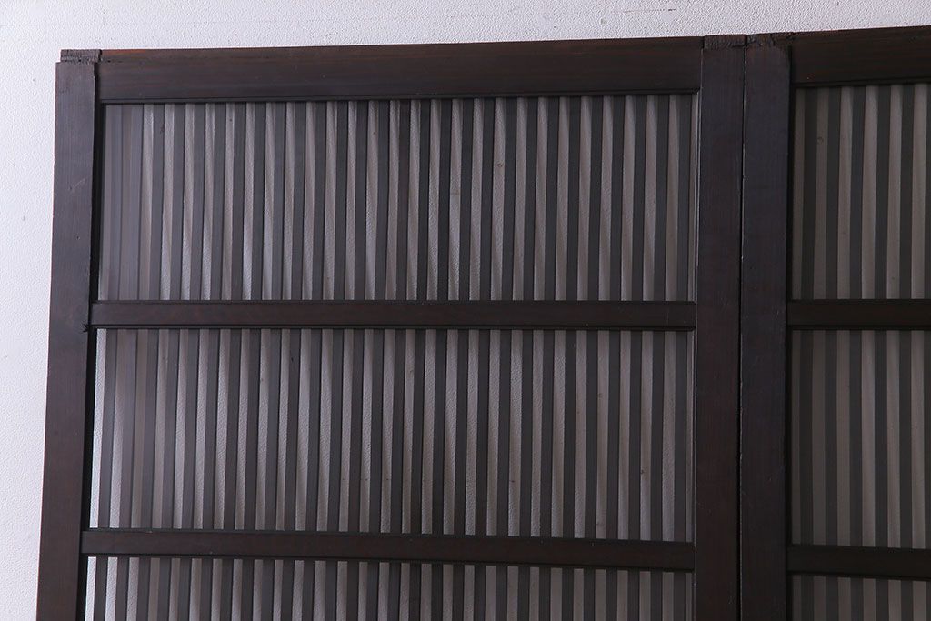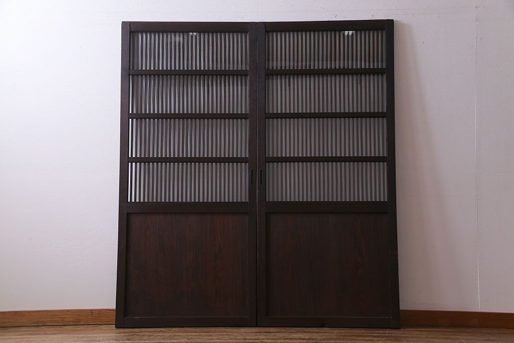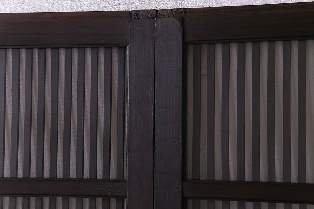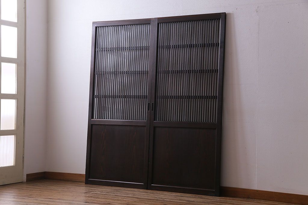 ラフジュ工房> 衝立・パーテーション> スタンド式衝立 > 和製アンティーク 和モダンの雰囲気漂う縦桟の美しいガラス入り格子戸(引き戸、仕切り戸、建具)2枚組