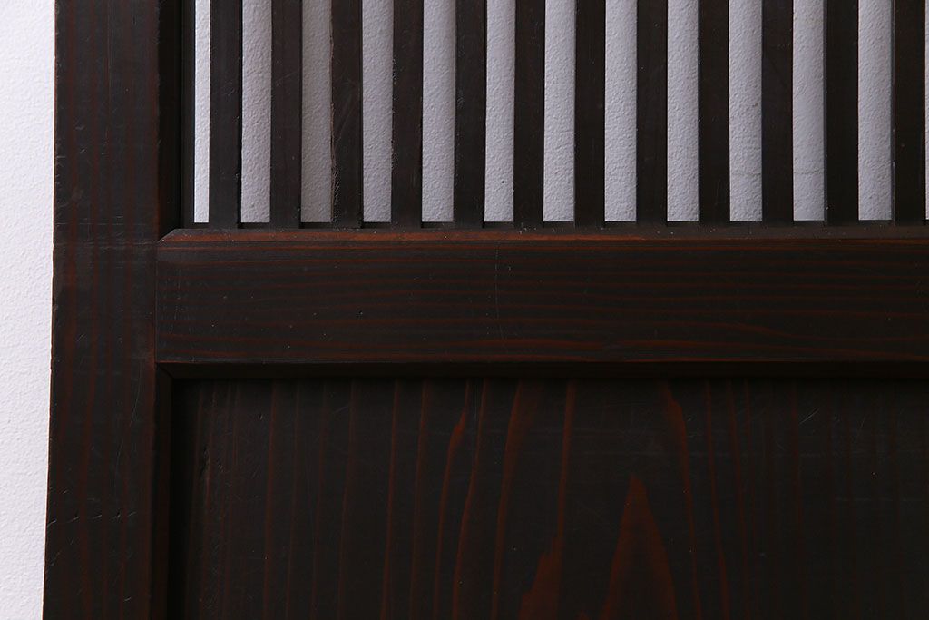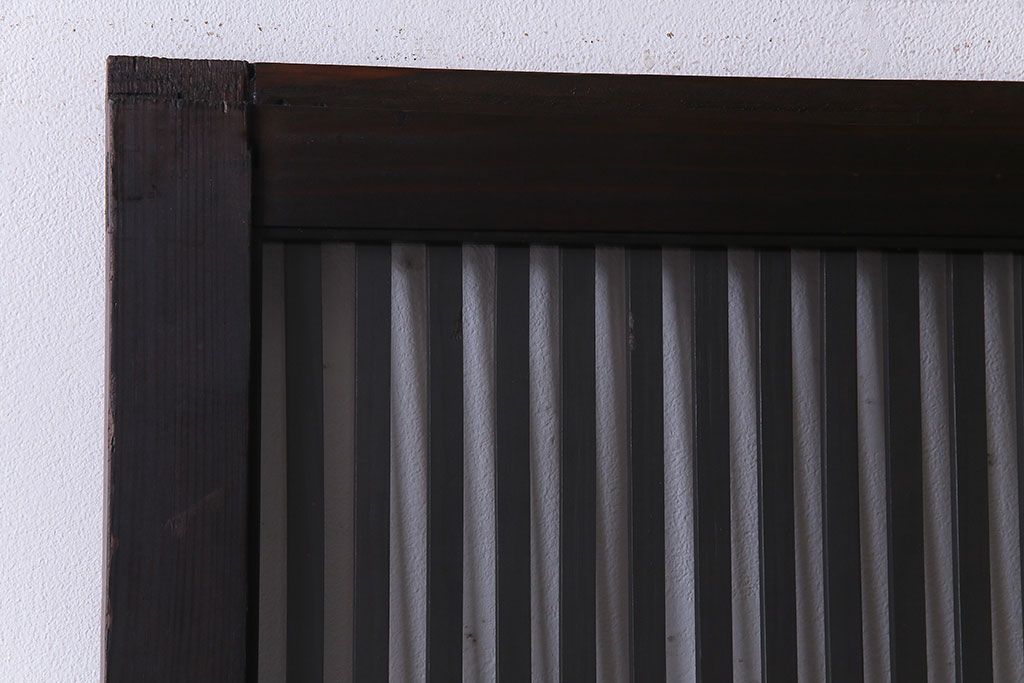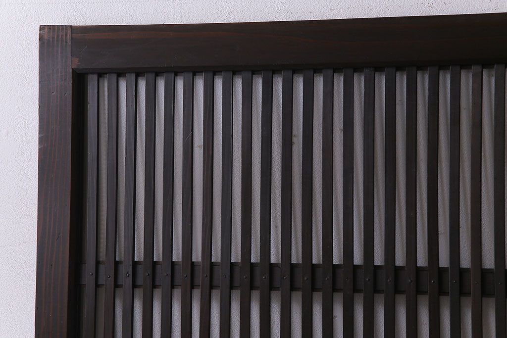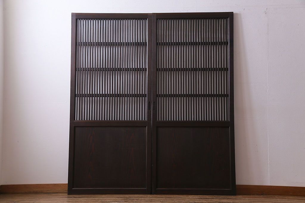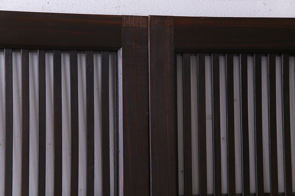 ラフジュ工房> 衝立・パーテーション > 和製アンティーク 和モダンの雰囲気漂う縦桟の美しいガラス入り格子戸(引き戸、仕切り戸、建具)2枚組