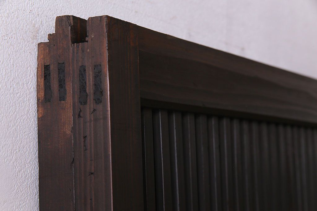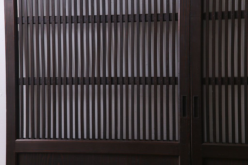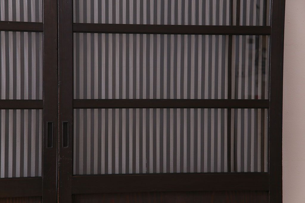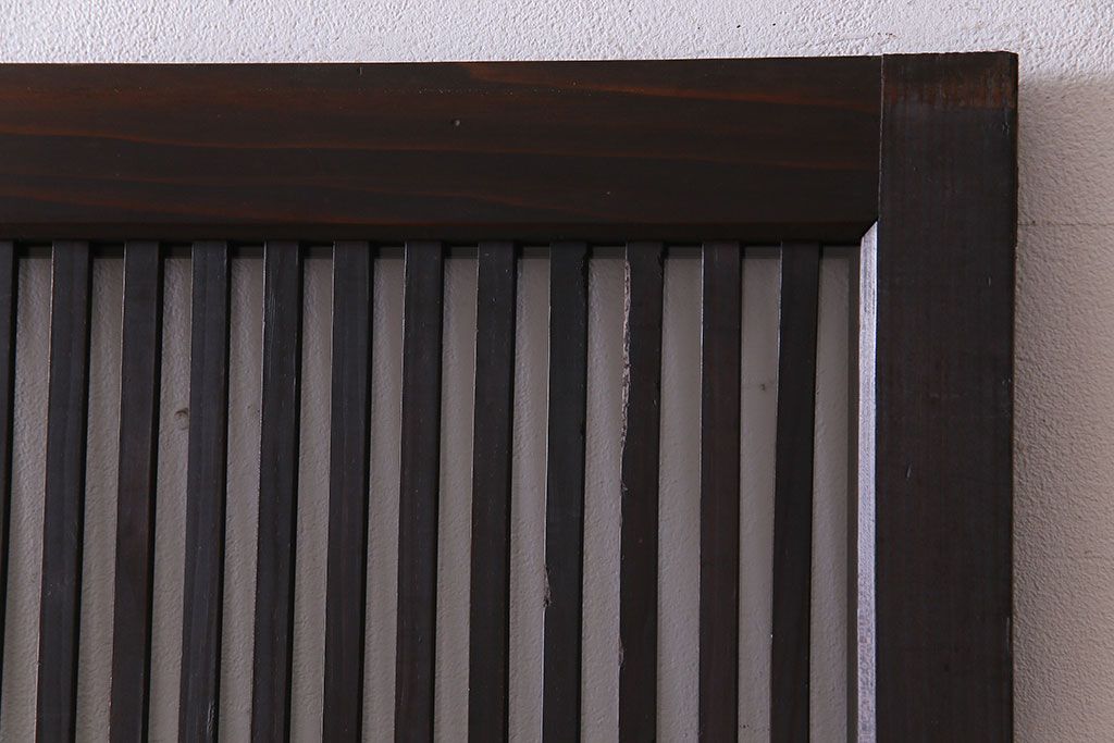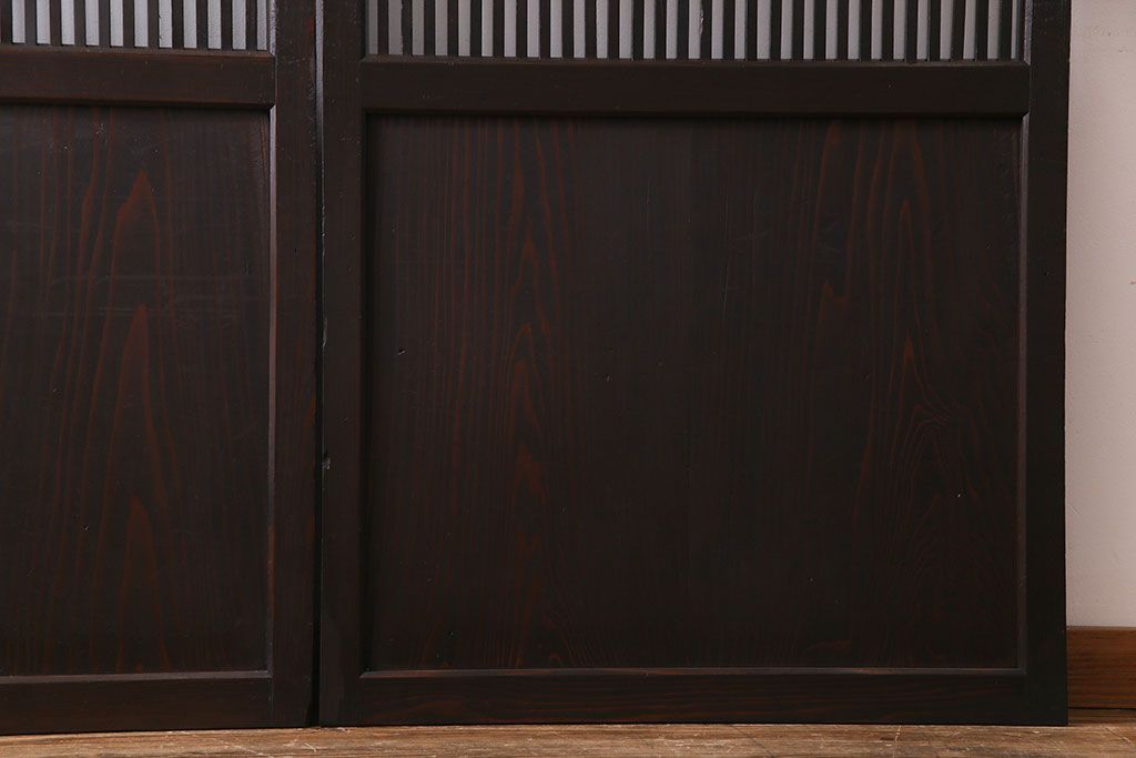 ラフジュ工房> 衝立・パーテーション > 和製アンティーク 和モダンの雰囲気漂う縦桟の美しいガラス入り格子戸(引き戸、仕切り戸、建具)2枚組