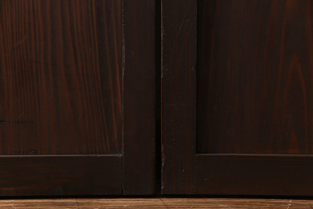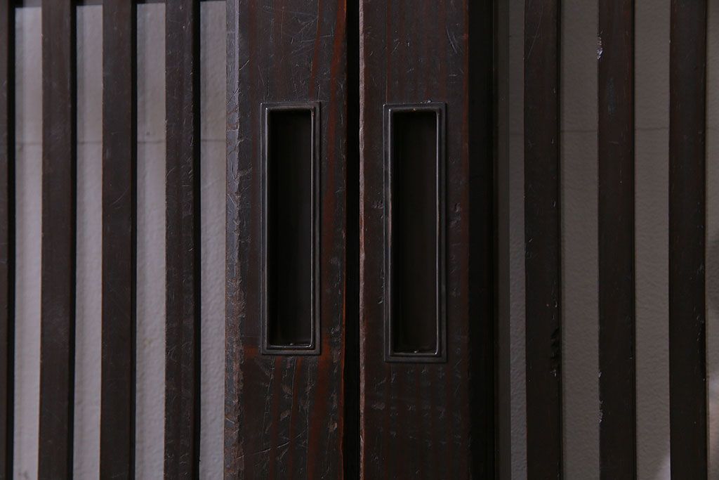 ラフジュ工房> ドア・建具> 格子戸 > 和製アンティーク 和モダンの雰囲気漂う縦桟の美しいガラス入り格子戸(引き戸、仕切り戸、建具)2枚組