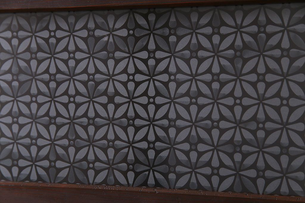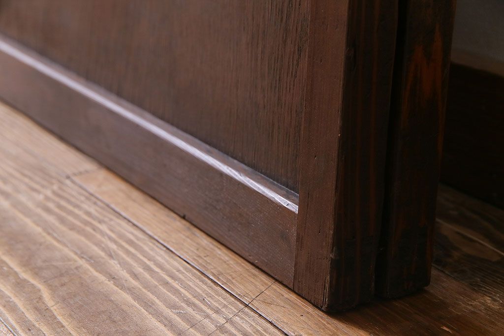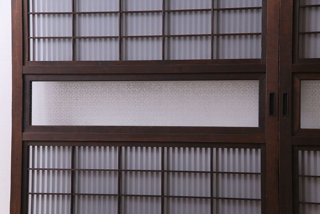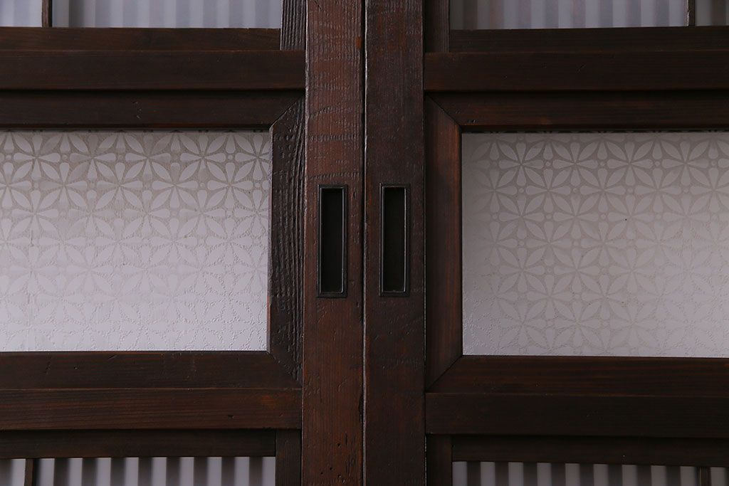 ドア・建具> 2枚・3枚セット > 大正昭和初期 板ガラス裏障子留め オリジナル花ガラスの入ったレトロな帯戸(ガラス帯戸、ガラス戸、引き戸、建具)2枚組