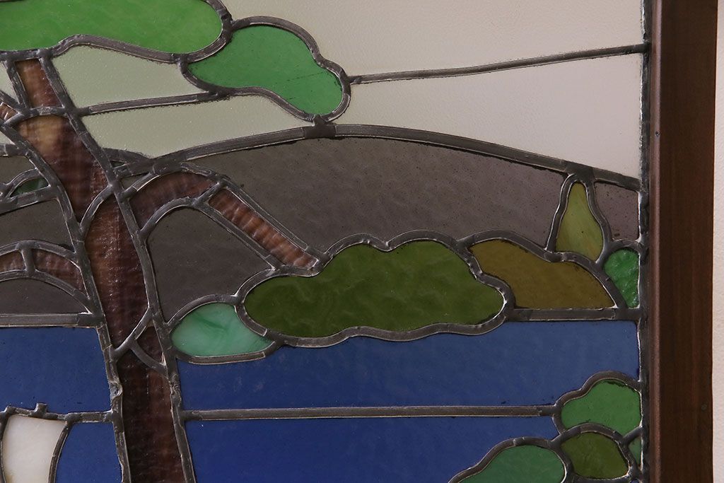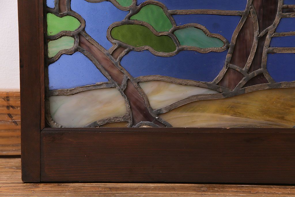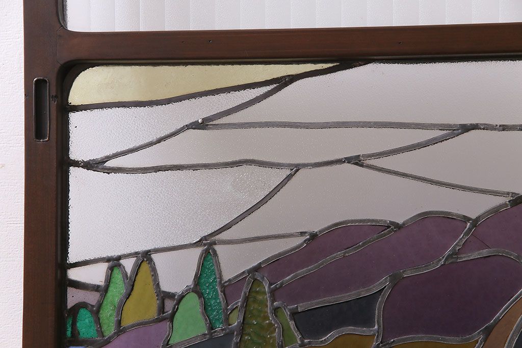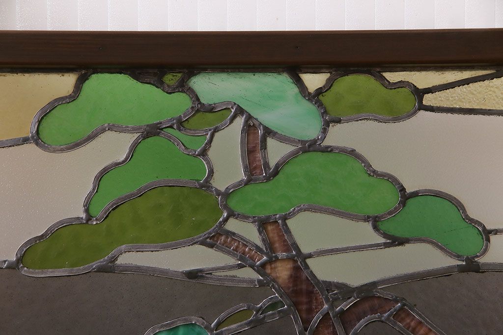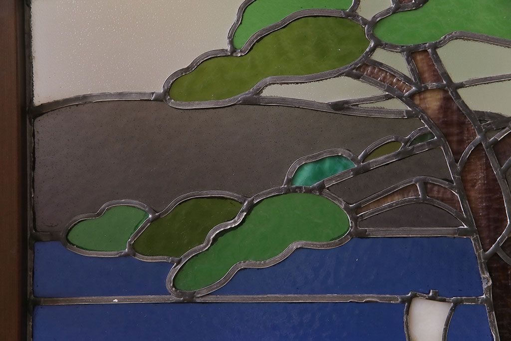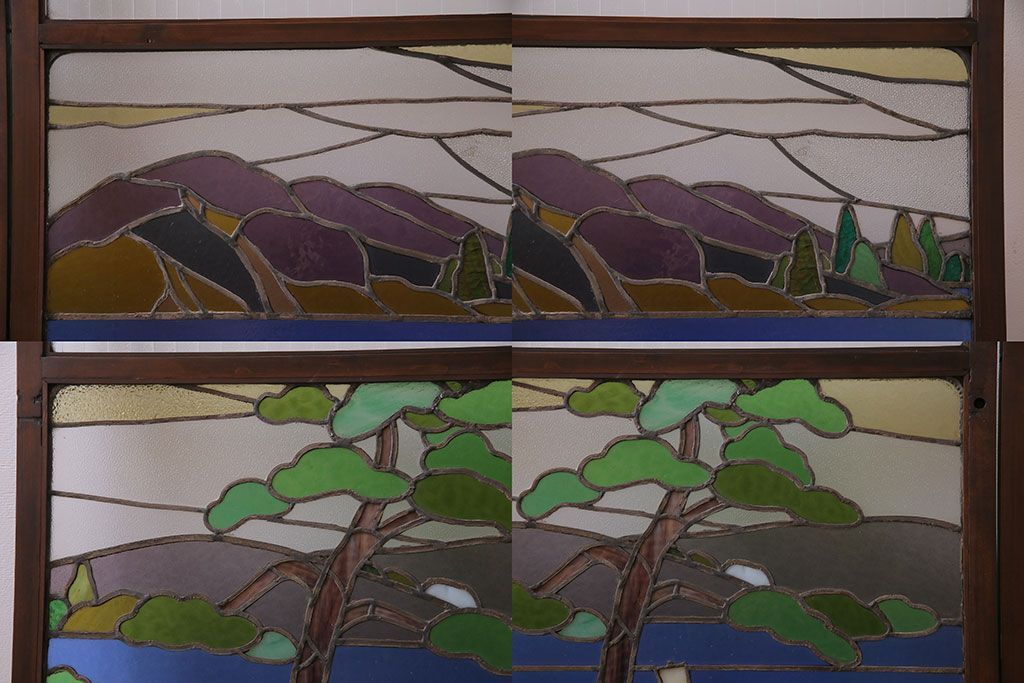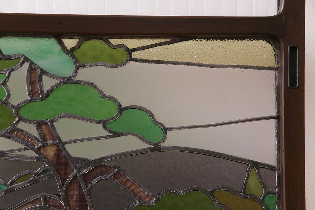 激レア品! 大正昭和初期 当時もの色ガラス 松原を描いたステンドグラス引き戸(ガラス戸、建具)