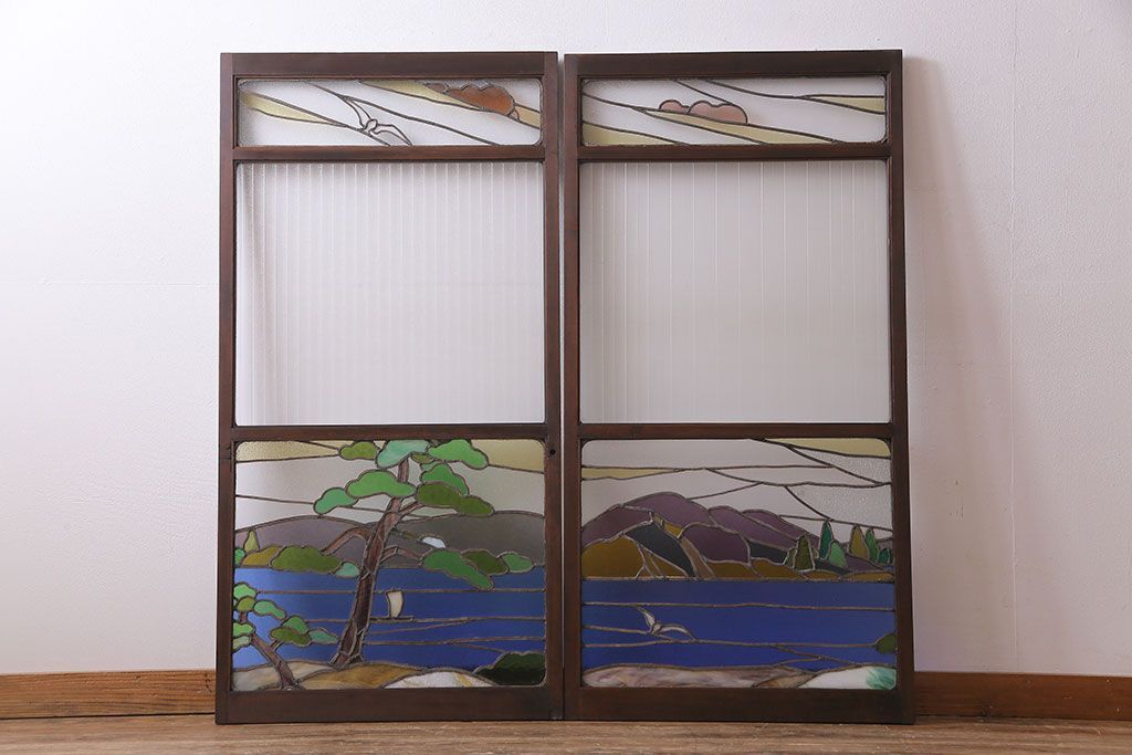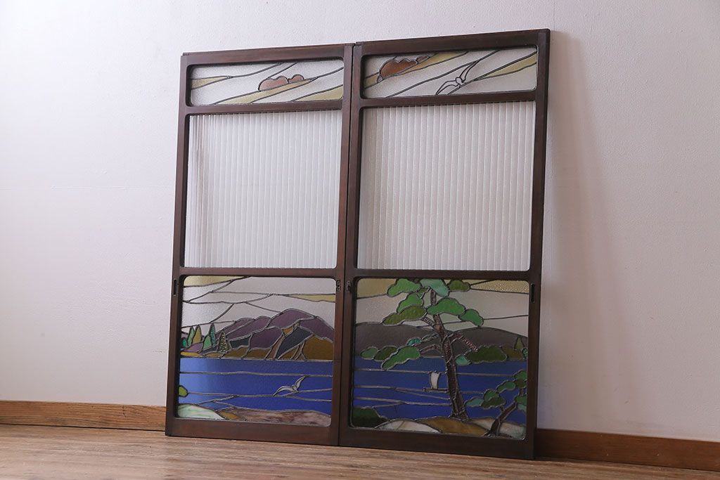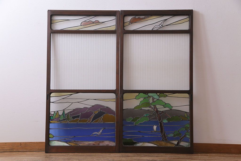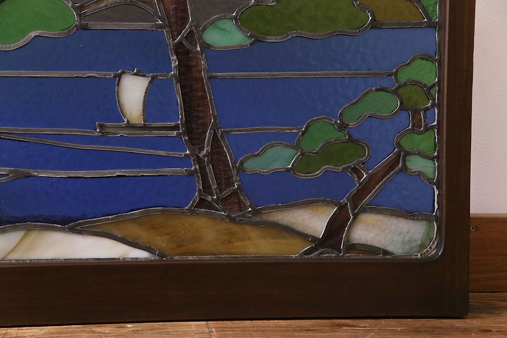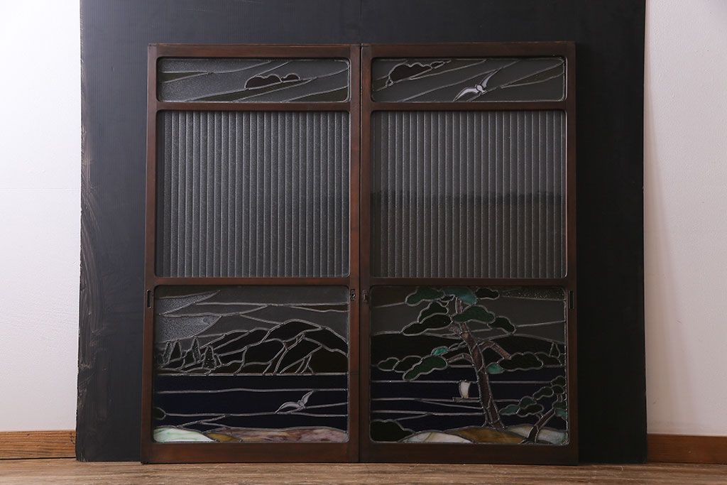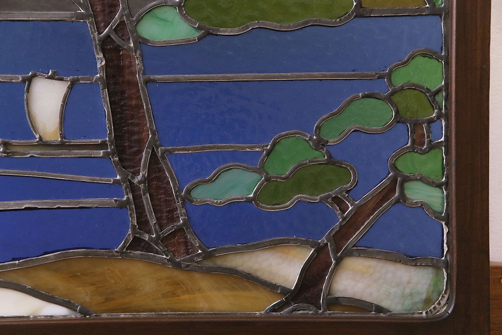 激レア品! 大正昭和初期 当時もの色ガラス 松原を描いたステンドグラス引き戸(ガラス戸、建具)