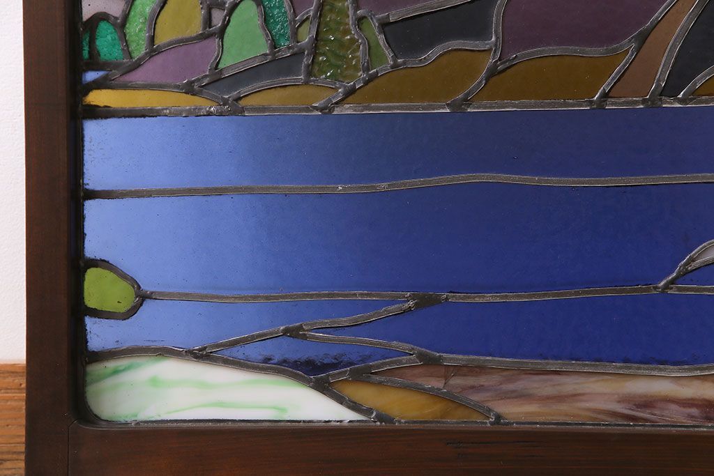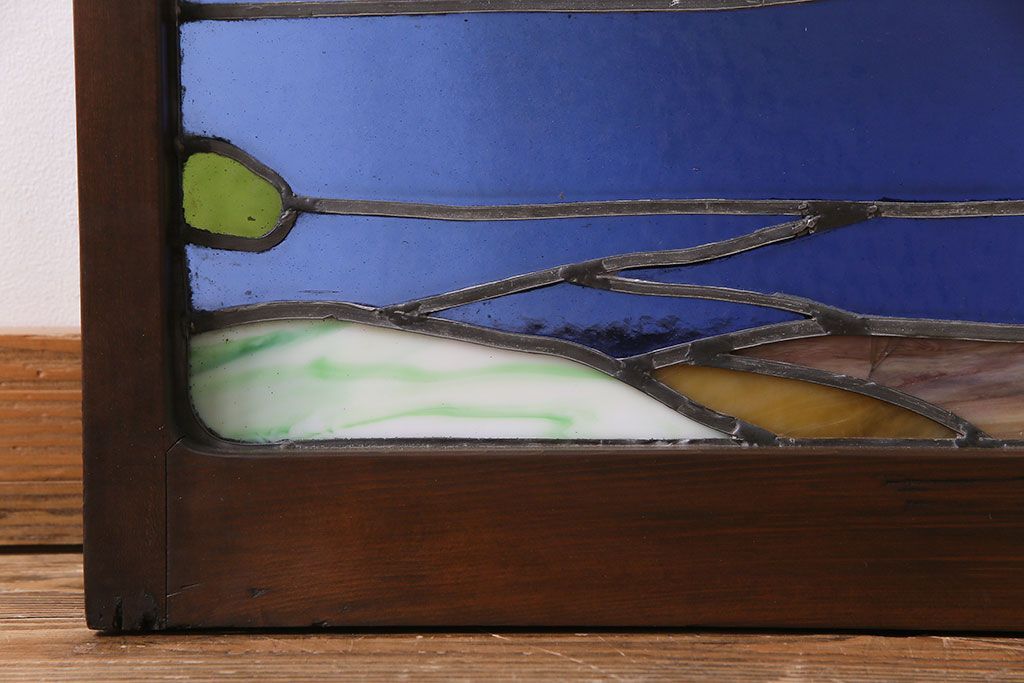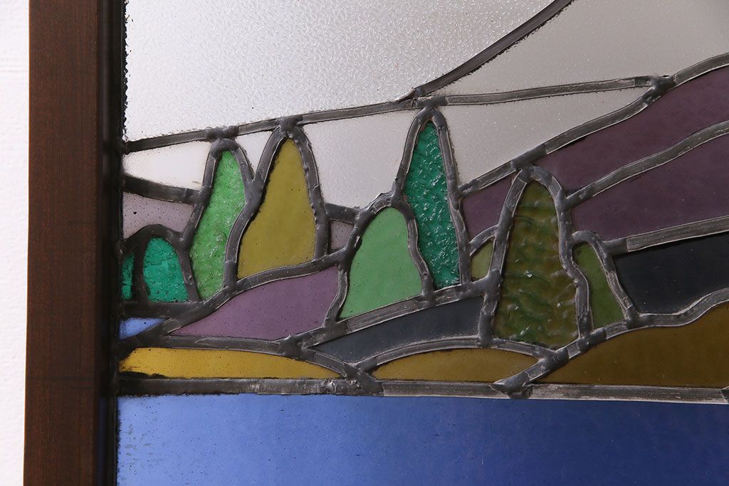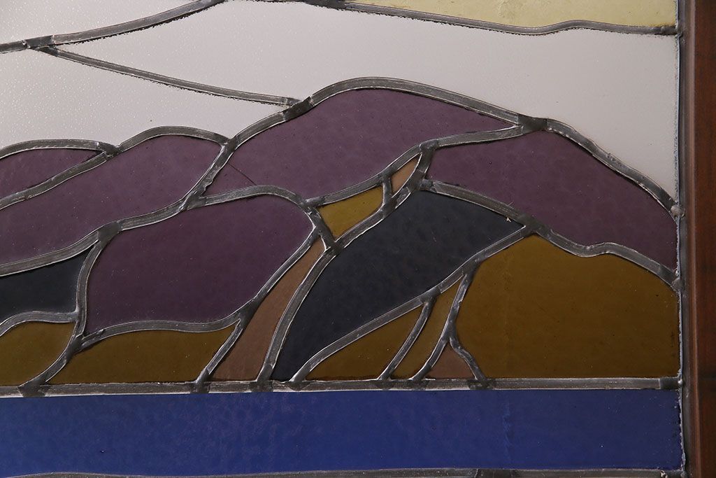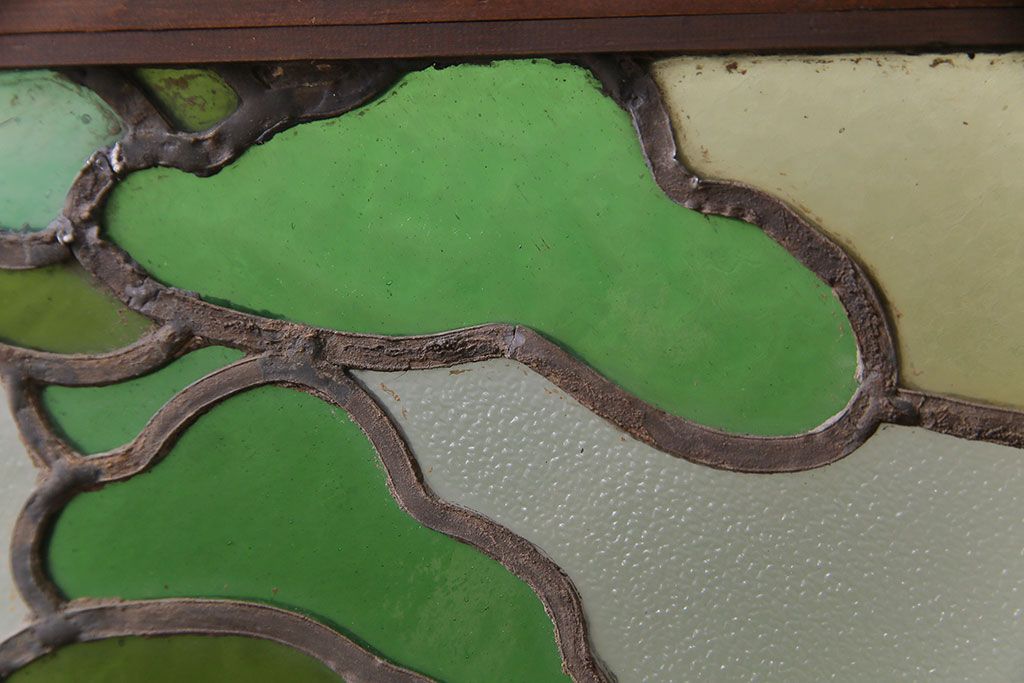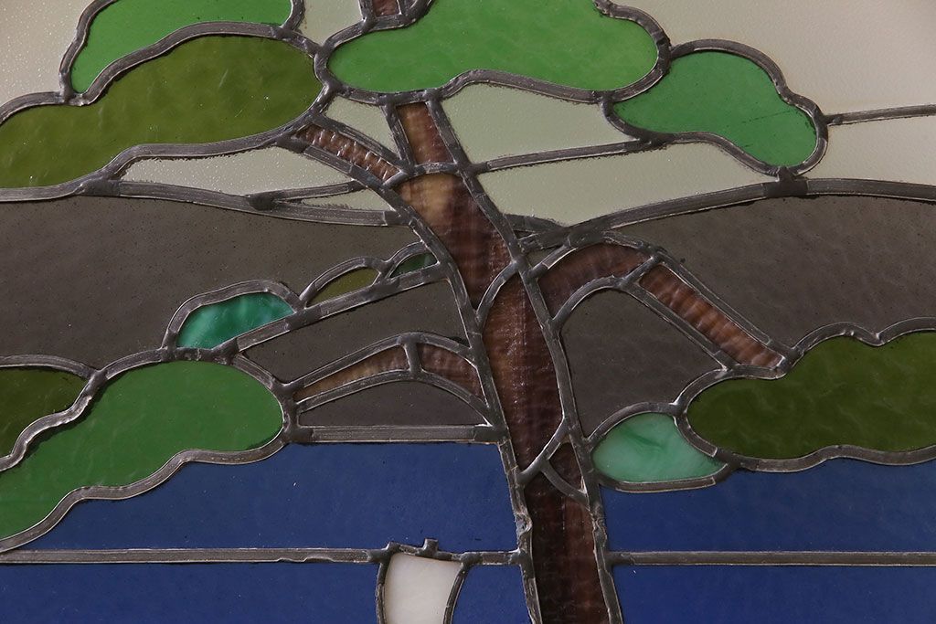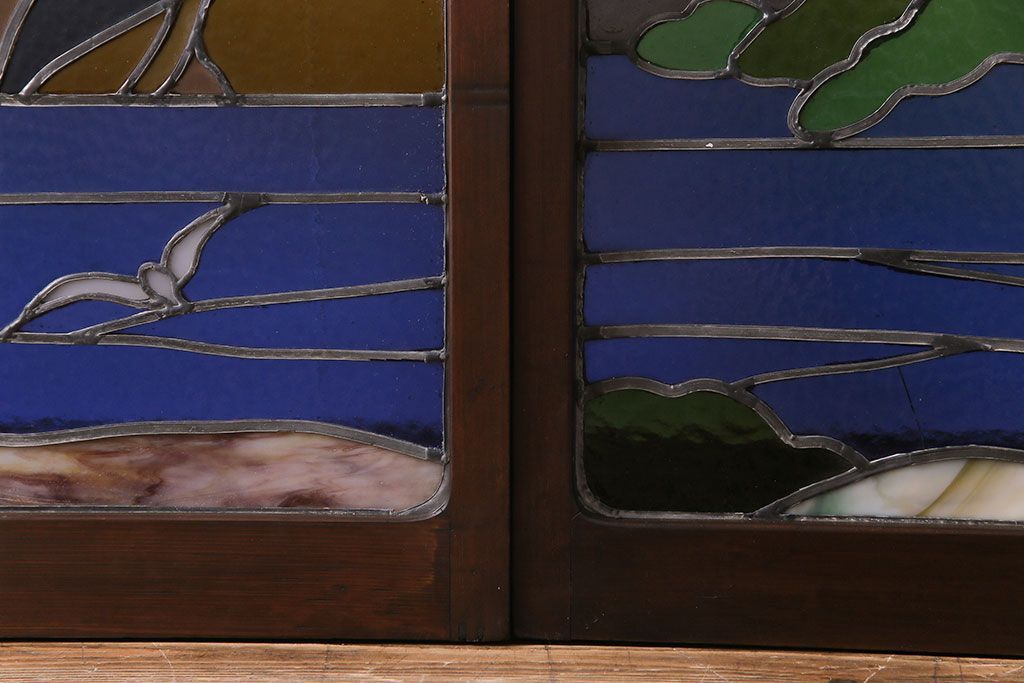 激レア品! 大正昭和初期 当時もの色ガラス 松原を描いたステンドグラス引き戸(ガラス戸、建具)