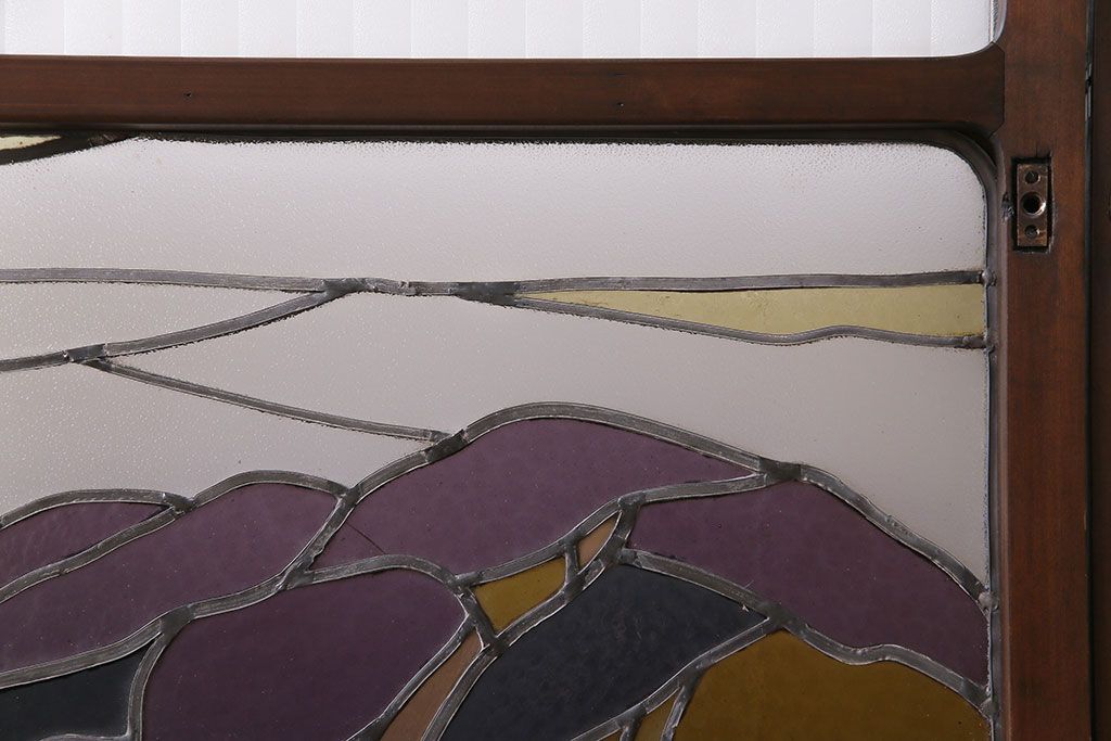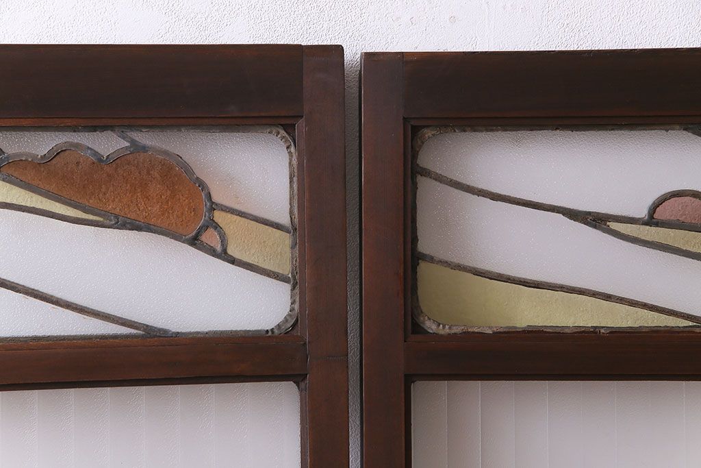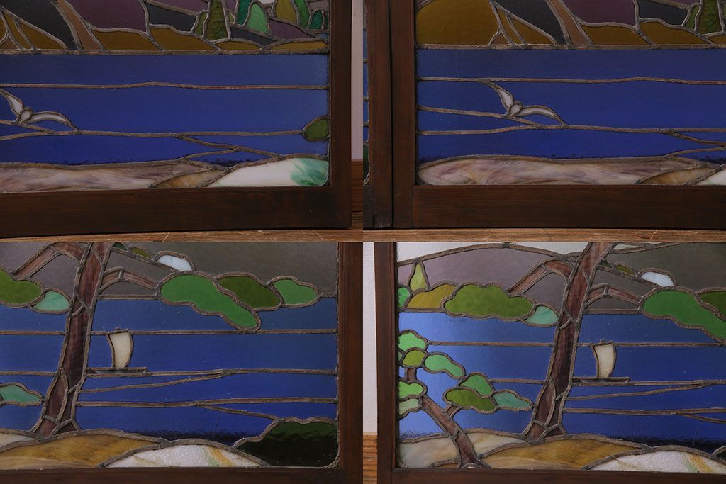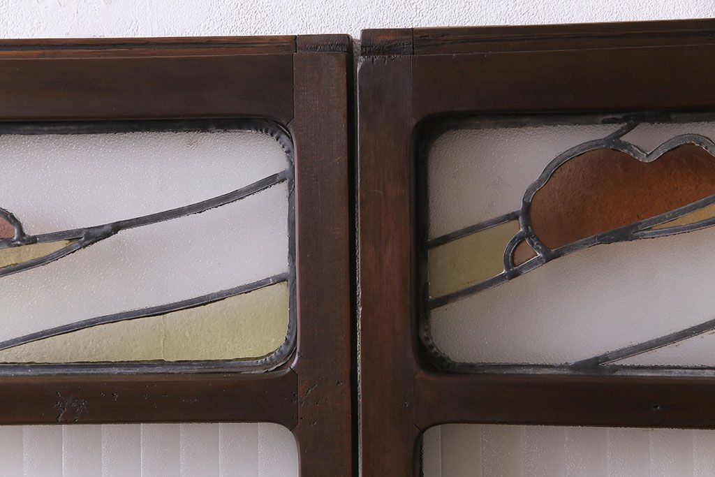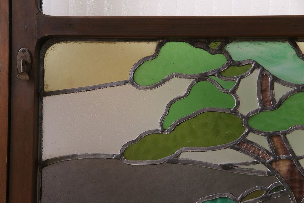 ラフジュ工房> ドア・建具> 窓 > 激レア品! 大正昭和初期 当時もの色ガラス 松原を描いたステンドグラス引き戸(ガラス戸、建具)
