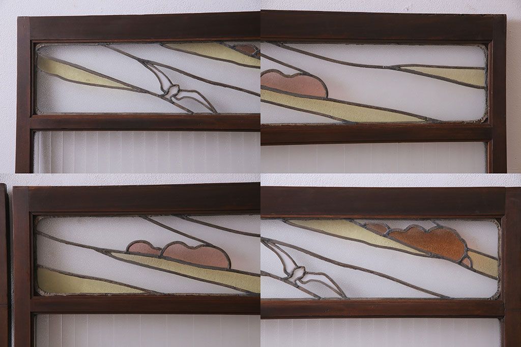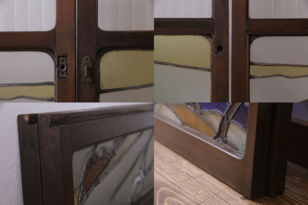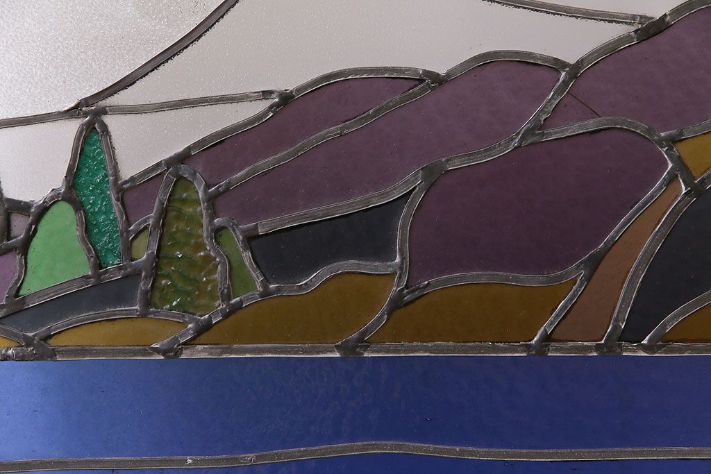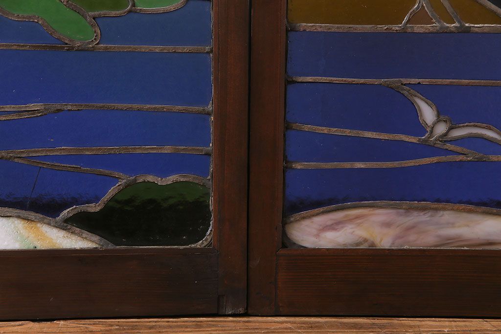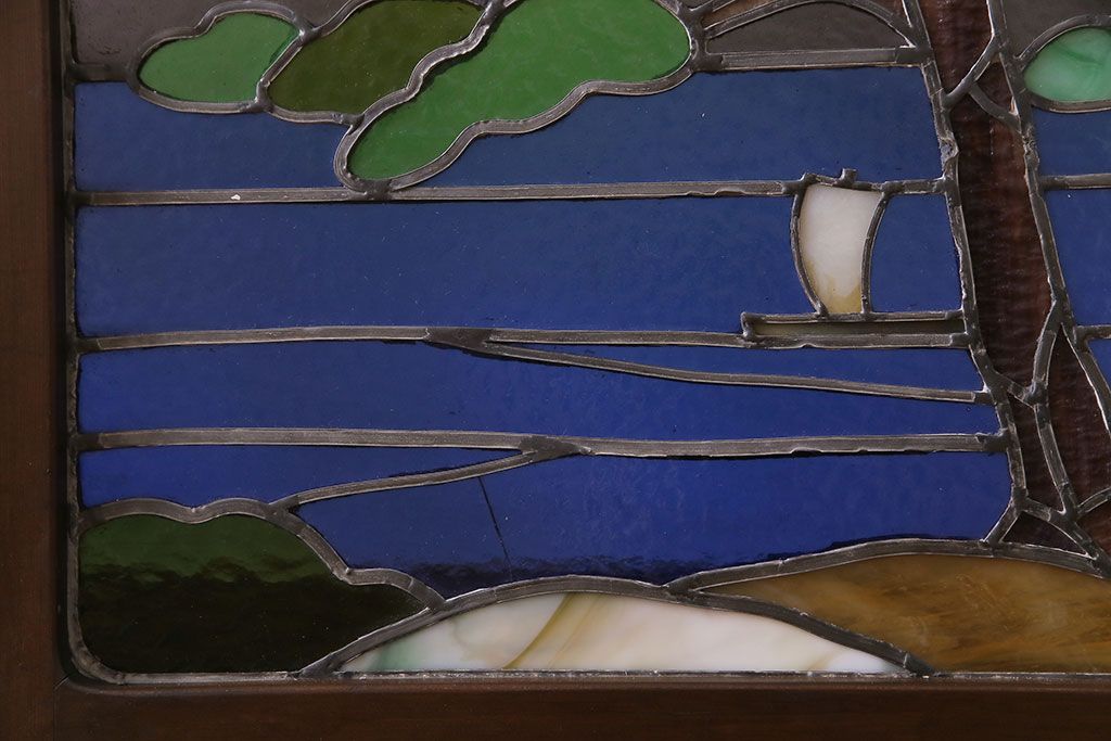 ラフジュ工房> ドア・建具> 窓 > 激レア品! 大正昭和初期 当時もの色ガラス 松原を描いたステンドグラス引き戸(ガラス戸、建具)