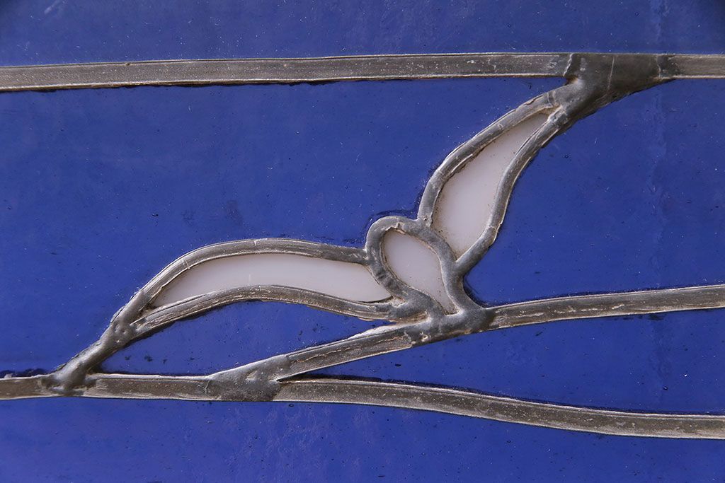 ラフジュ工房> ドア・建具> 色ガラス・ステンド入り建具 > 激レア品! 大正昭和初期 当時もの色ガラス 松原を描いたステンドグラス引き戸(ガラス戸、建具)
