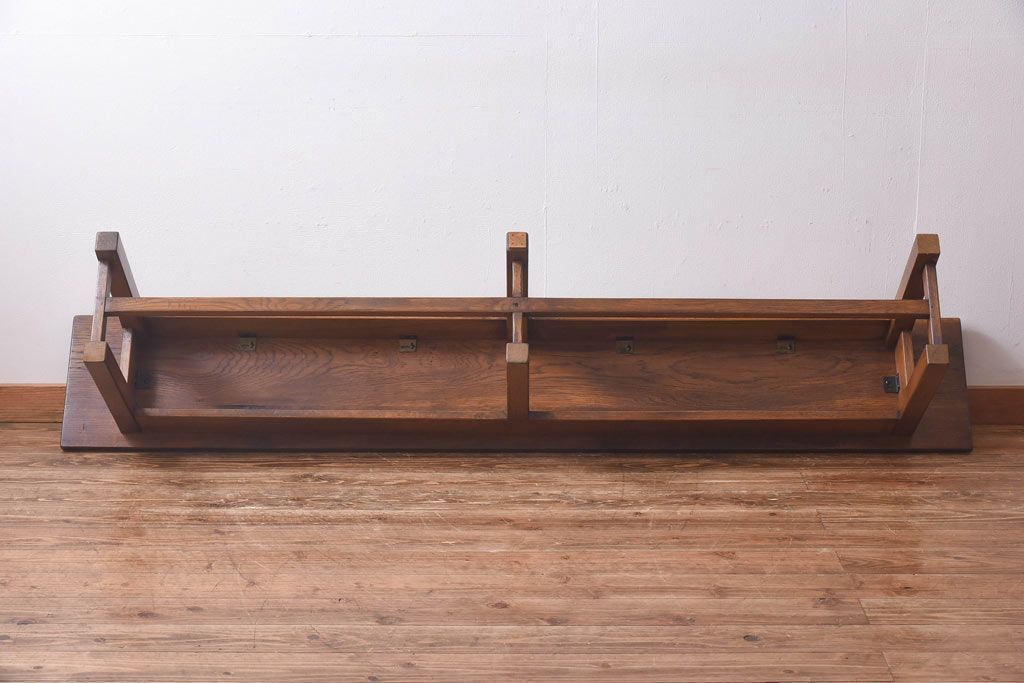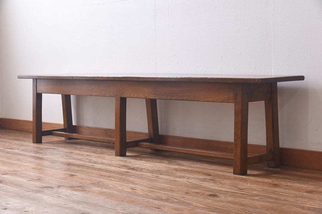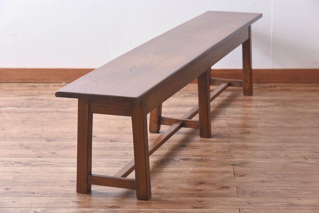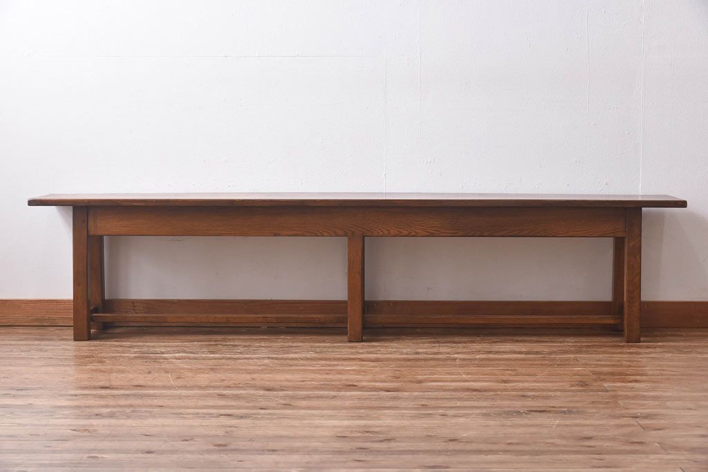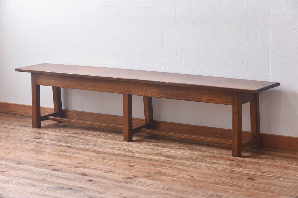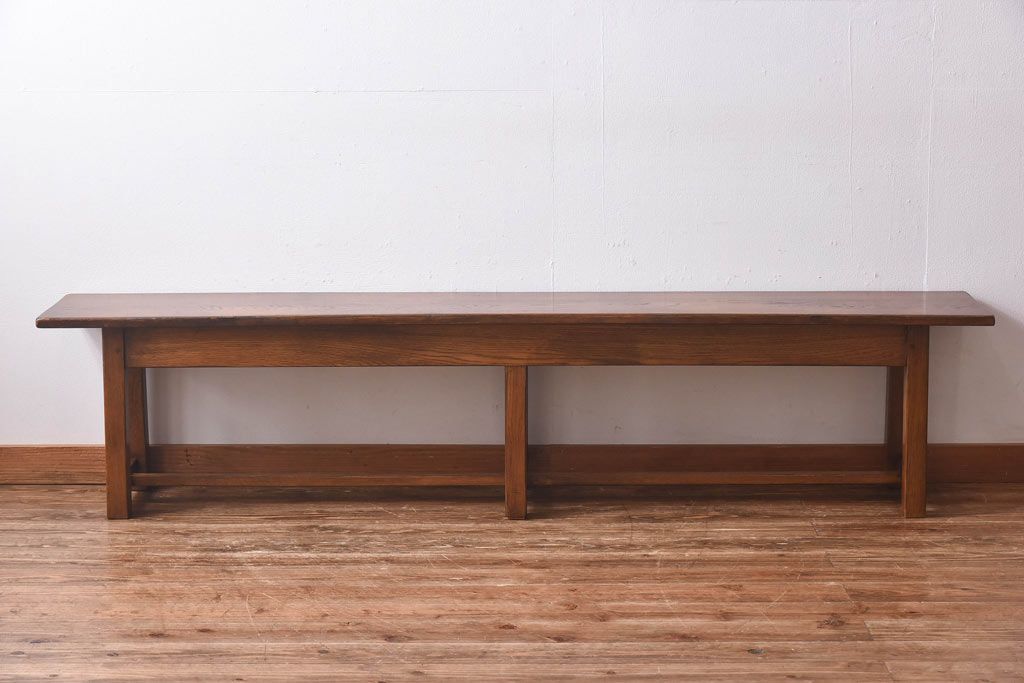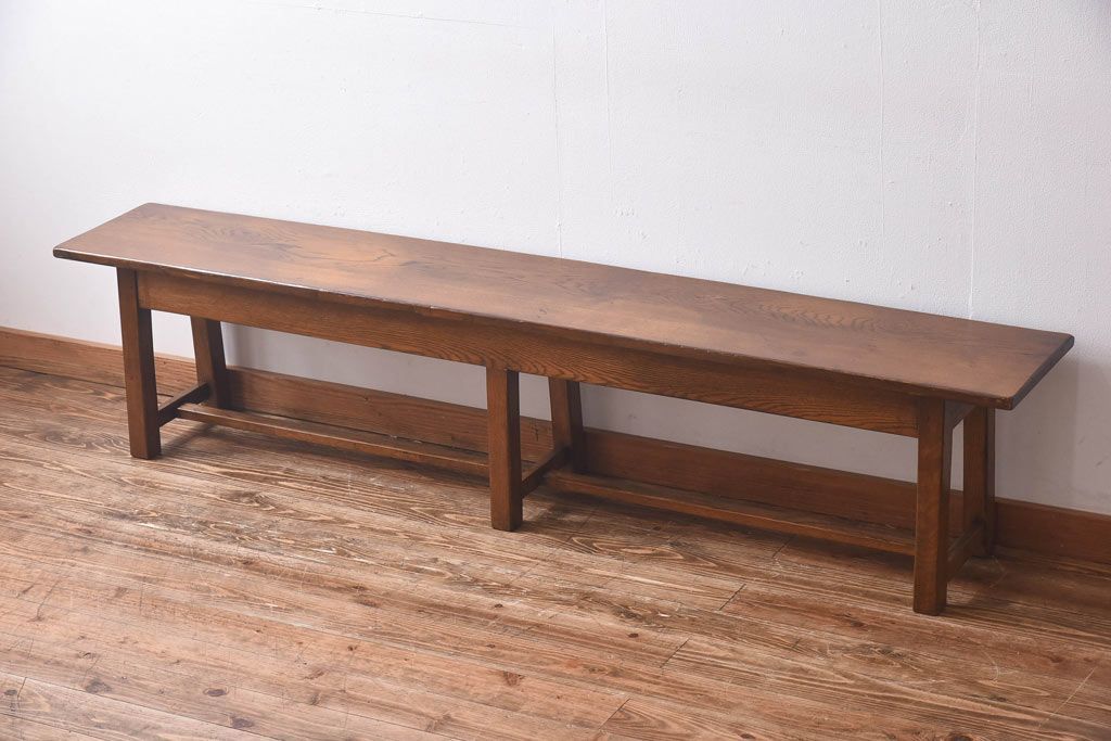 ヴィンテージ家具 イギリスビンテージ オーク材 シンプルなデザインが格好いい大型ベンチ(長椅子、飾り台)(2)