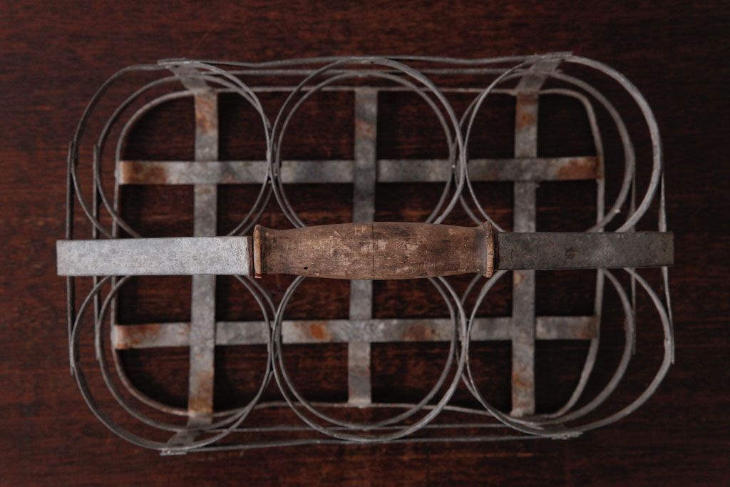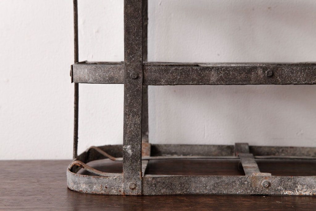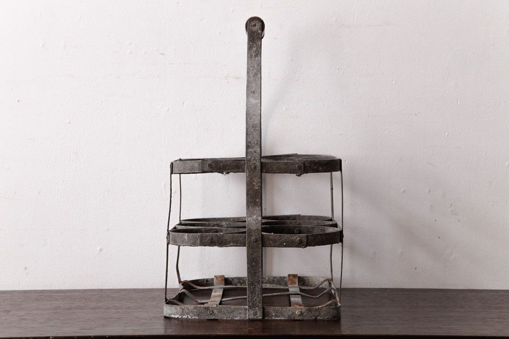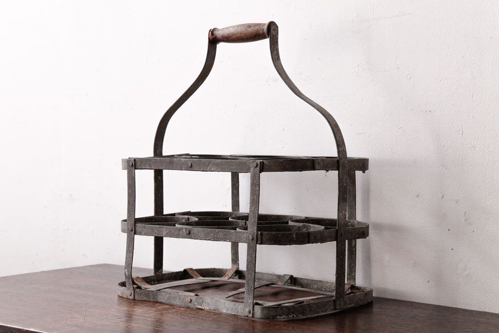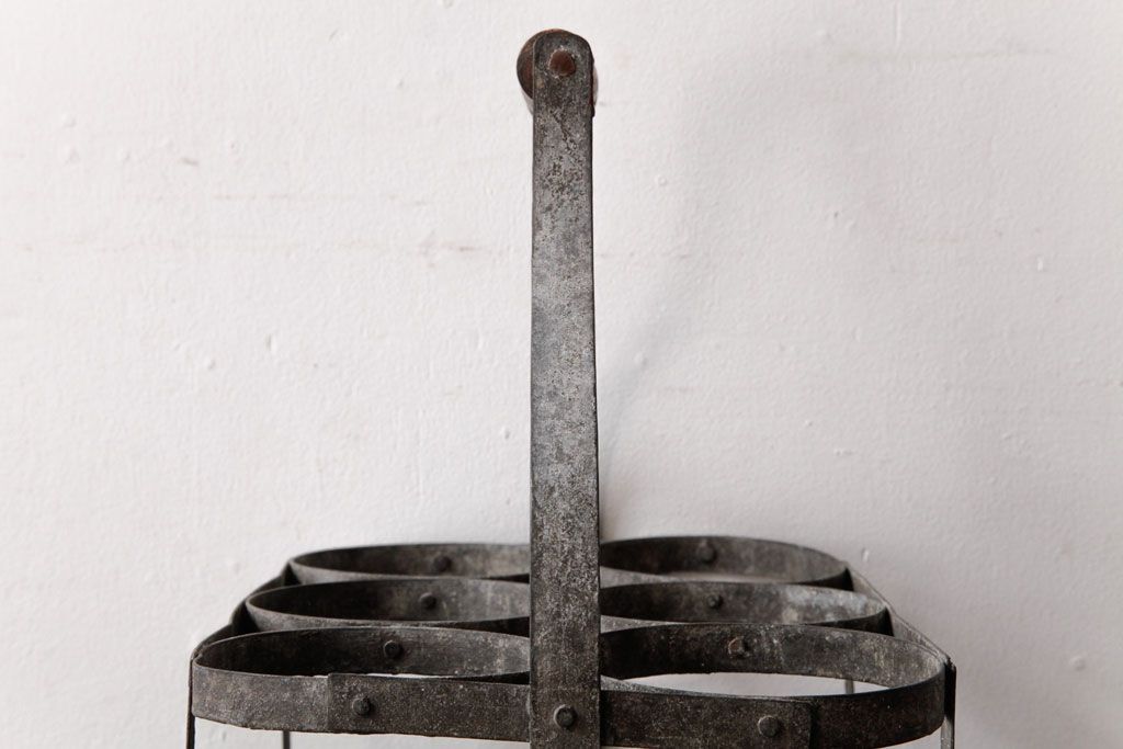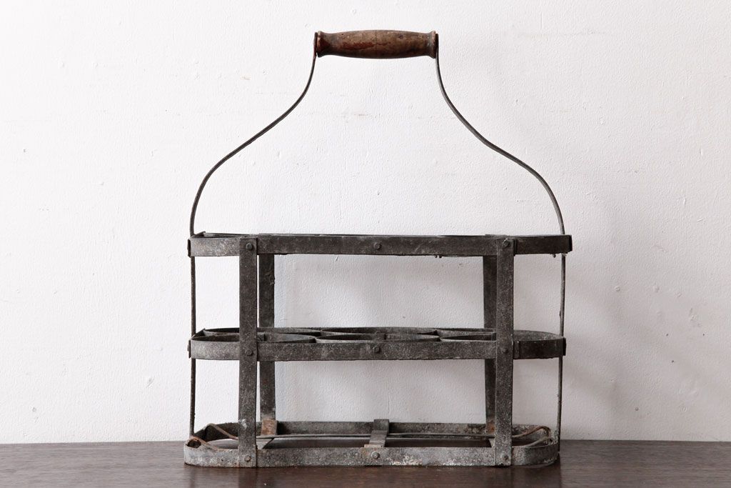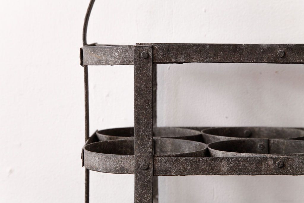 ラフジュ工房> 小物収納・トランク> バスケット > アンティーク雑貨 ビンテージ アイアン製 6連 シャビーでおしゃれなボトルケース(ボトルラック)(1)