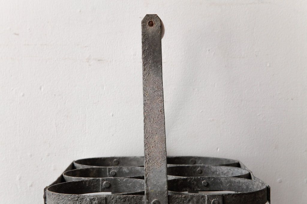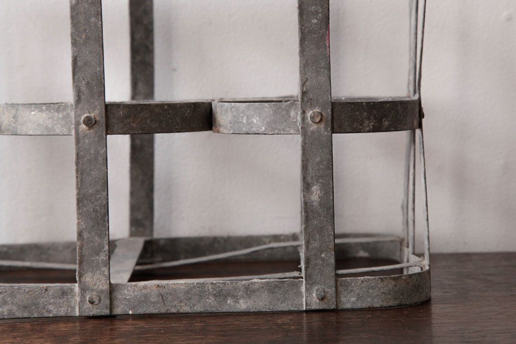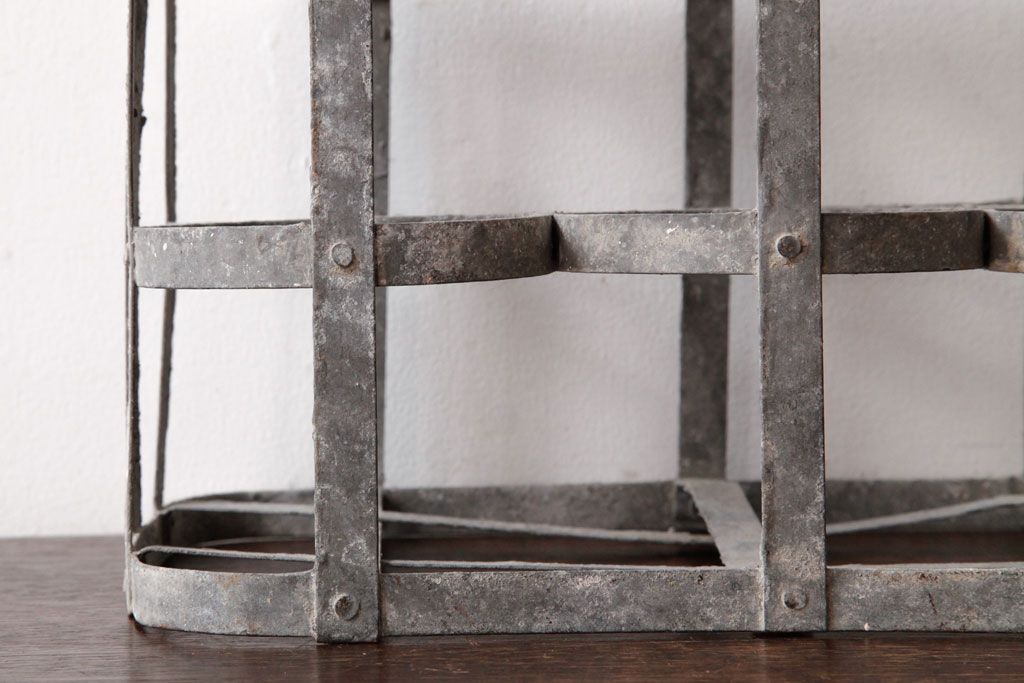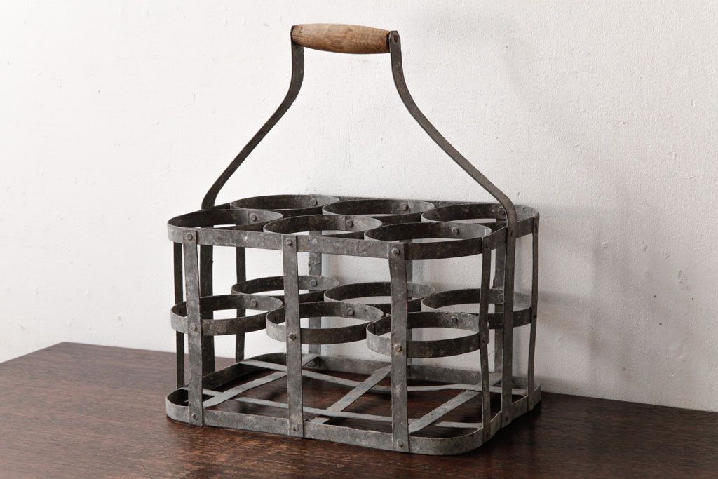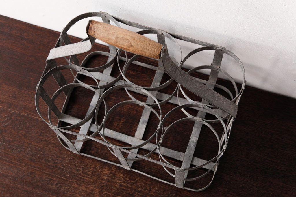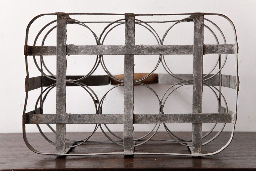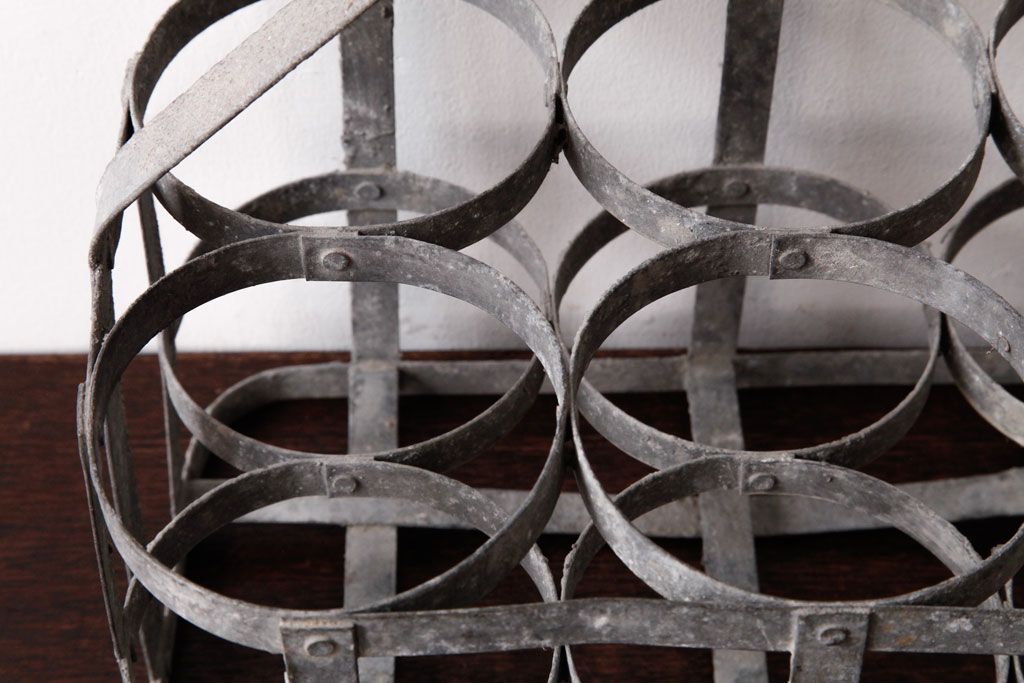ラフジュ工房> 小物収納・トランク> バスケット > アンティーク雑貨 ビンテージ アイアン製 6連 シャビーでおしゃれなボトルケース(ボトルラック)(2)