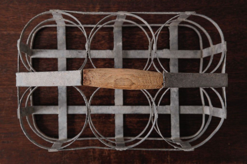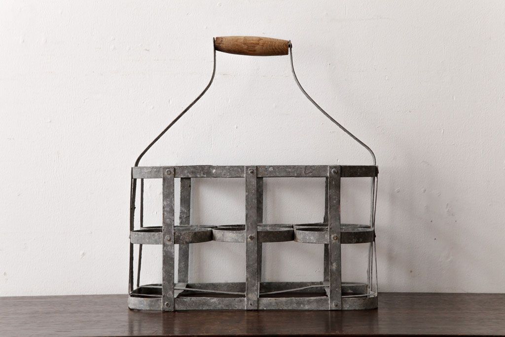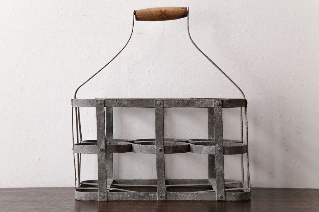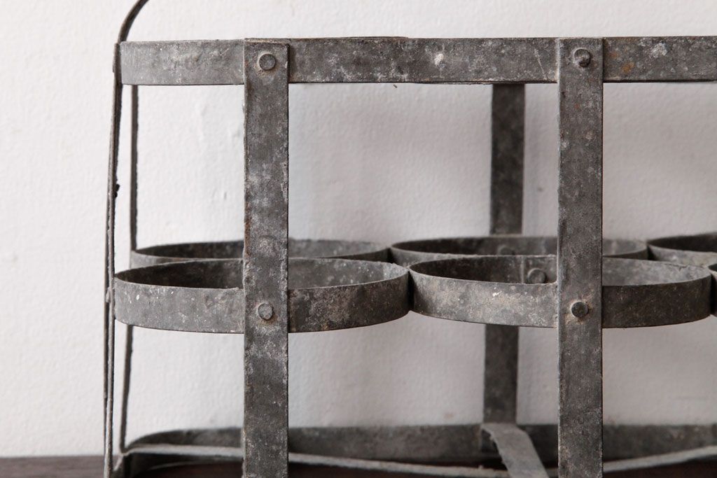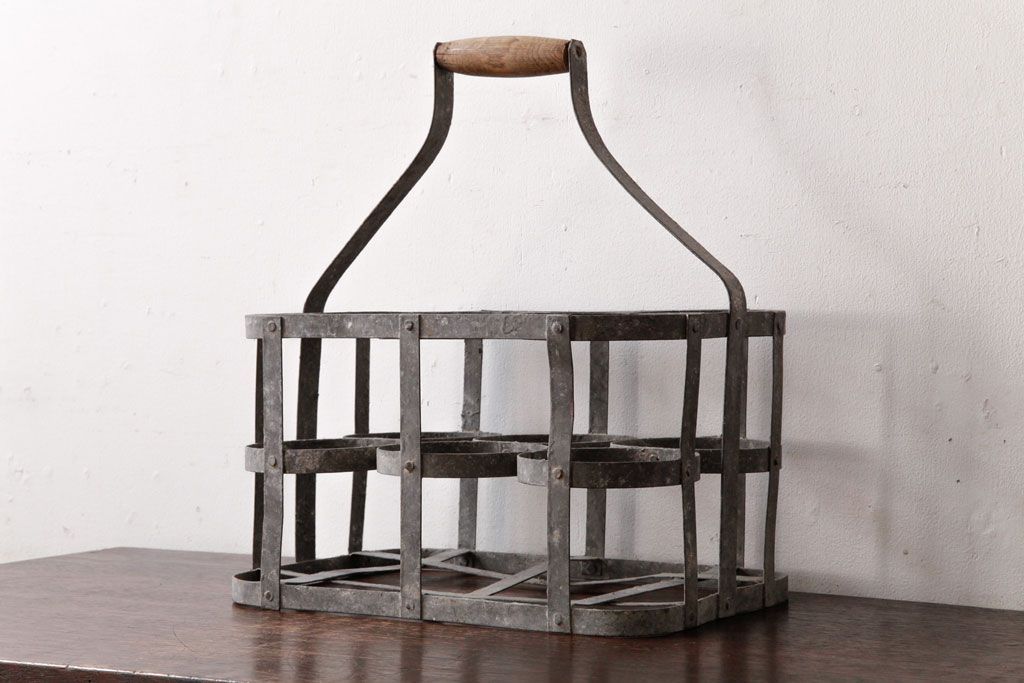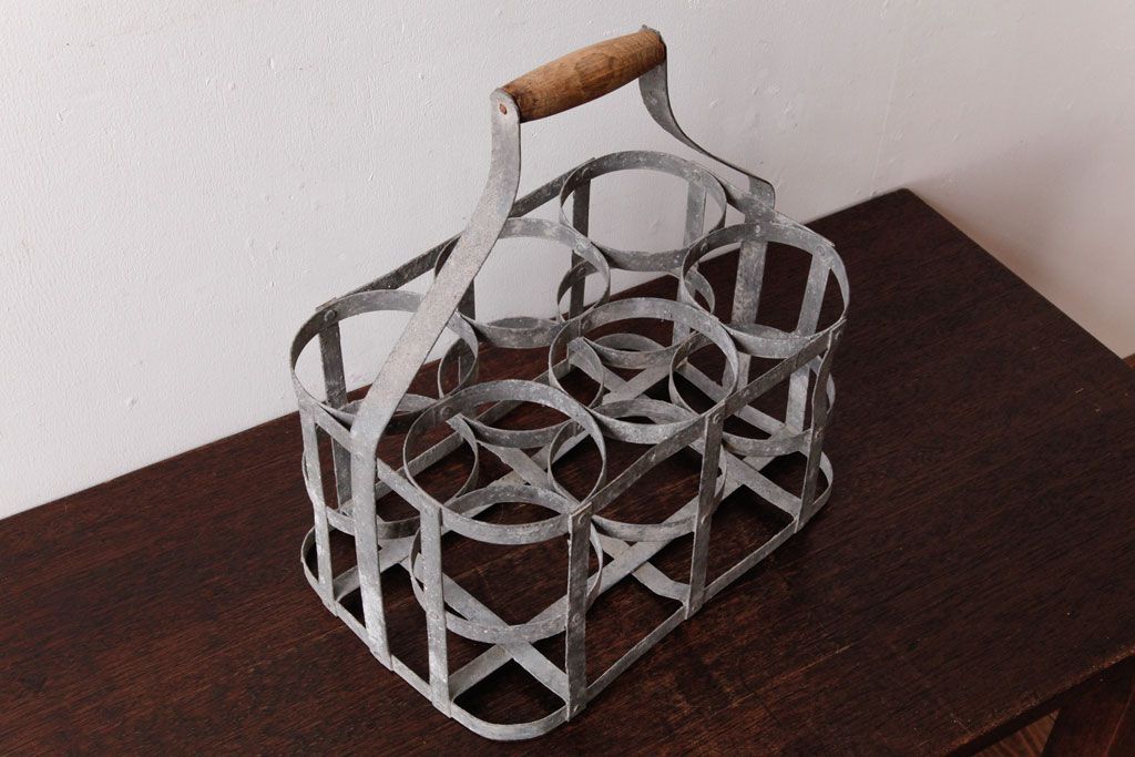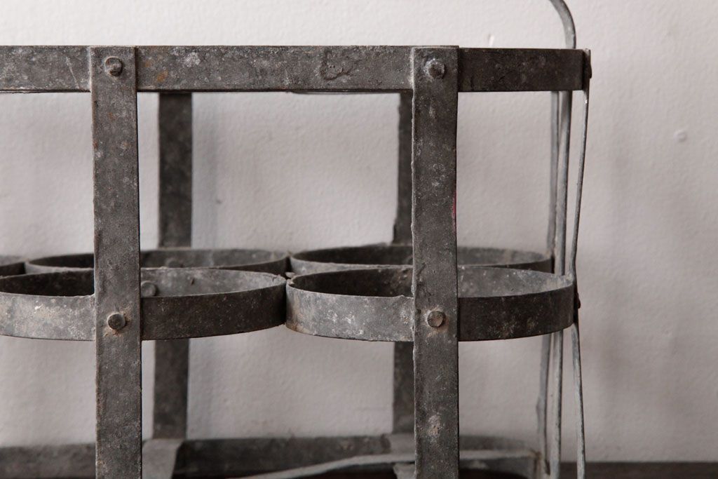 ラフジュ工房> 小物収納・トランク> バスケット > アンティーク雑貨 ビンテージ アイアン製 6連 シャビーでおしゃれなボトルケース(ボトルラック)(2)
