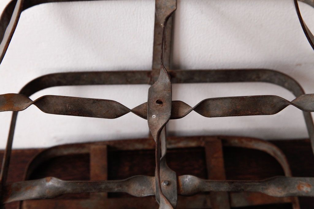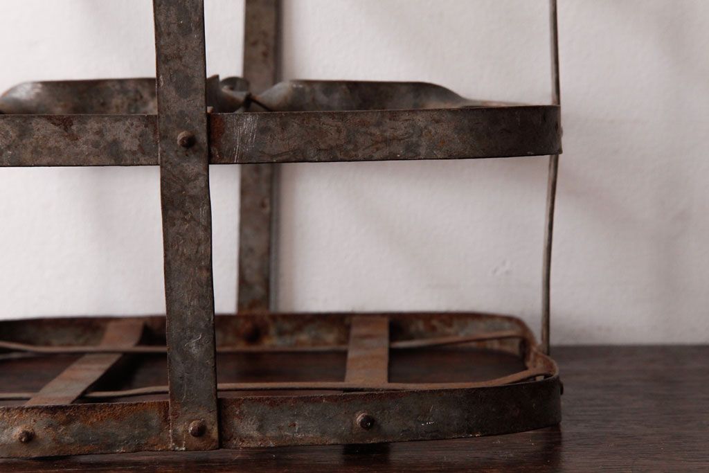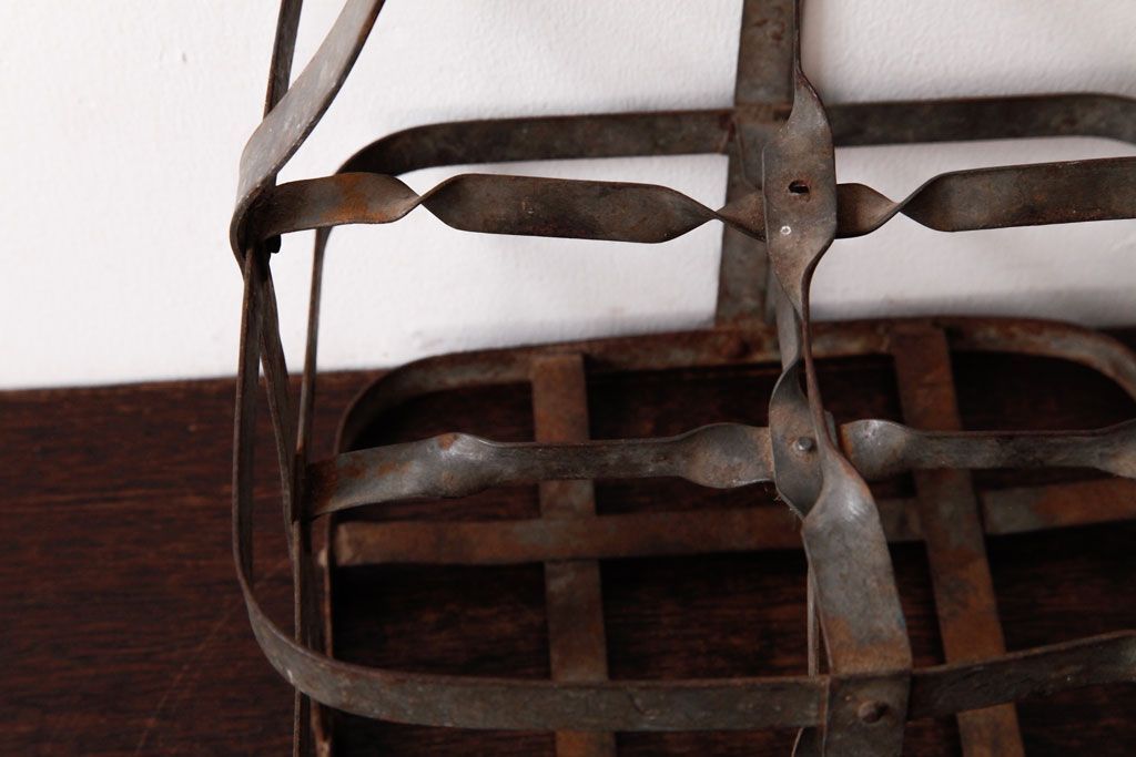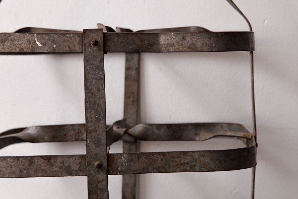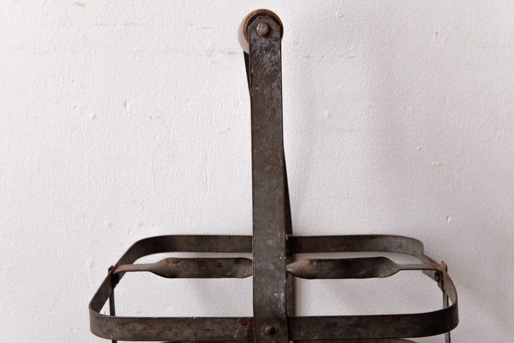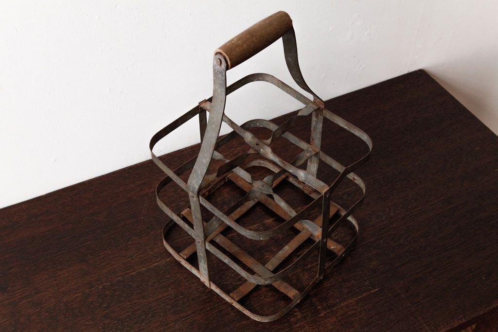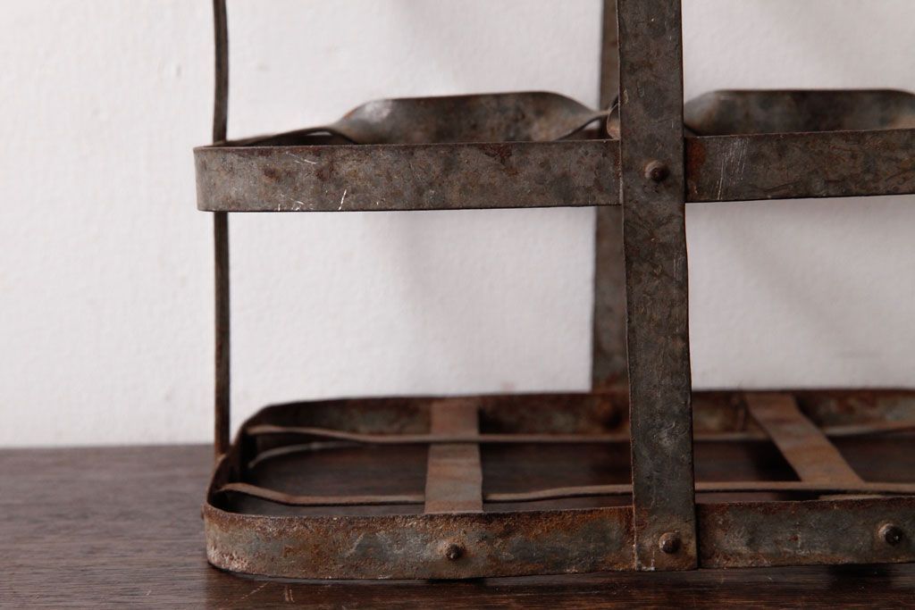 ラフジュ工房> 小物収納・トランク> バスケット > アンティーク雑貨 イギリスビンテージ 4連 ブロカントスタイルにぴったりなアイアン製ボトルラック(ボトルケース)