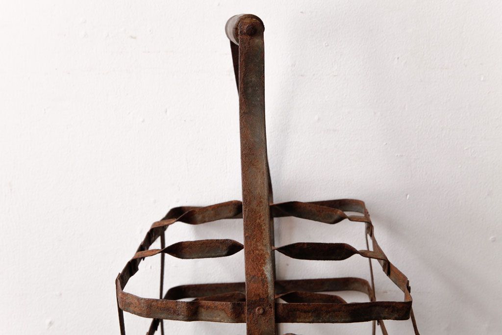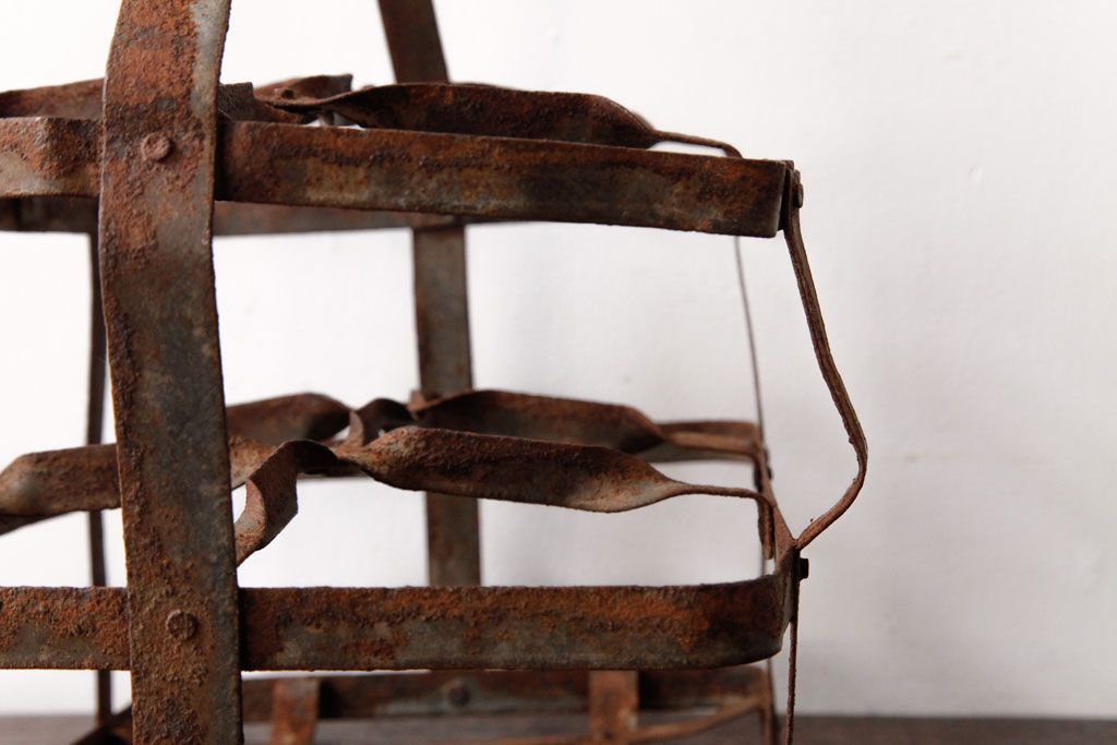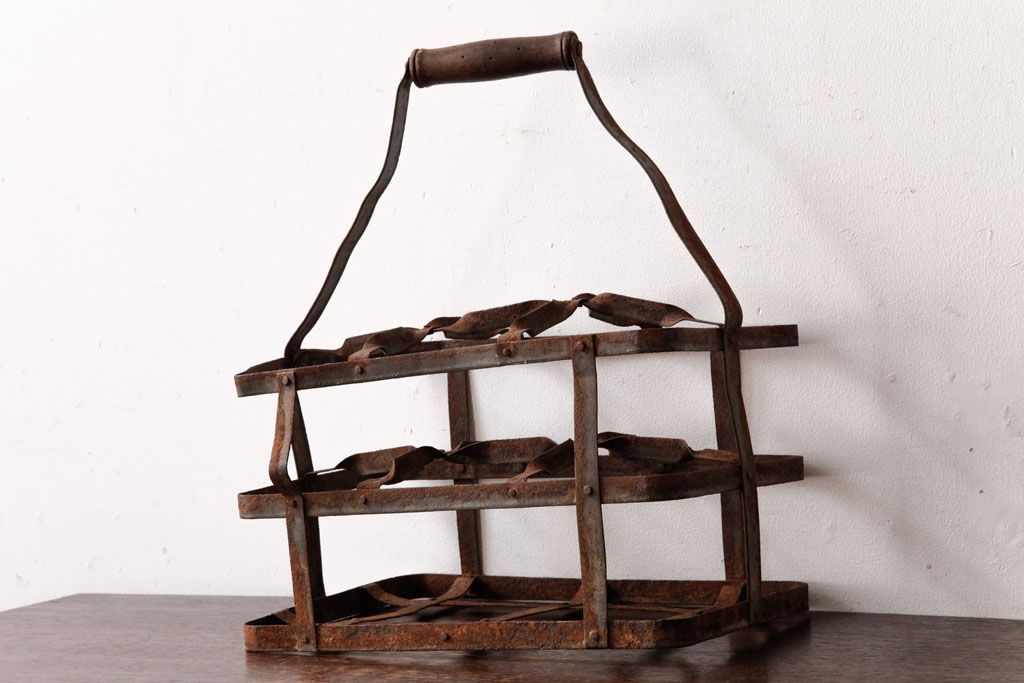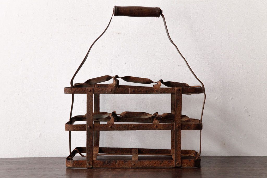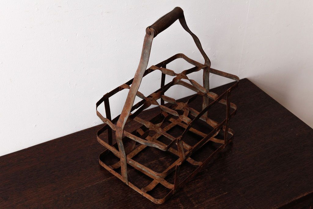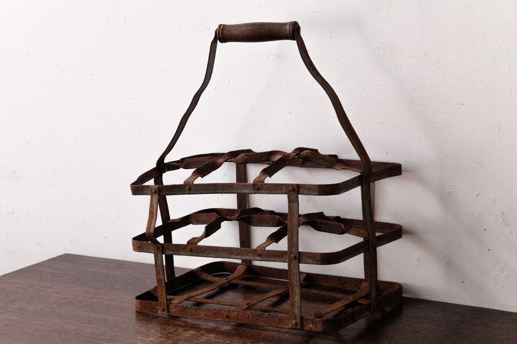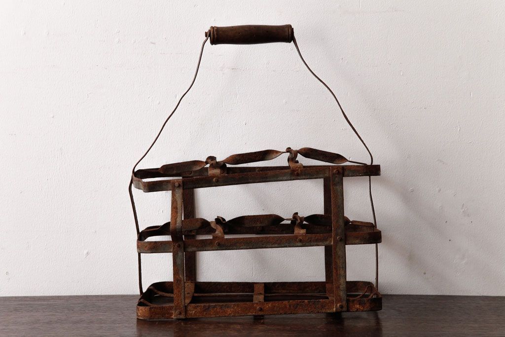 ラフジュ工房> 小物収納・トランク> バスケット > アンティーク雑貨 イギリスビンテージ 6連 ブロカントスタイルにぴったりなアイアン製ボトルラック(ボトルケース)(2)