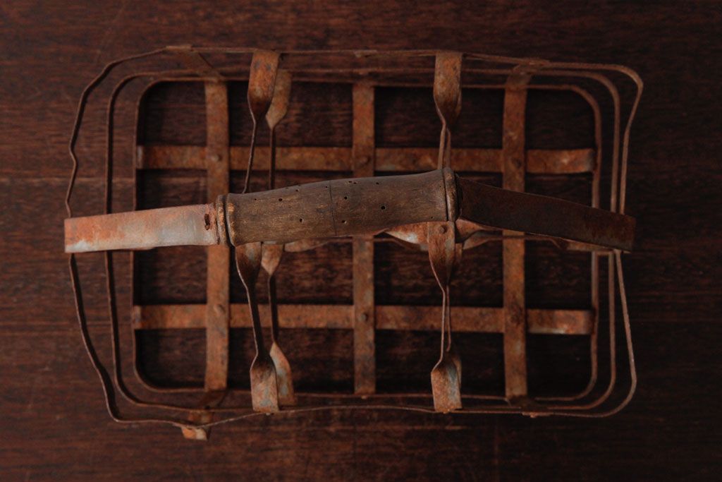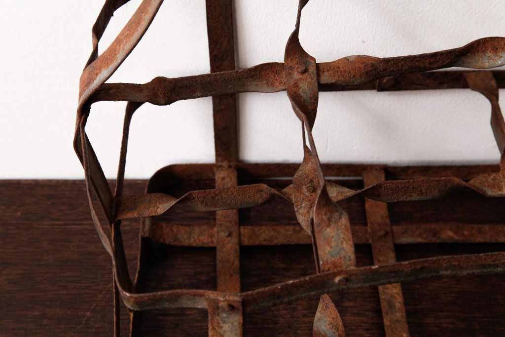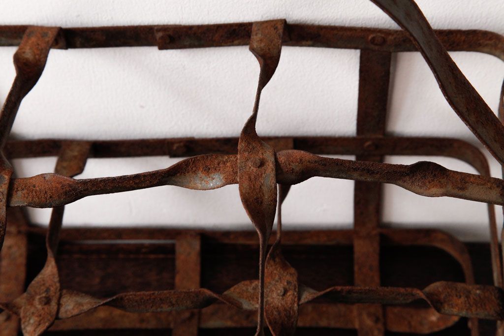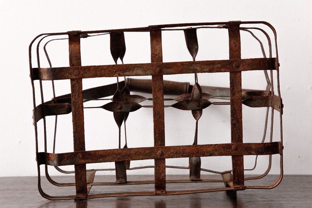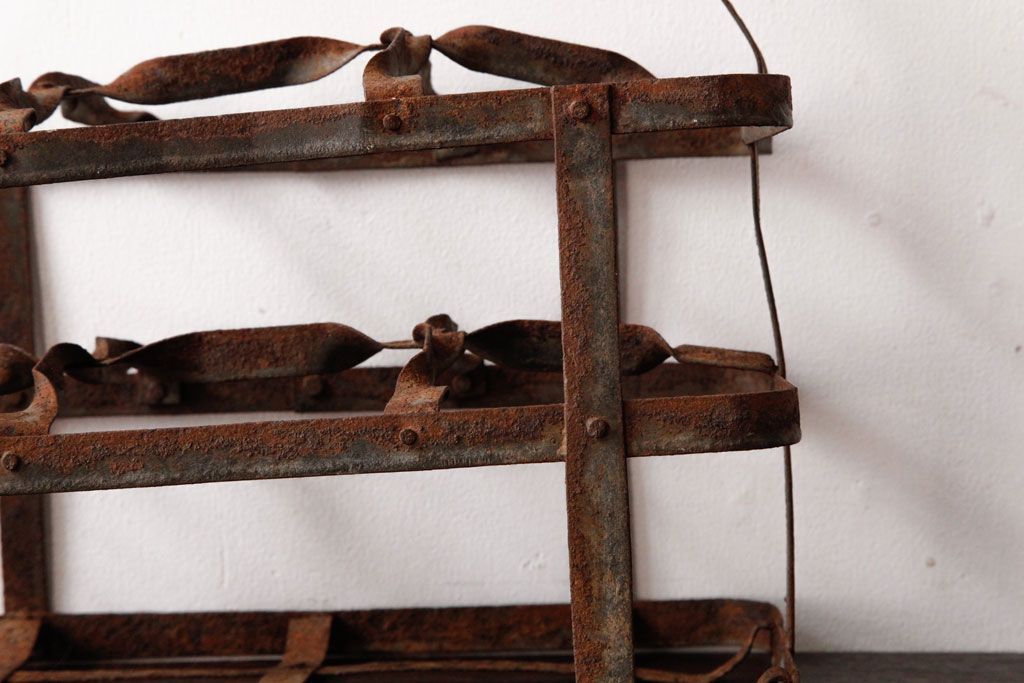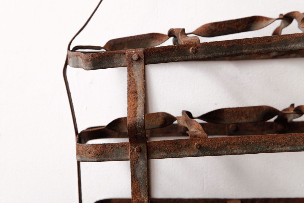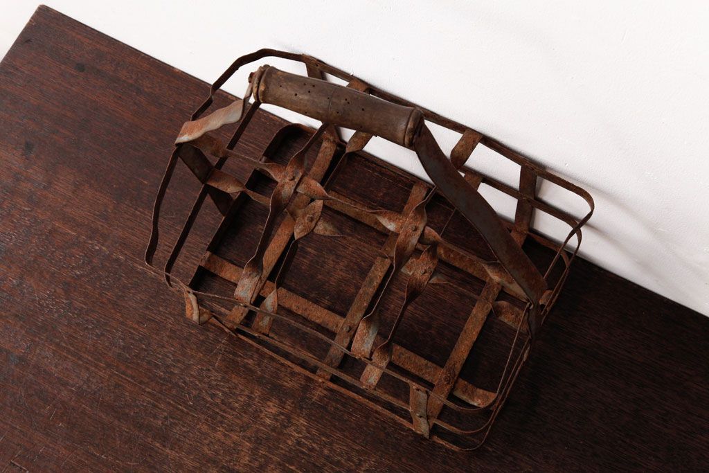 ラフジュ工房> 小物収納・トランク> バスケット > アンティーク雑貨 イギリスビンテージ 6連 ブロカントスタイルにぴったりなアイアン製ボトルラック(ボトルケース)(2)