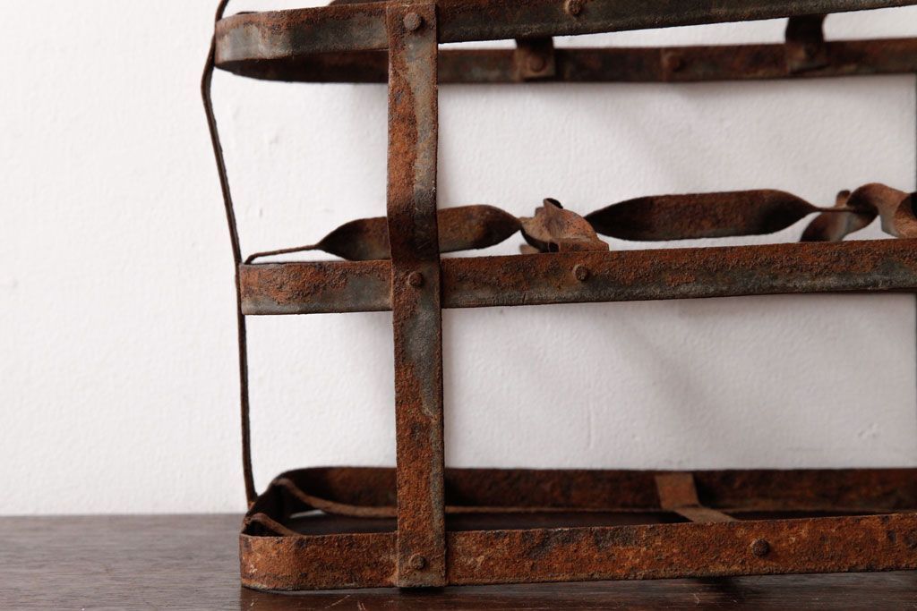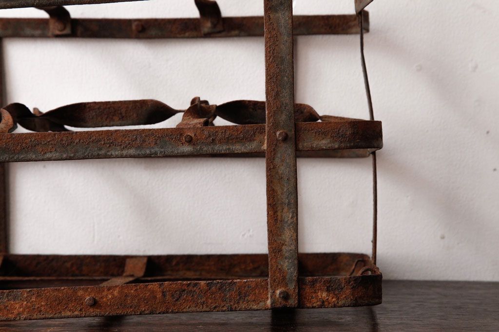 ラフジュ工房> 小物収納・トランク > アンティーク雑貨 イギリスビンテージ 6連 ブロカントスタイルにぴったりなアイアン製ボトルラック(ボトルケース)(2)