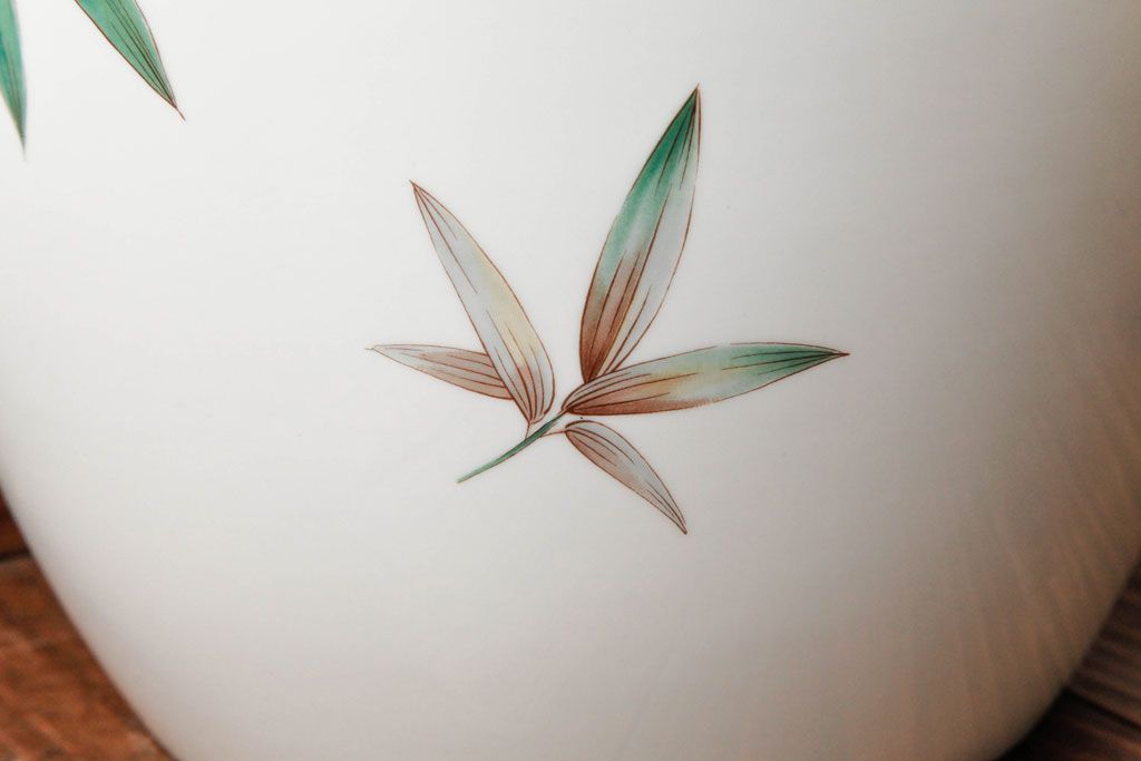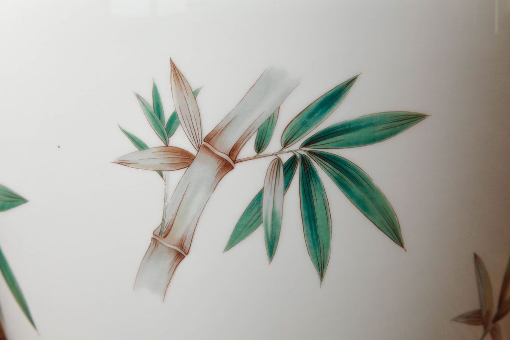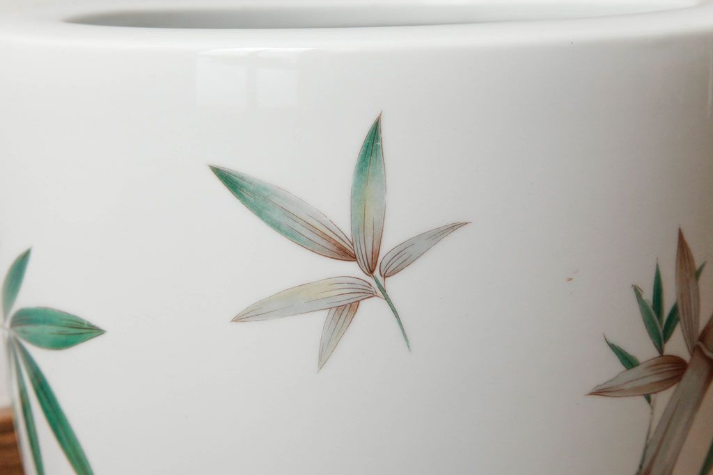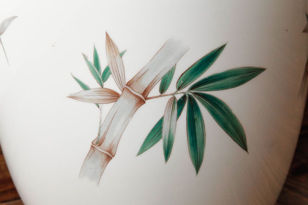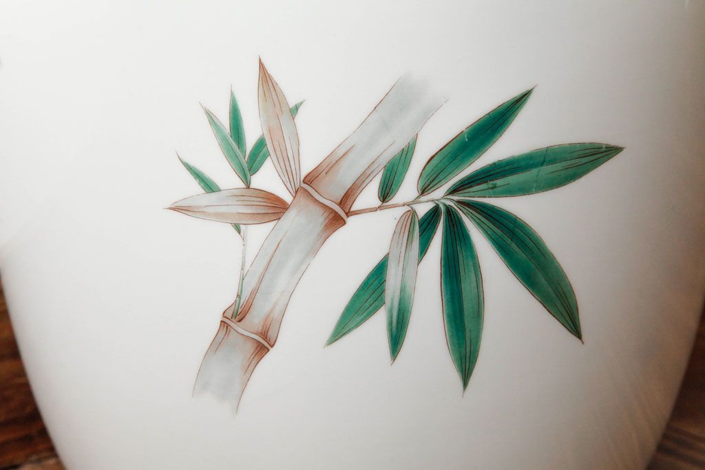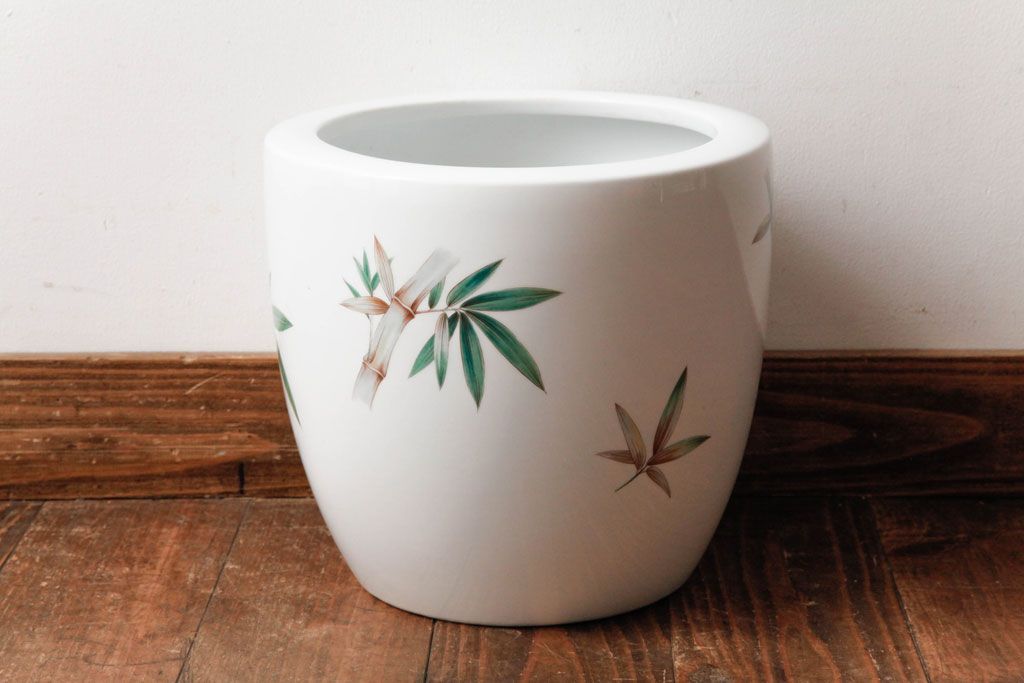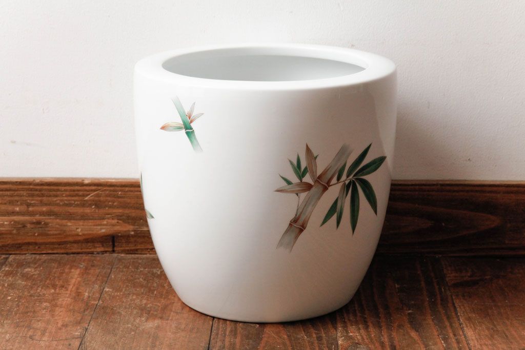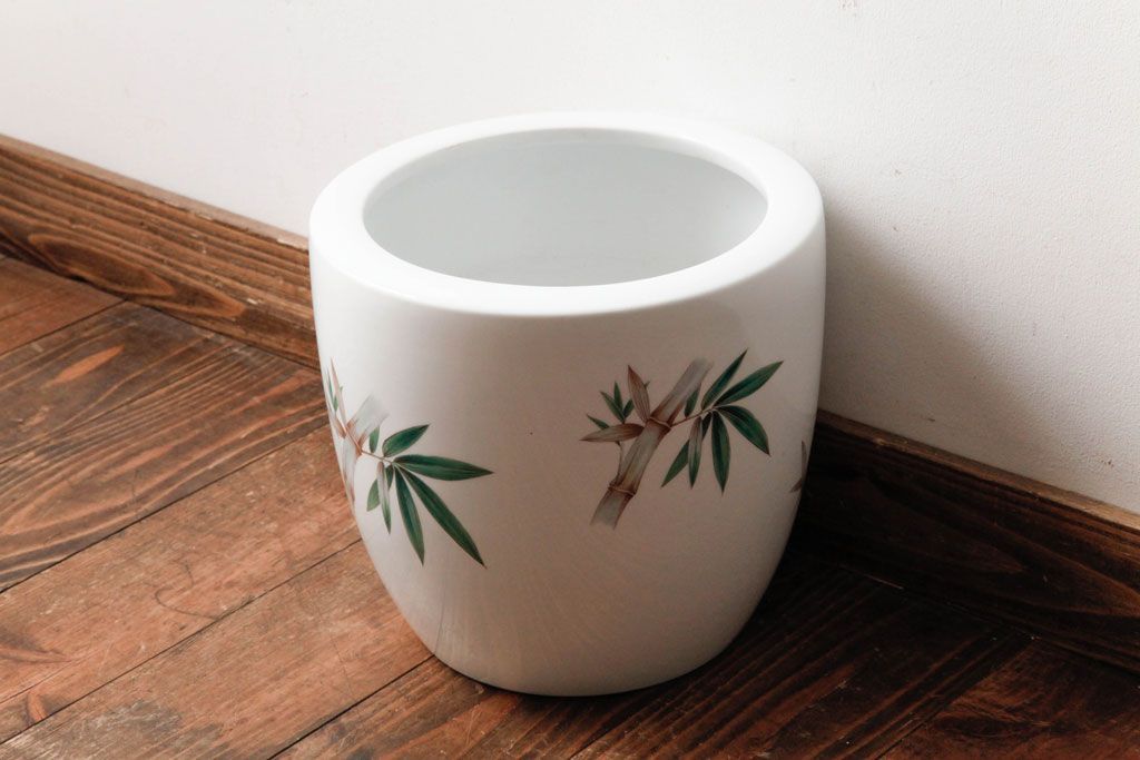 火鉢> 瀬戸火鉢 > アンティーク雑貨 ノリタケ・則武(日陶) 竹モチーフが和の風情を感じる火鉢(手あぶり、鉢カバー)