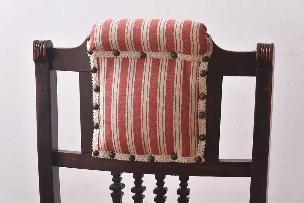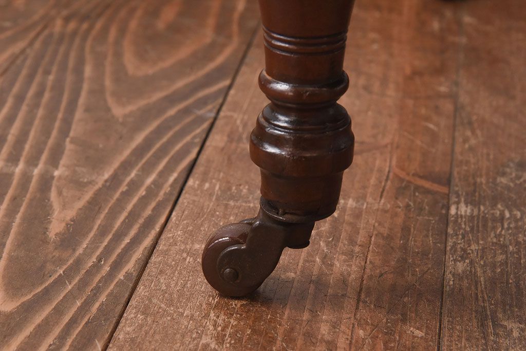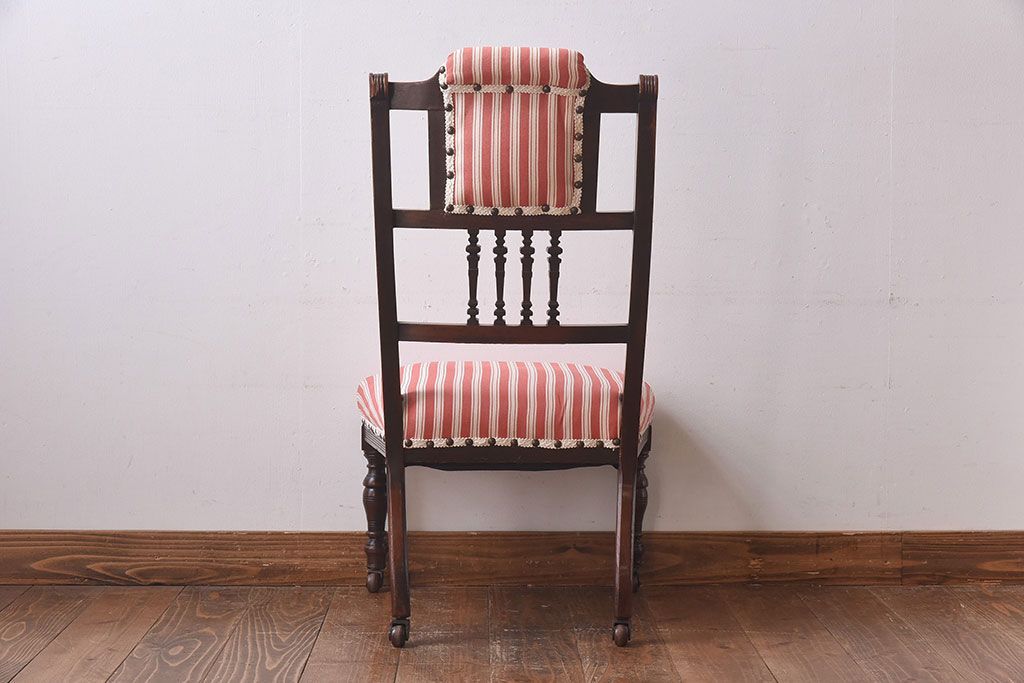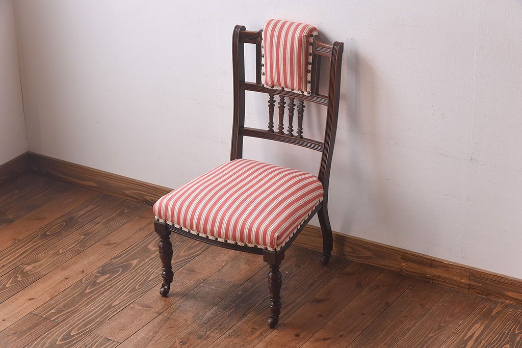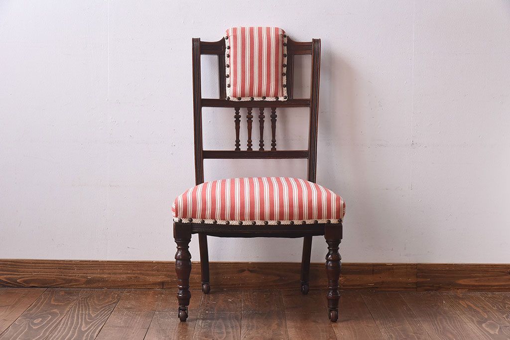ラフジュ工房> 椅子・ベンチ> ダイニングチェア > アンティーク家具 イギリスアンティーク ウォールナット材 上品な佇まいのキャスター付きナーシングチェア(椅子)