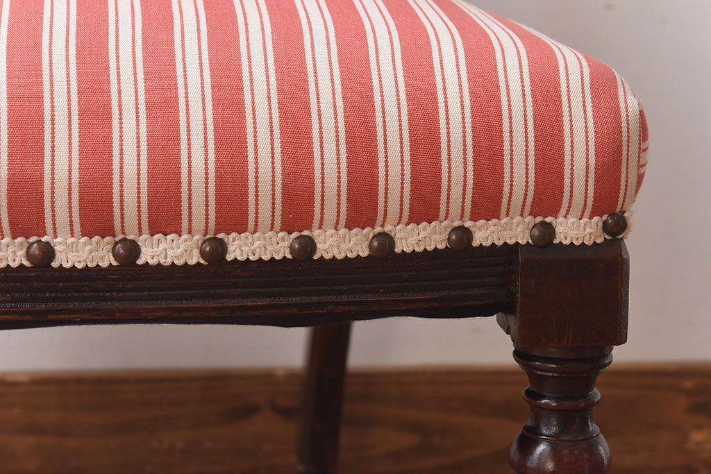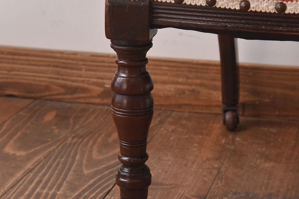 ラフジュ工房> 椅子・ベンチ> サロンチェア > アンティーク家具 イギリスアンティーク ウォールナット材 上品な佇まいのキャスター付きナーシングチェア(椅子)