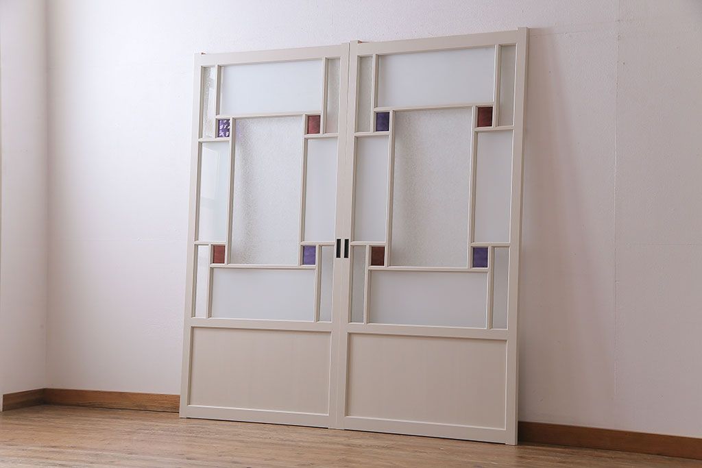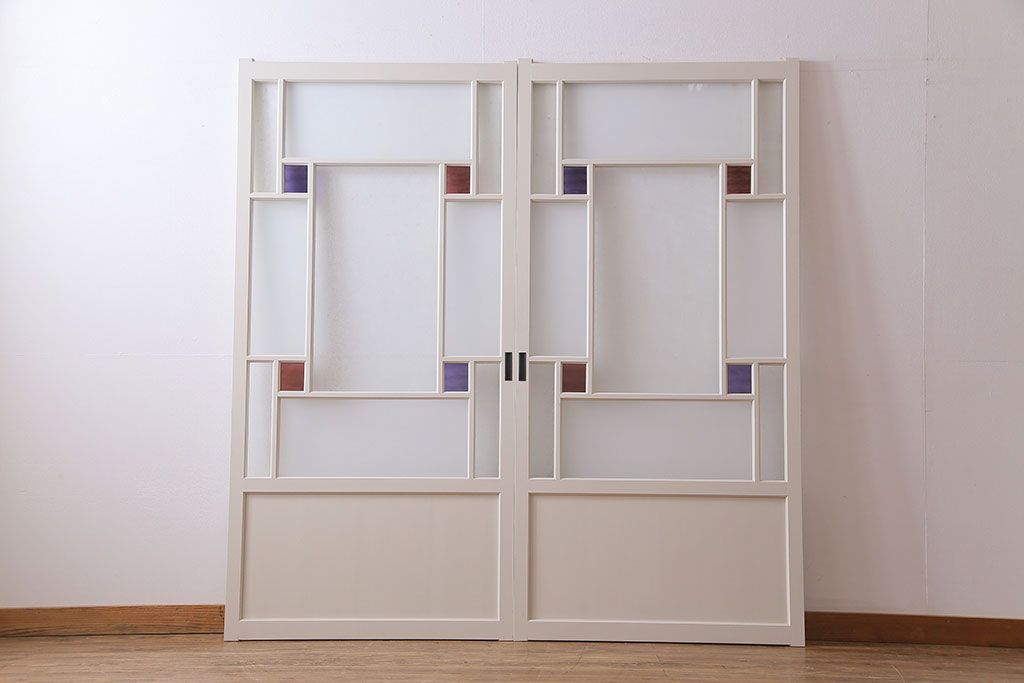 ラフジュ工房オリジナル 優しげで愛らしいカラーの引き戸(建具、ガラス戸)2枚セットです。