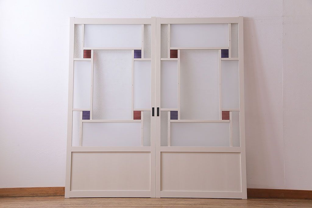 ラフジュ工房オリジナル 優しげで愛らしいカラーの引き戸(建具、ガラス戸)2枚セット