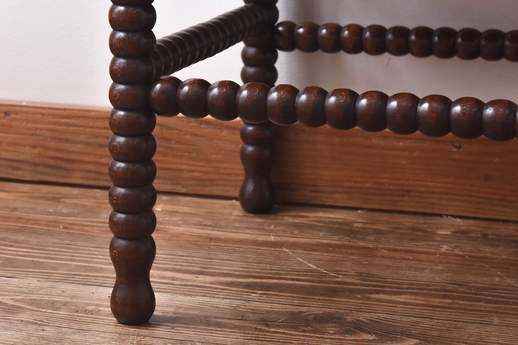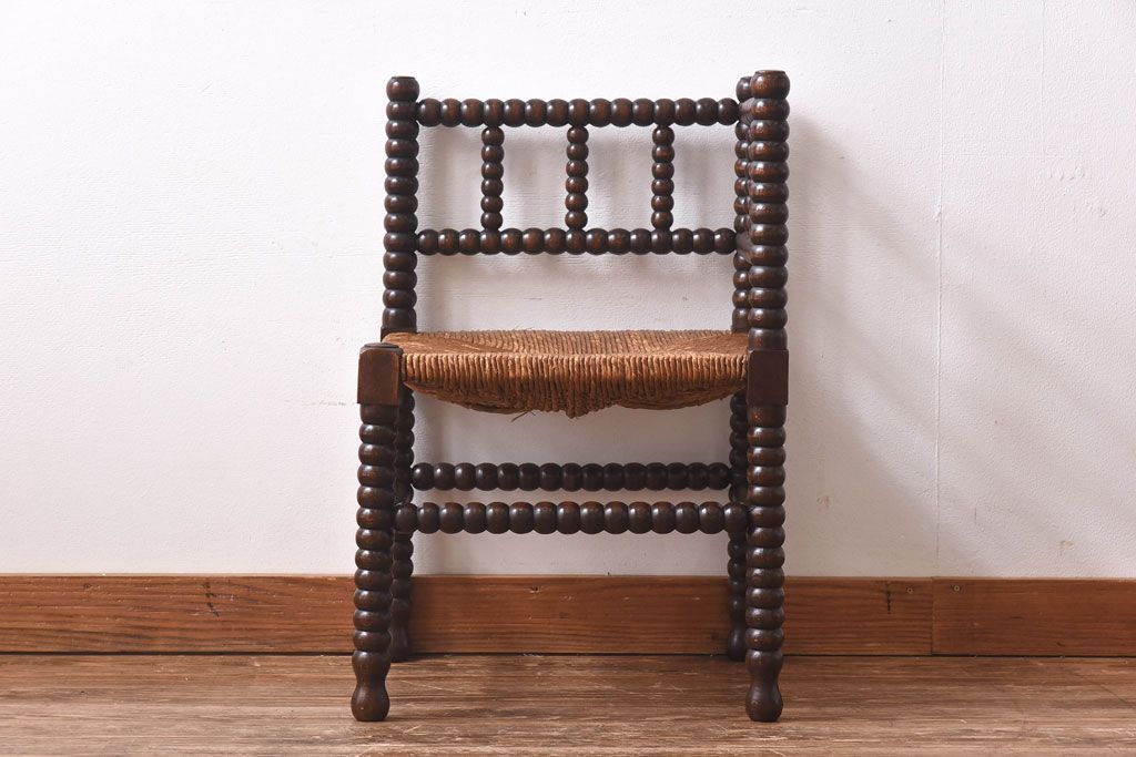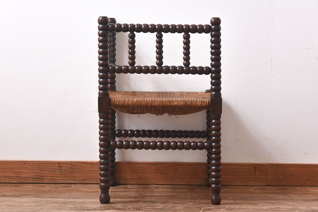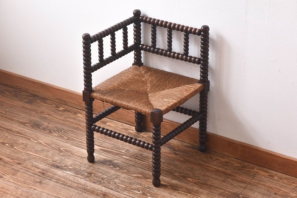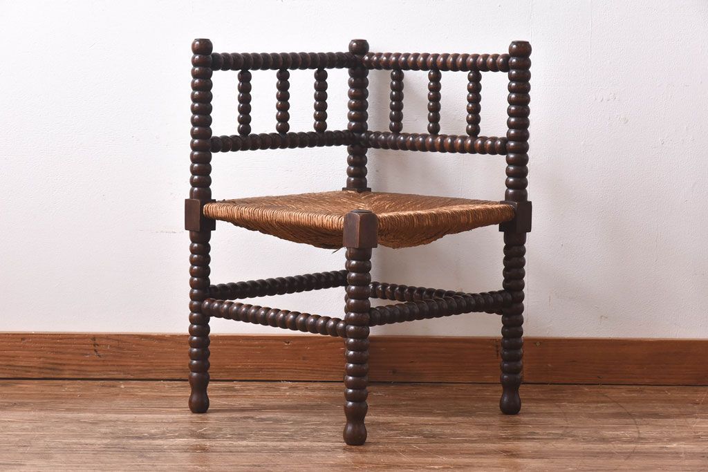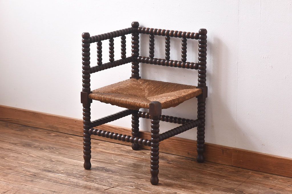 ラフジュ工房> 椅子・ベンチ> アームチェア > アンティーク家具 イギリスアンティーク ラッシ座面 ボビンレッグが存在感を放つコーナーチェア(アームチェア、椅子)(2)