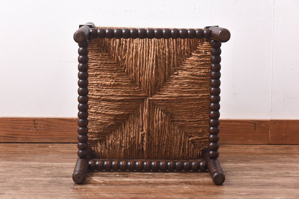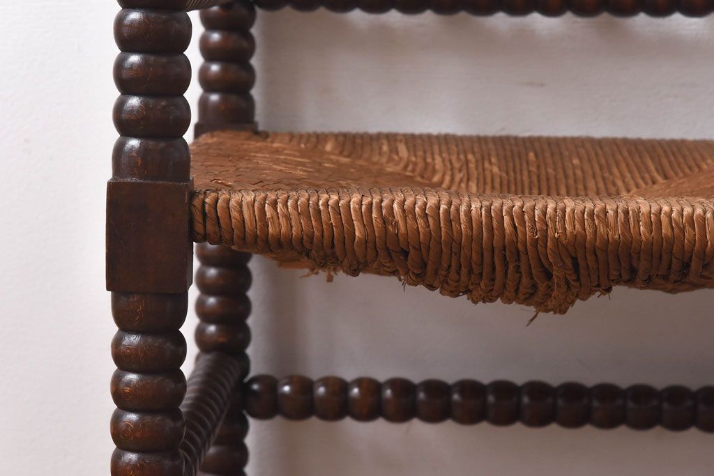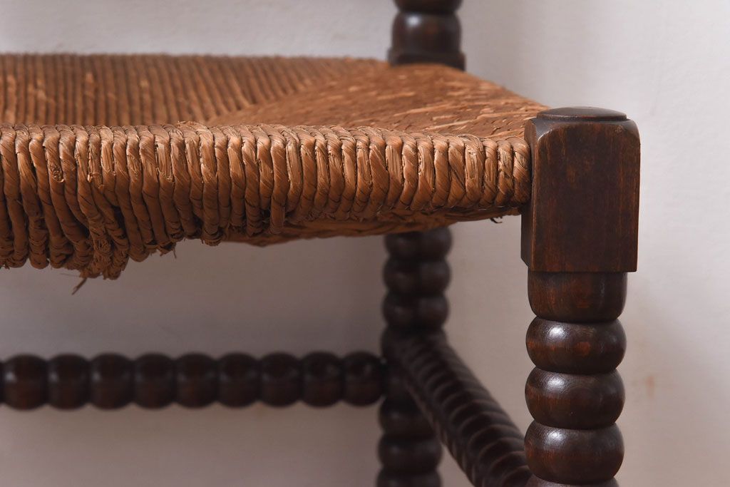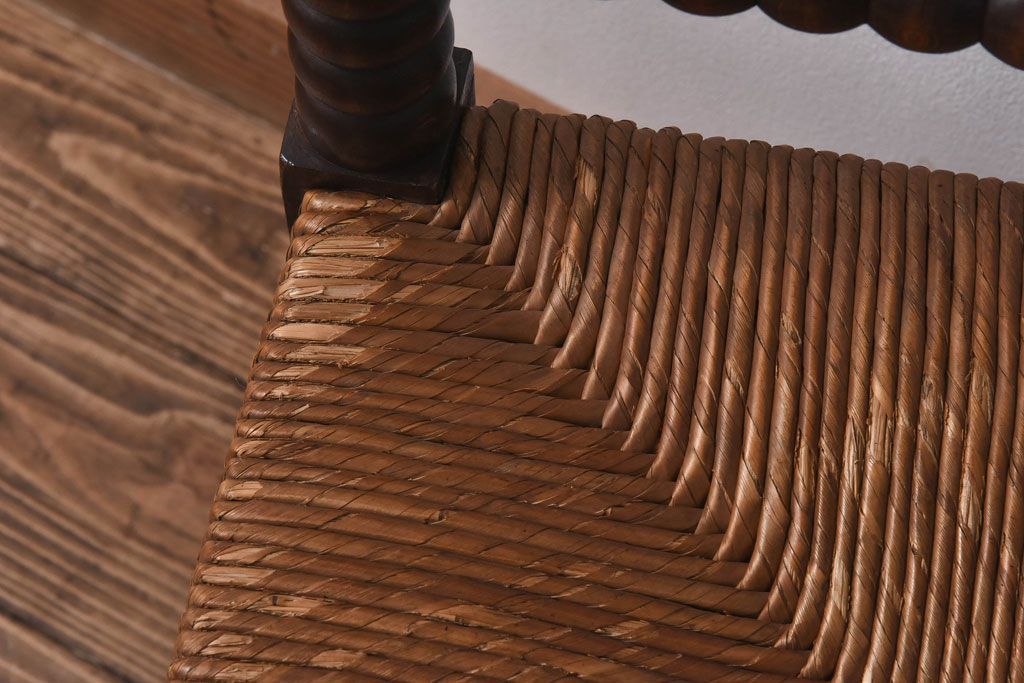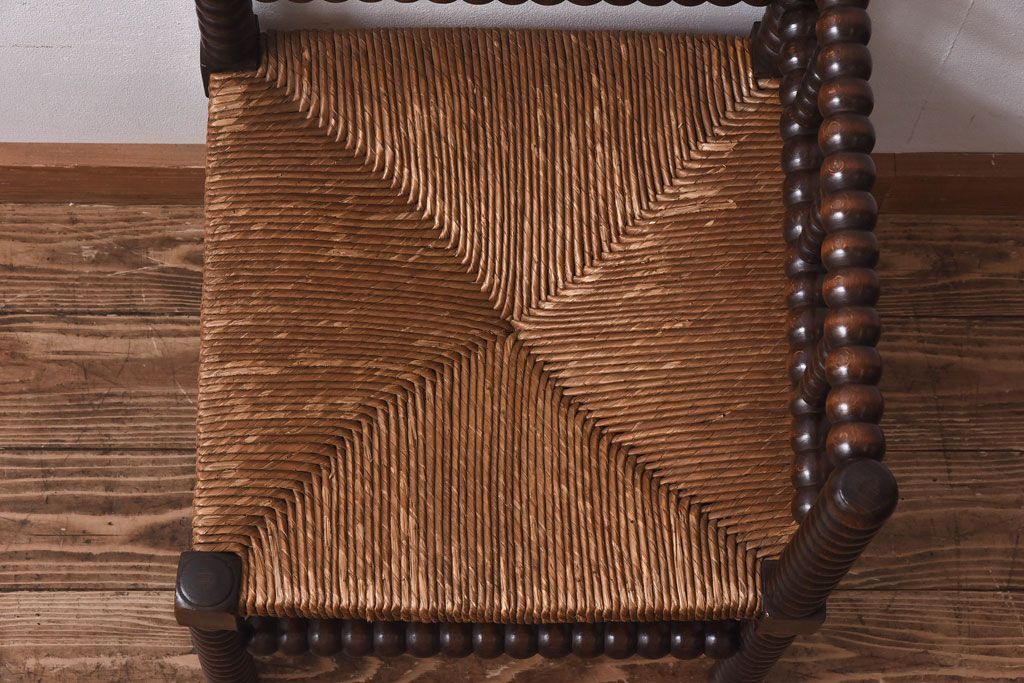 ラフジュ工房> 椅子・ベンチ> ダイニングチェア > アンティーク家具 イギリスアンティーク ラッシ座面 ボビンレッグが存在感を放つコーナーチェア(アームチェア、椅子)(2)