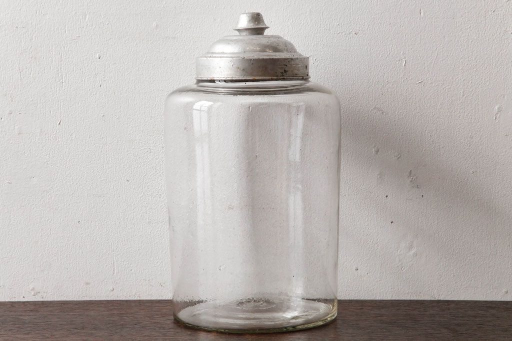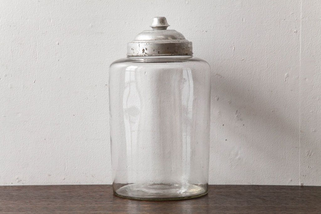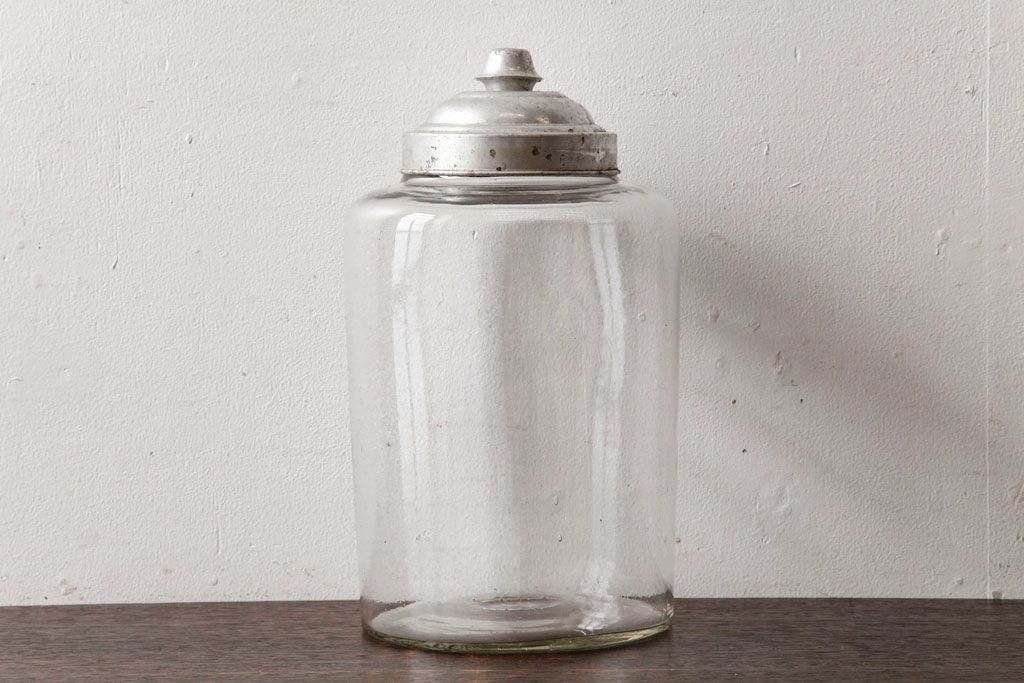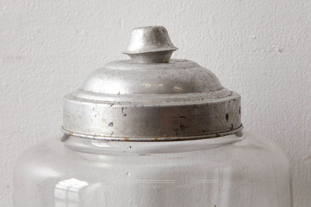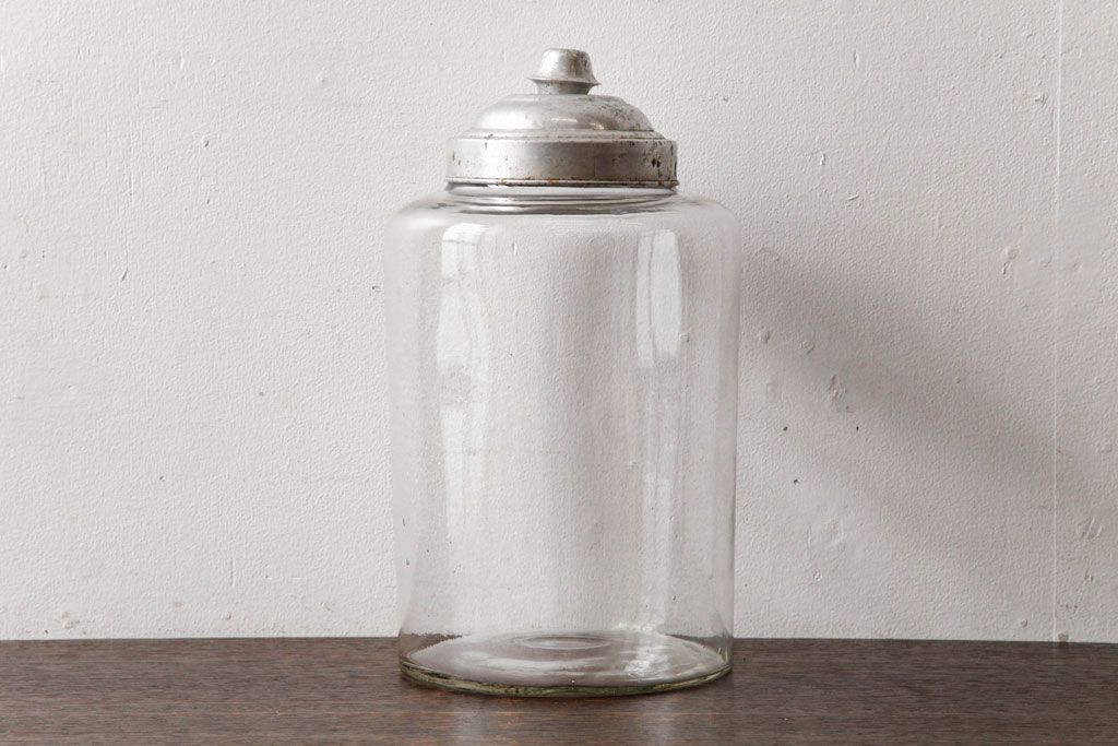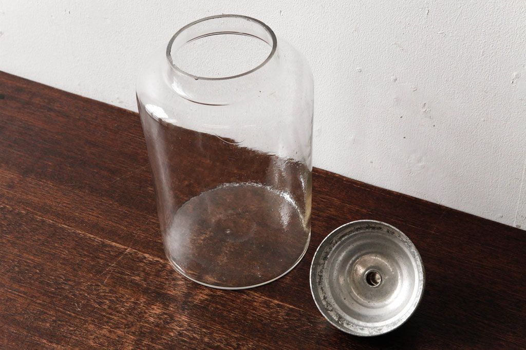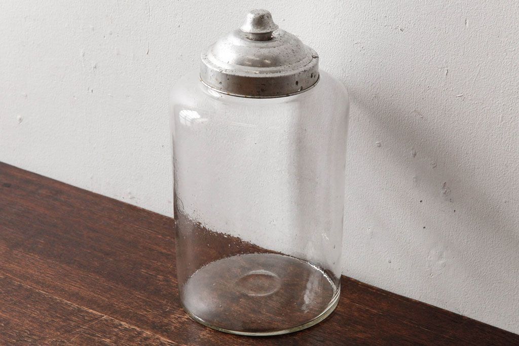ラフジュ工房> 雑貨> ガラス瓶・花瓶 > アンティーク雑貨 昭和レトロ 味のあるアルミ蓋の筒型ガラス瓶(キャニスター)