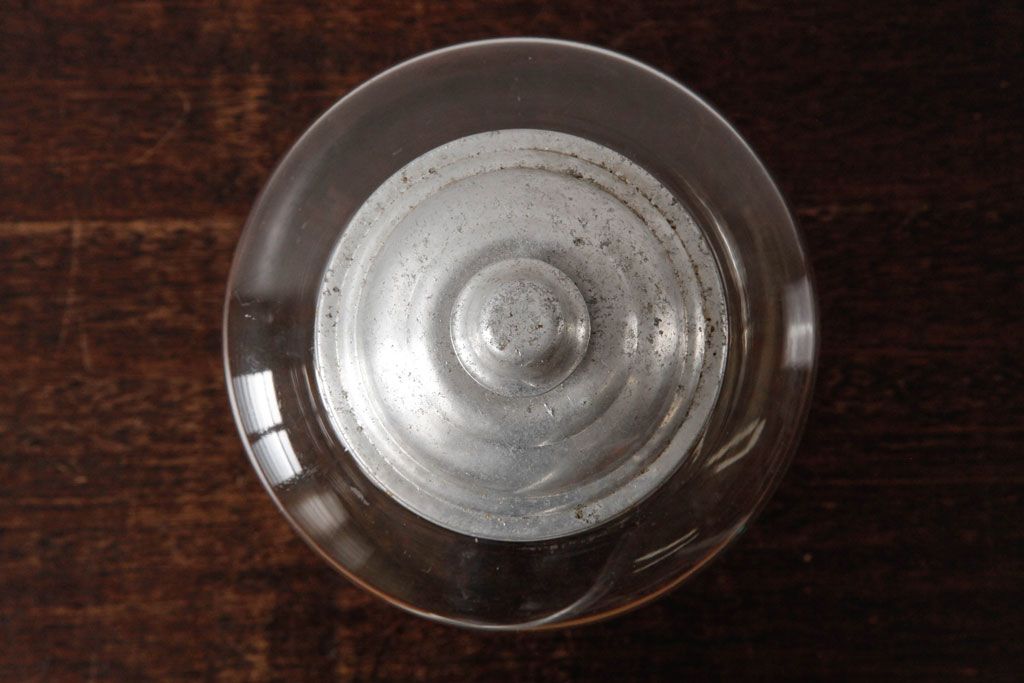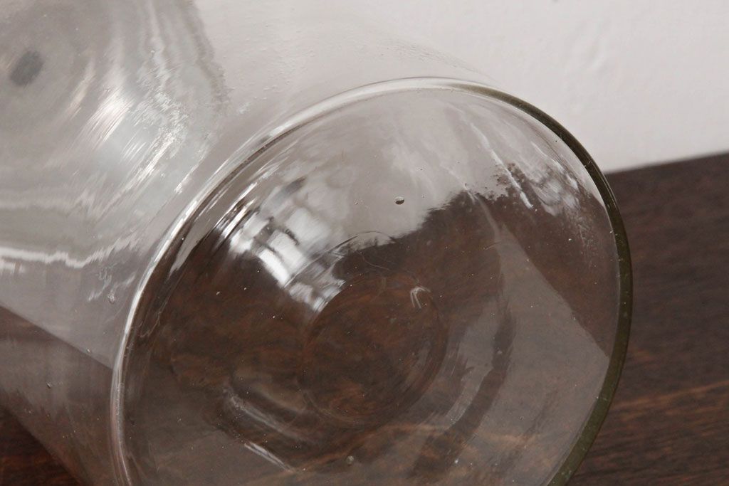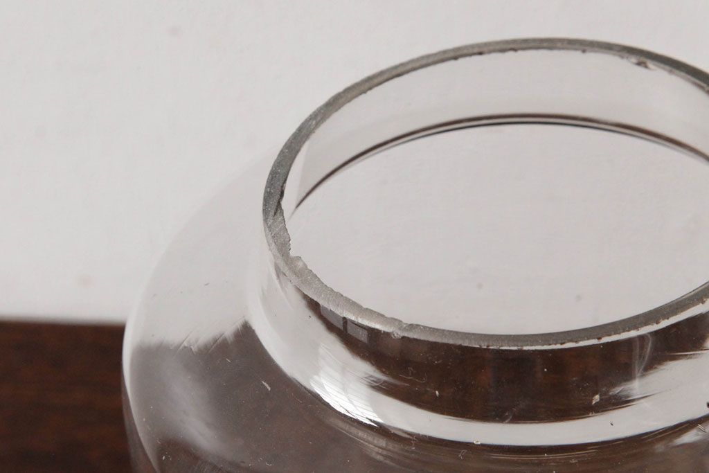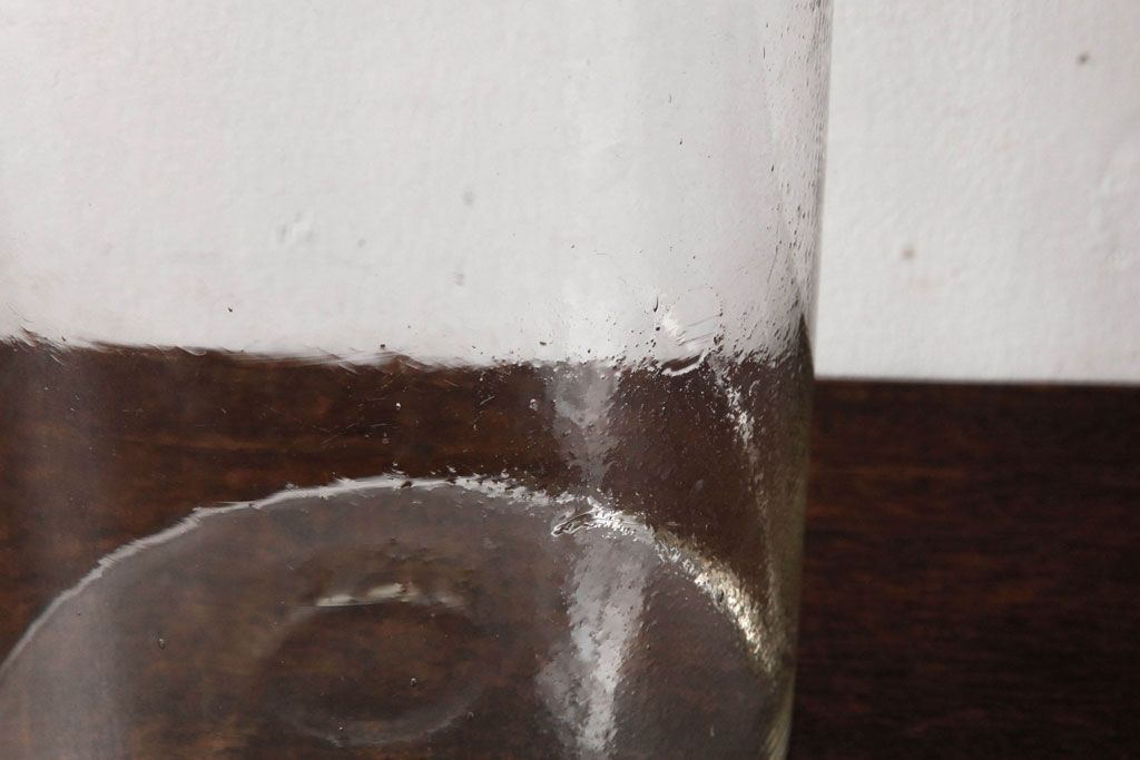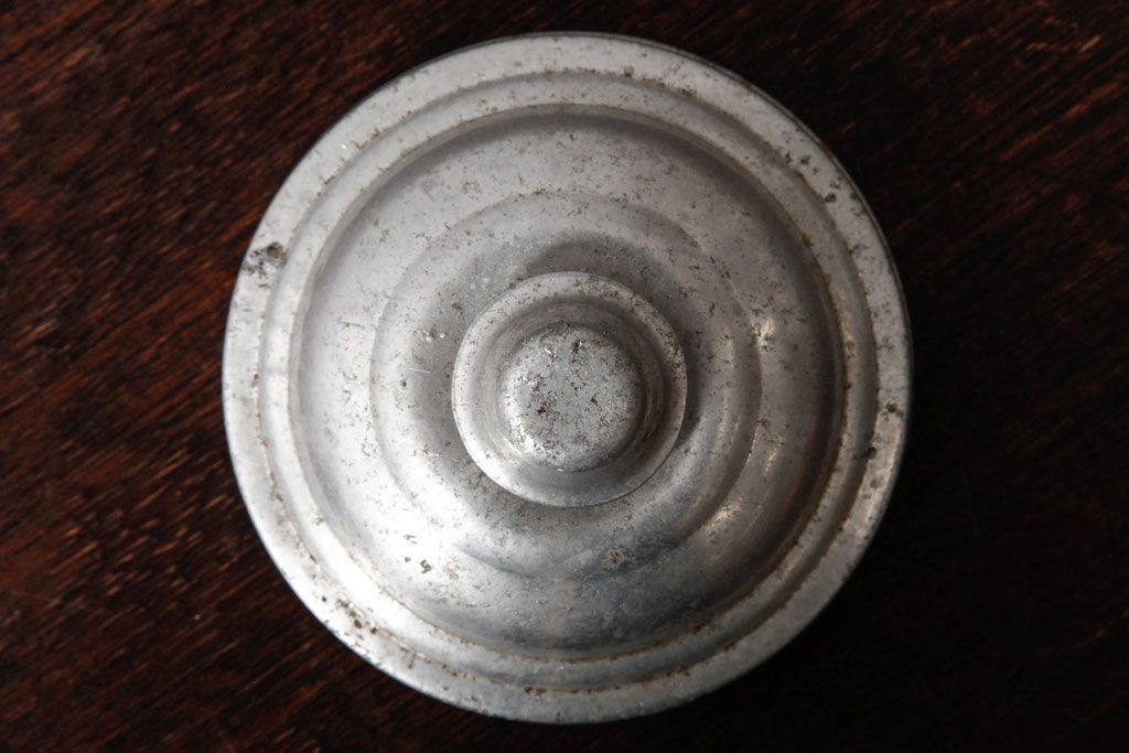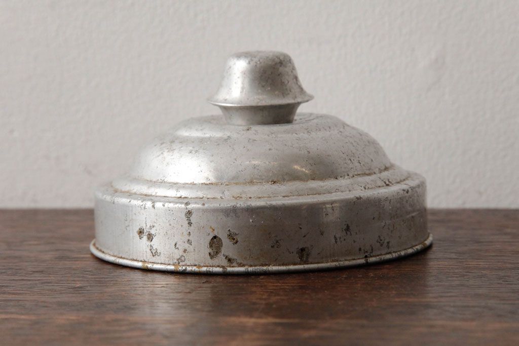 アンティーク雑貨 昭和レトロ 味のあるアルミ蓋の筒型ガラス瓶(キャニスター)