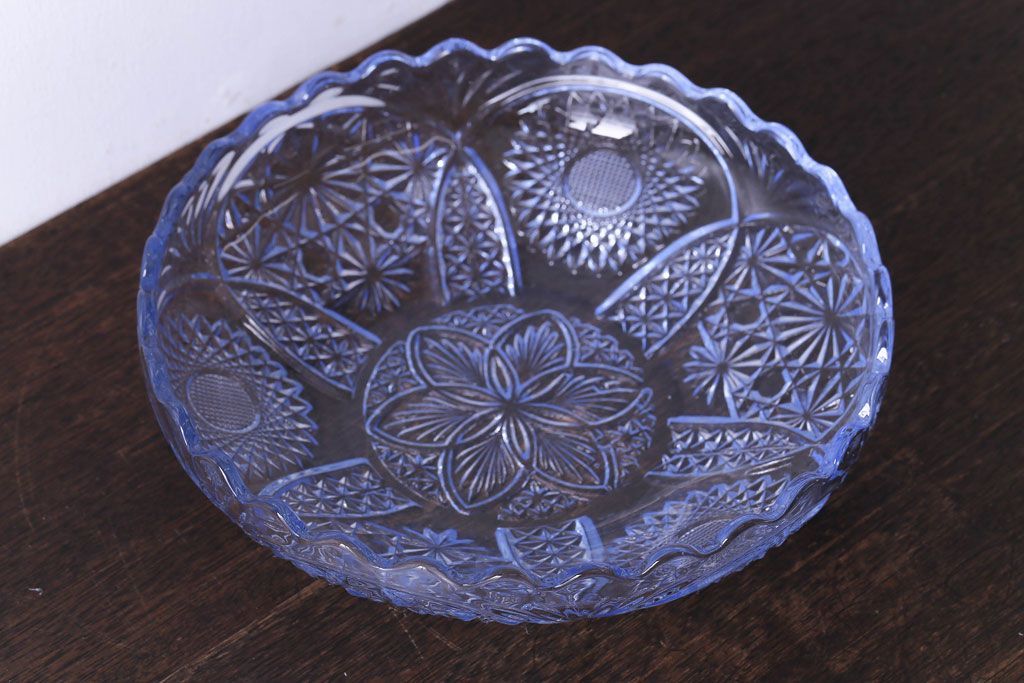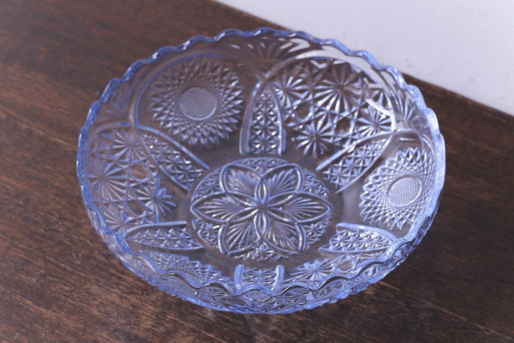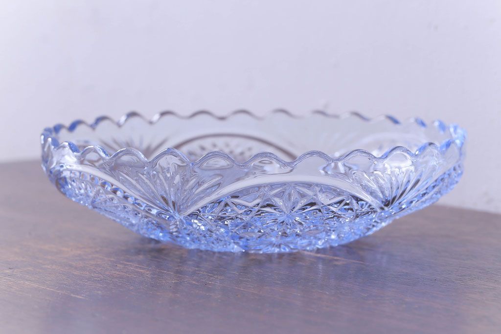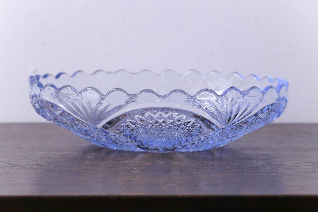 アンティーク雑貨 昭和レトロ 涼しげな色合いが魅力のガラス皿(プレスガラス、器)