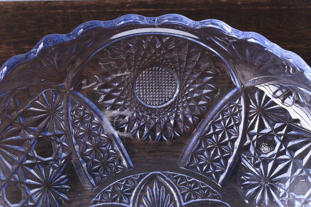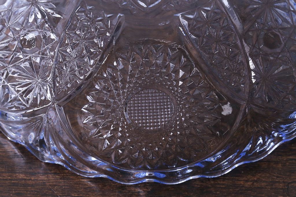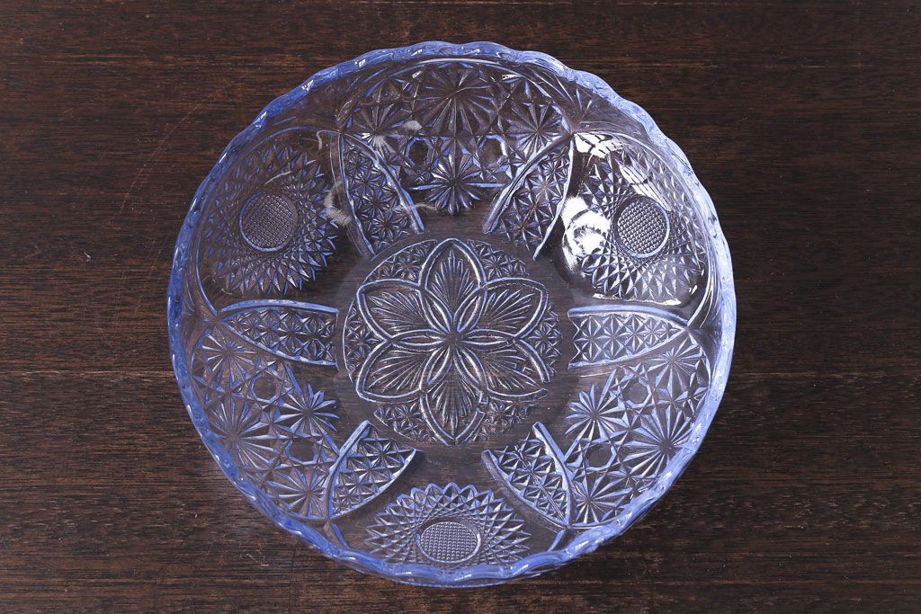 ラフジュ工房> 骨董・美術品> 骨董-ガラス食器 > アンティーク雑貨 昭和レトロ 涼しげな色合いが魅力のガラス皿(プレスガラス、器)