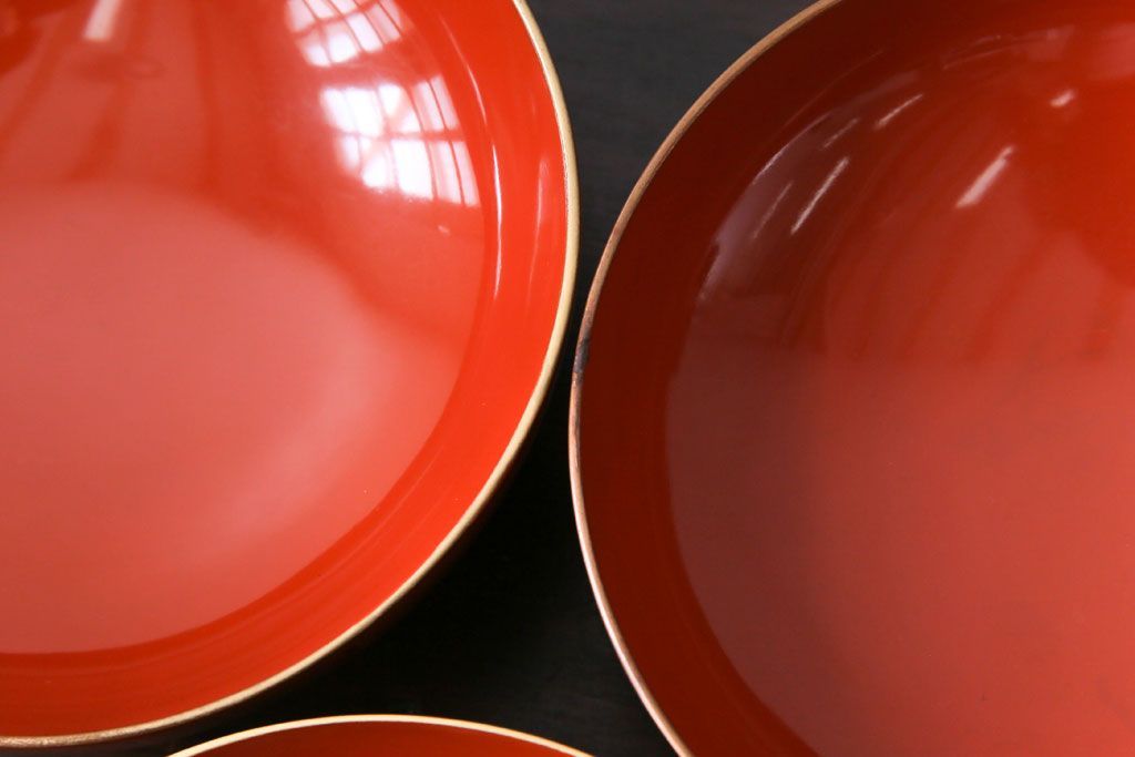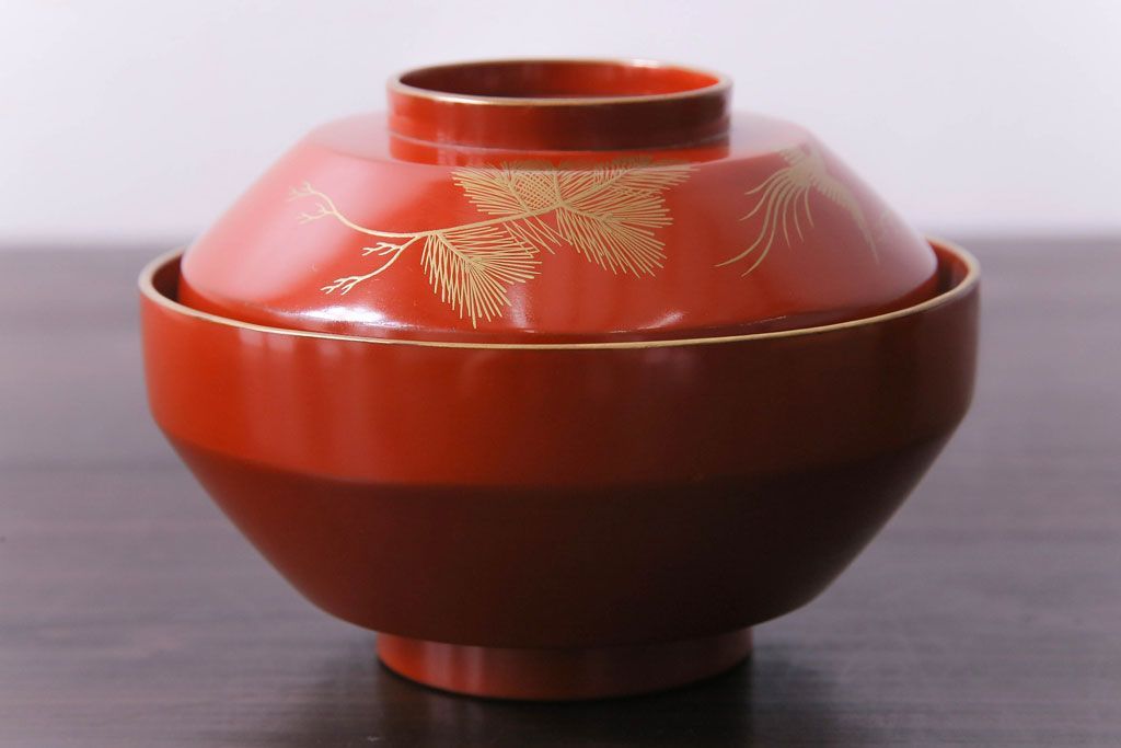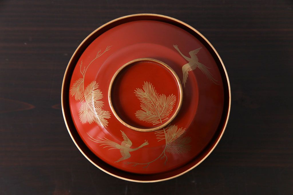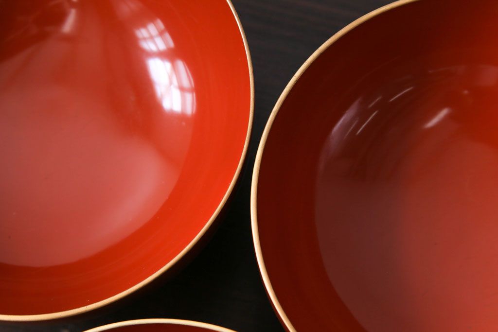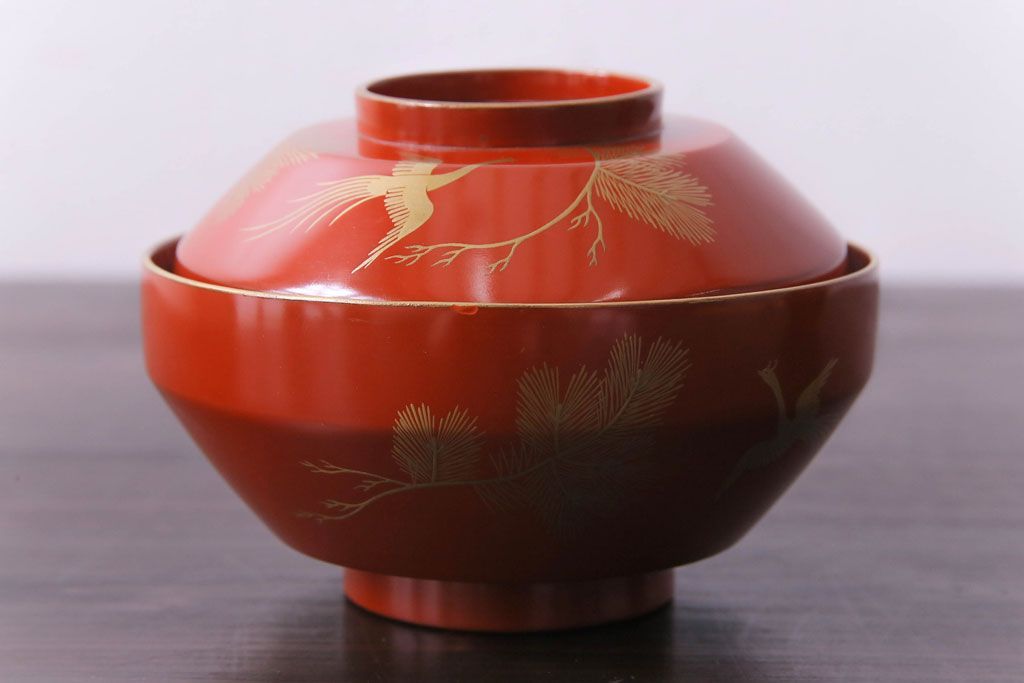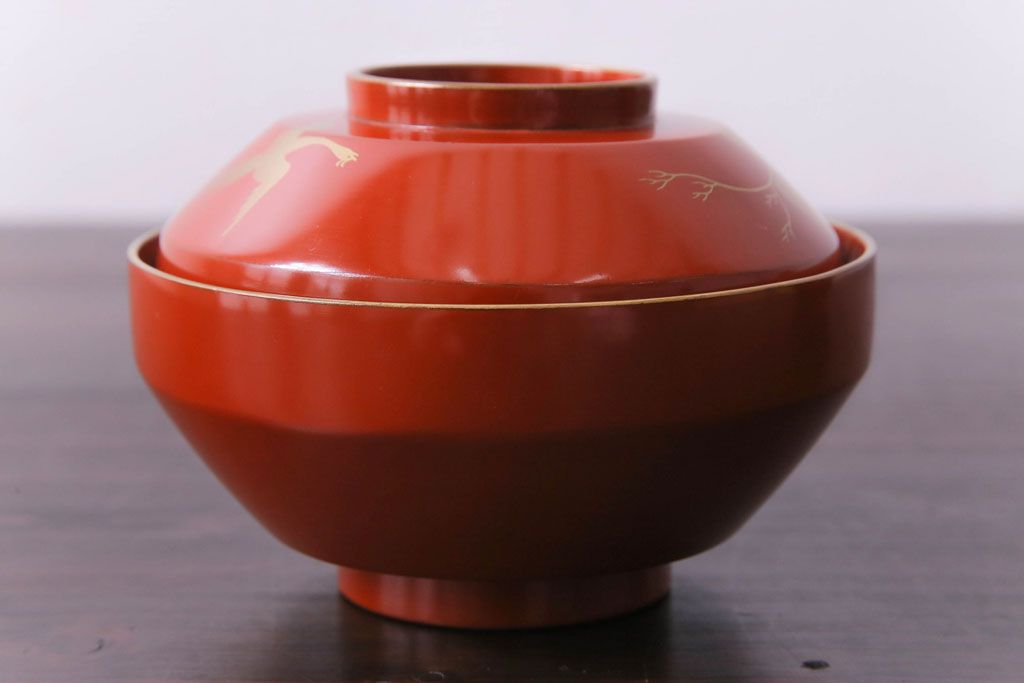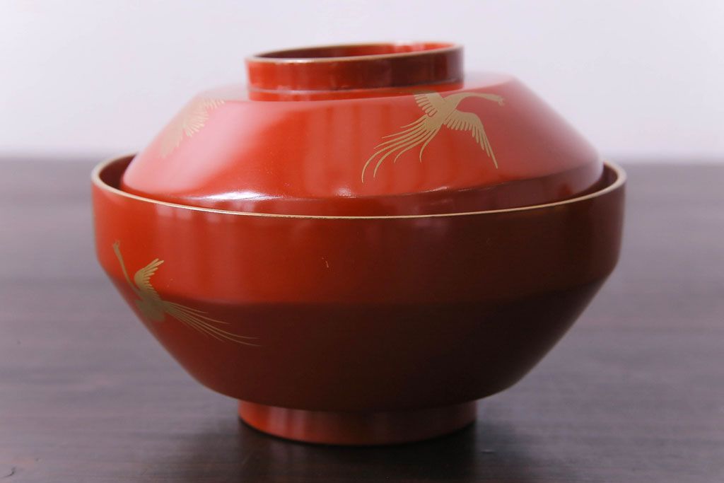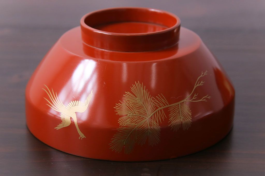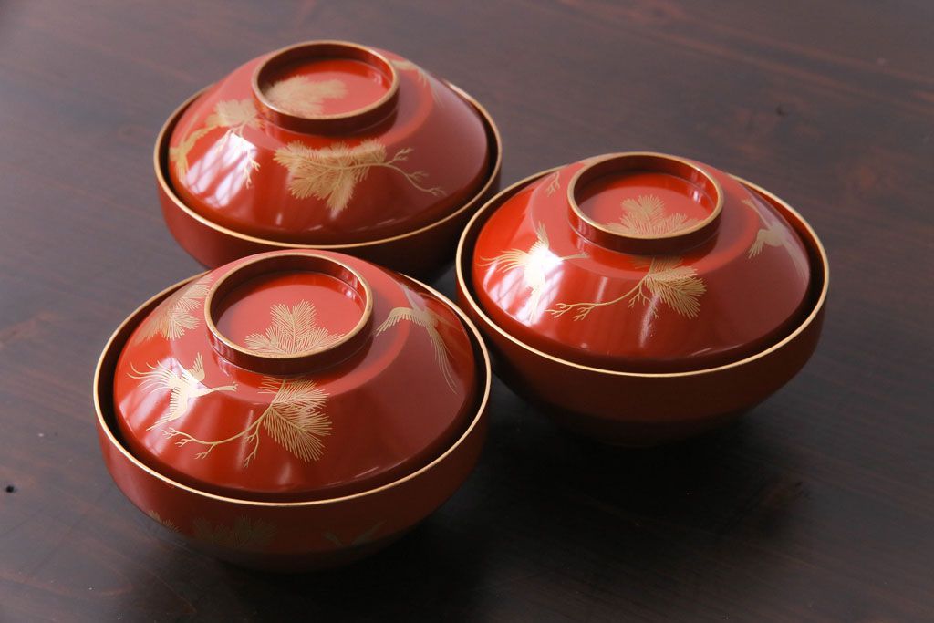 ラフジュ工房> 和食器・茶道具> お椀・茶碗 > アンティーク 大正昭和初期 鳳凰 朱塗り木製碗3客セット(漆器)