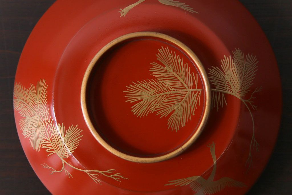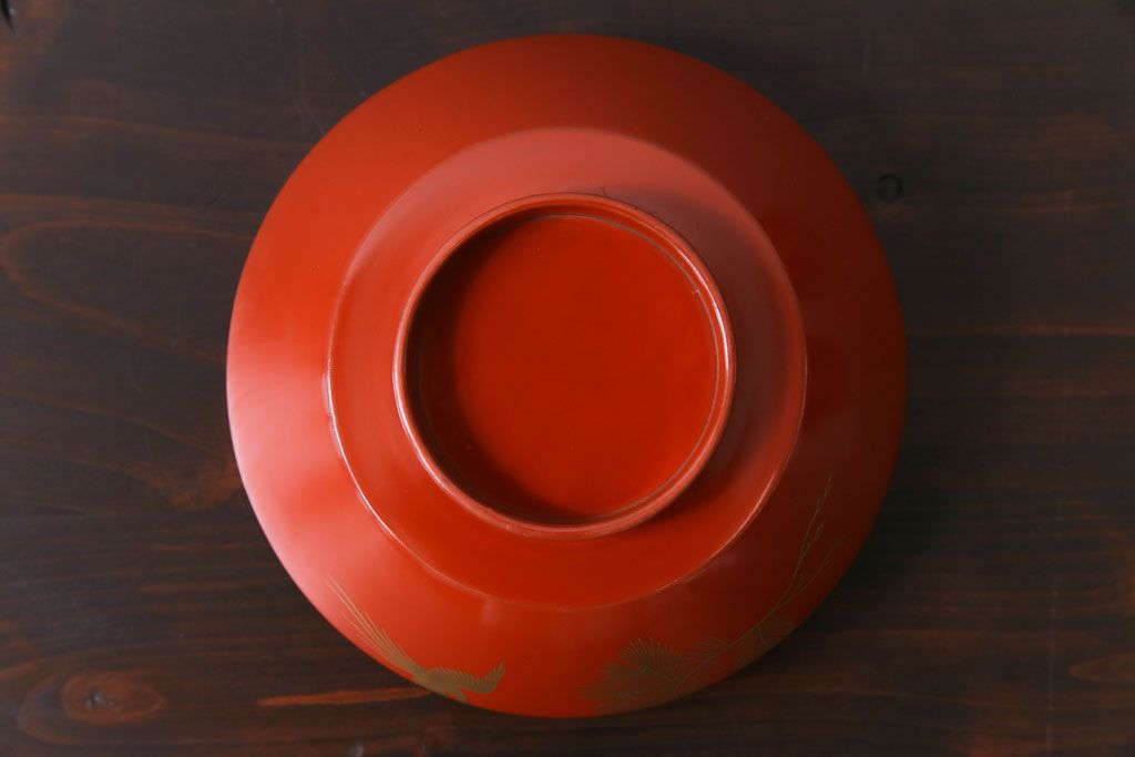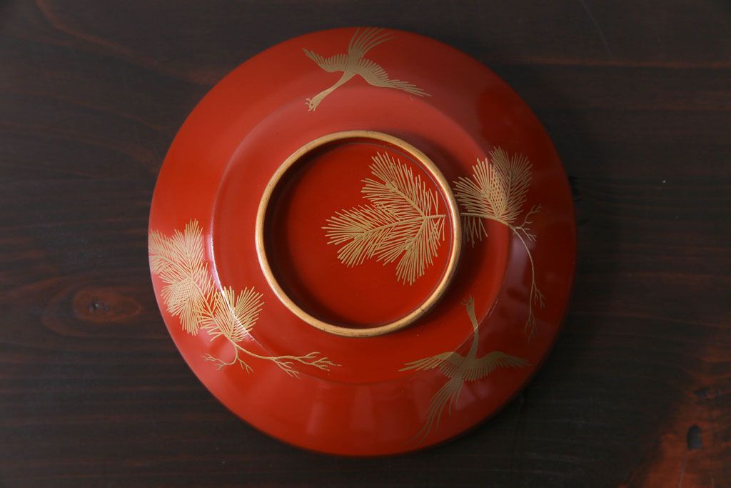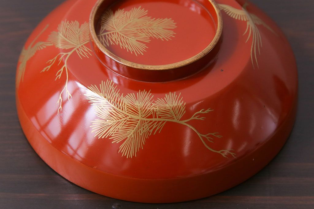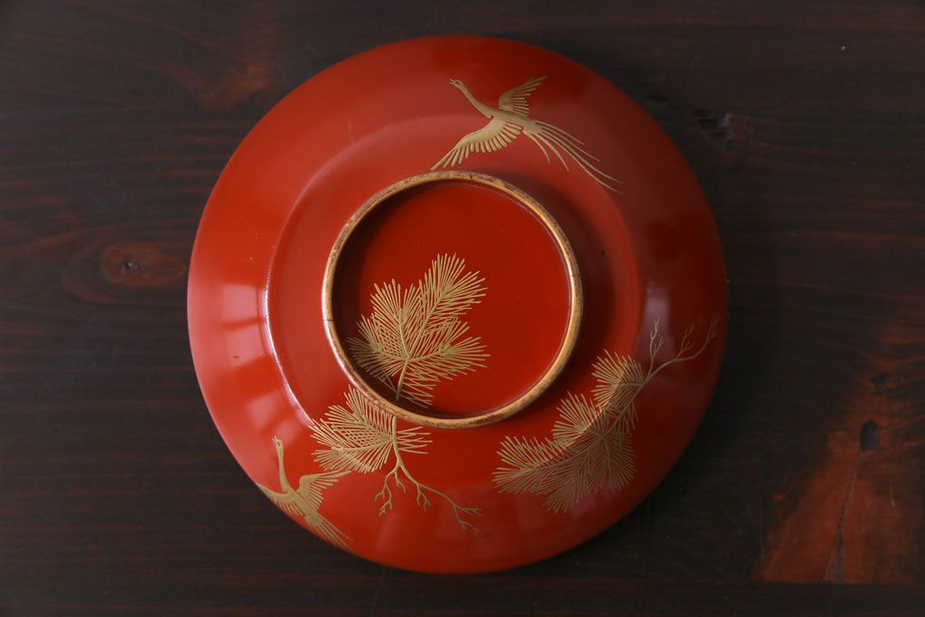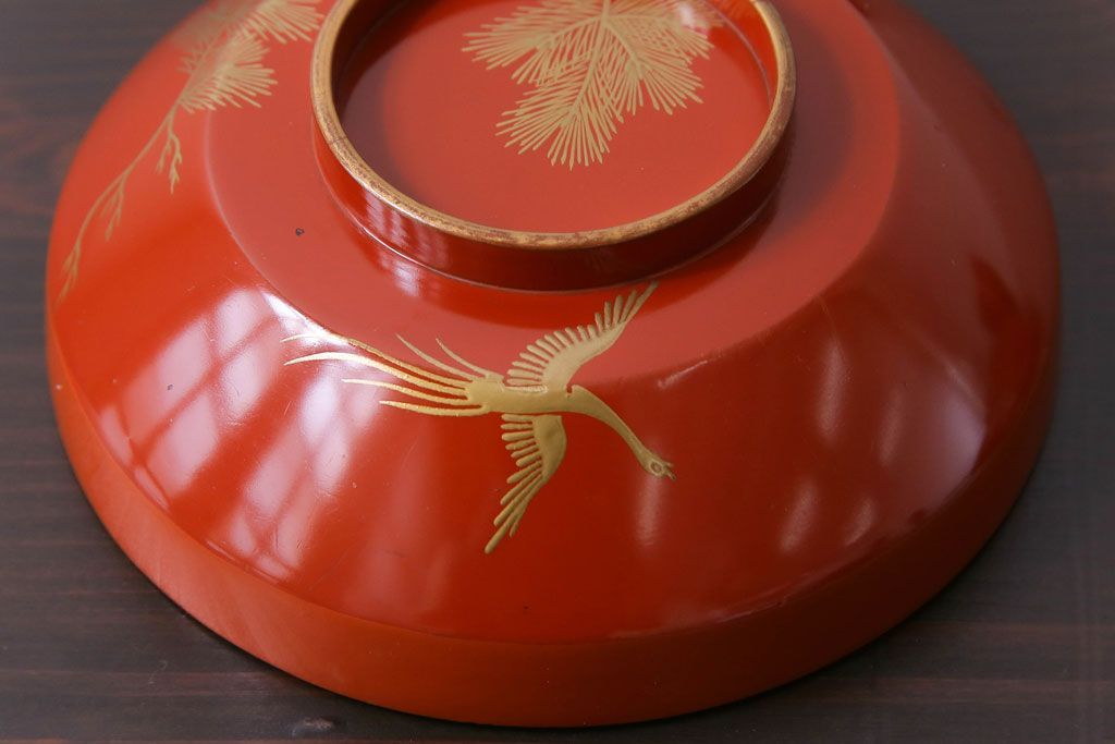 ラフジュ工房> 骨董・美術品> 骨董-漆器 > アンティーク 大正昭和初期 鳳凰 朱塗り木製碗3客セット(漆器)