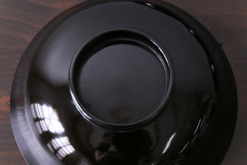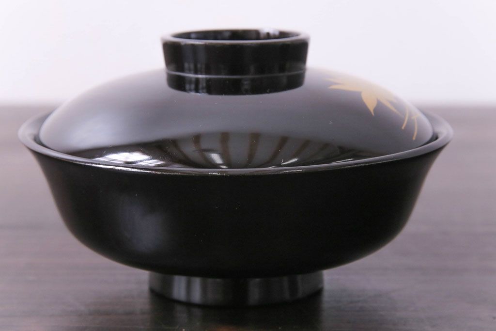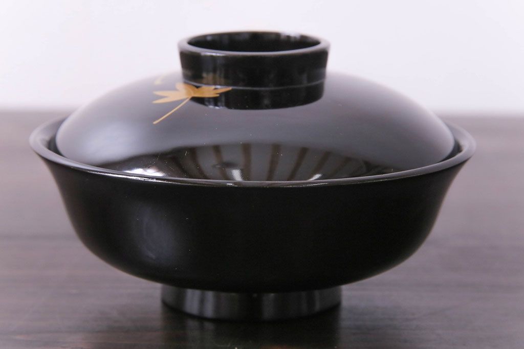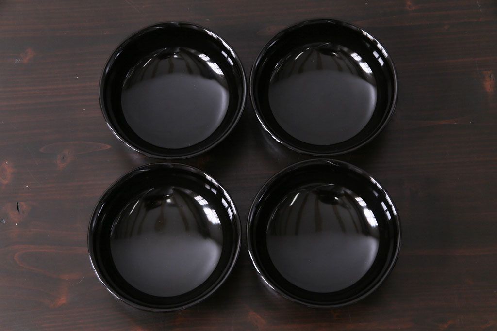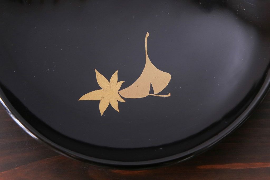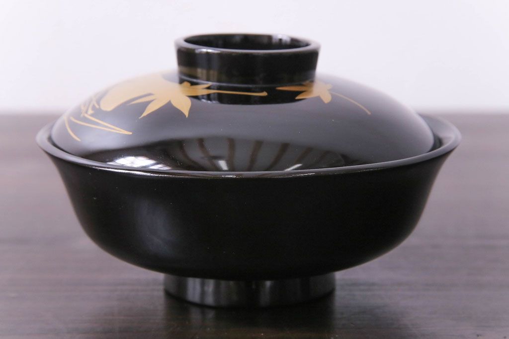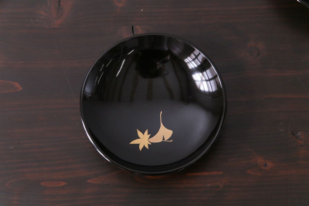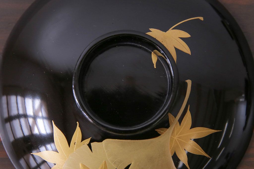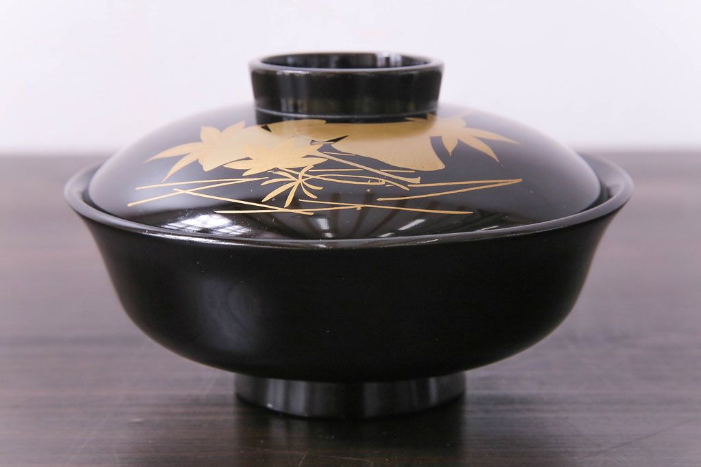 和製アンティーク 黒漆塗り 紅葉と銀杏の図柄が和の雰囲気漂う木製碗4客セット(漆器)