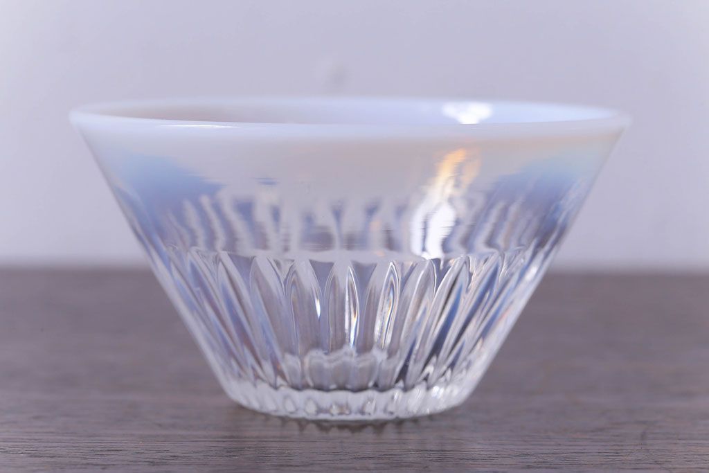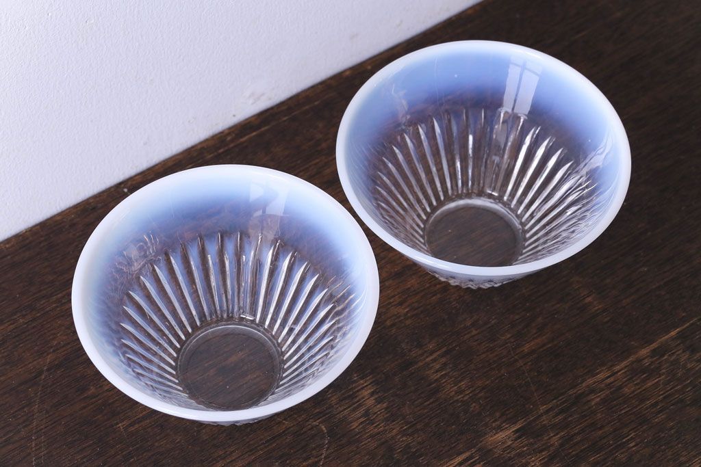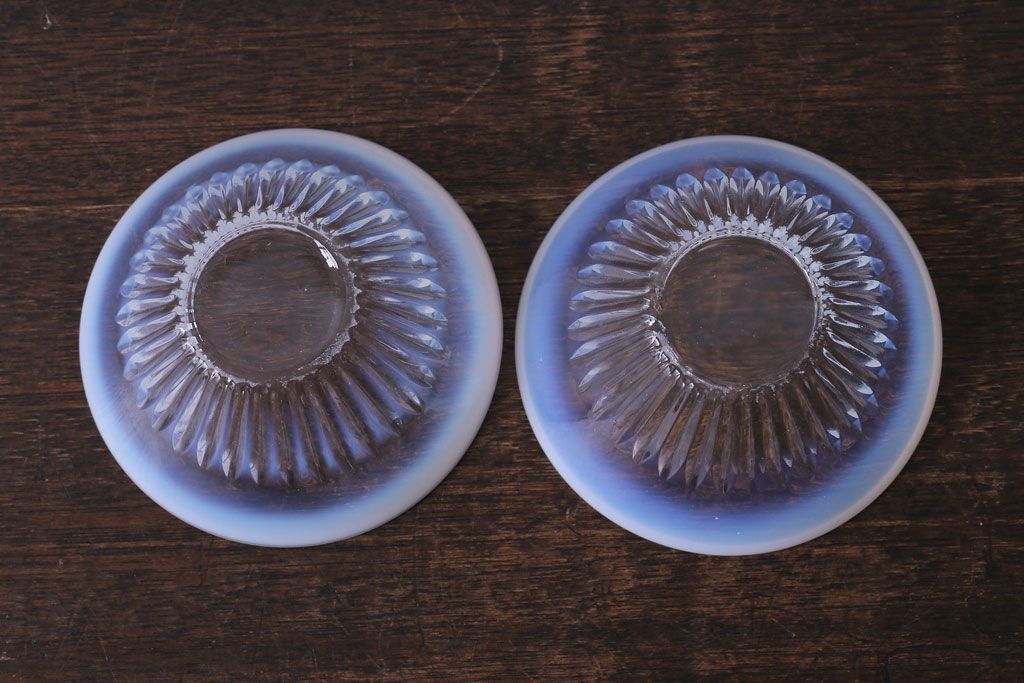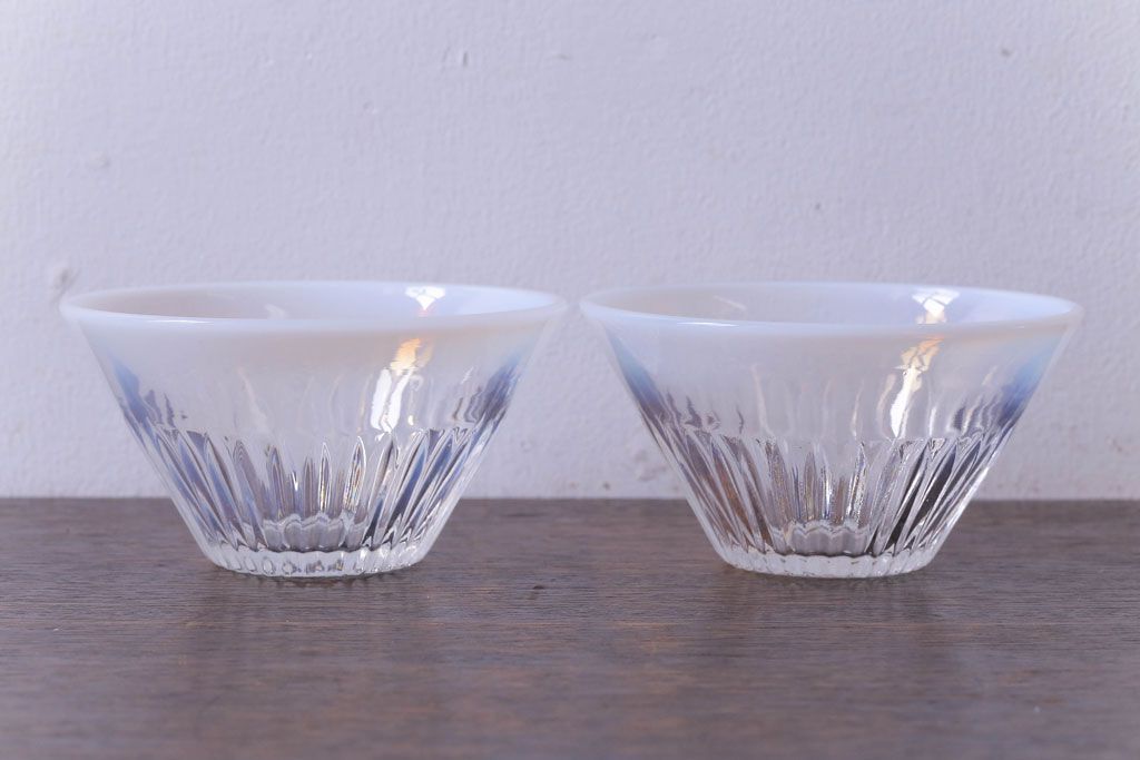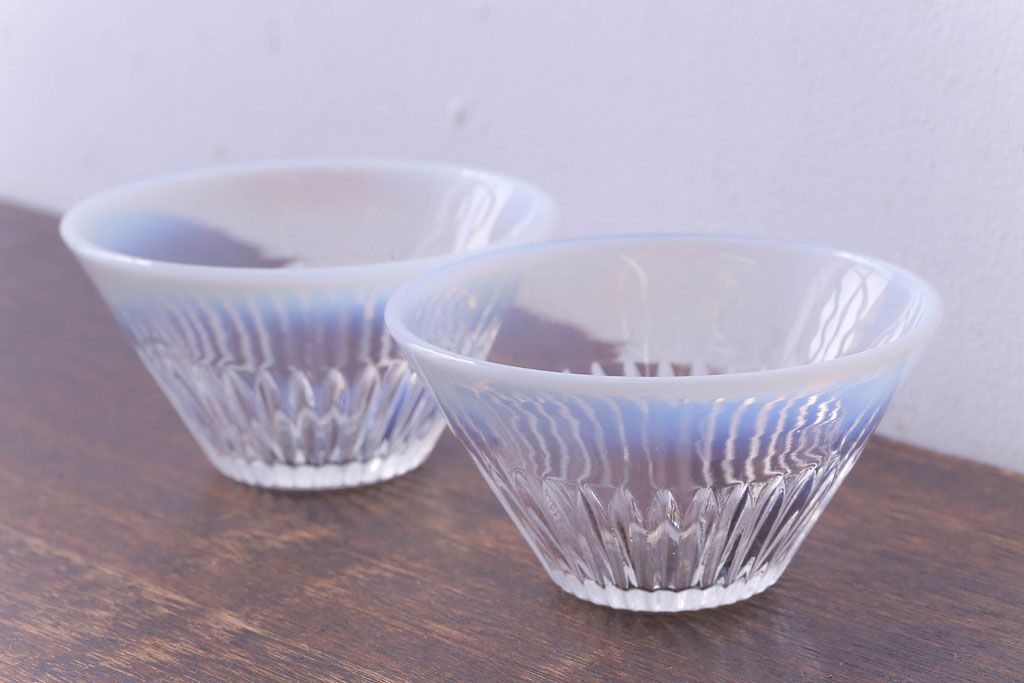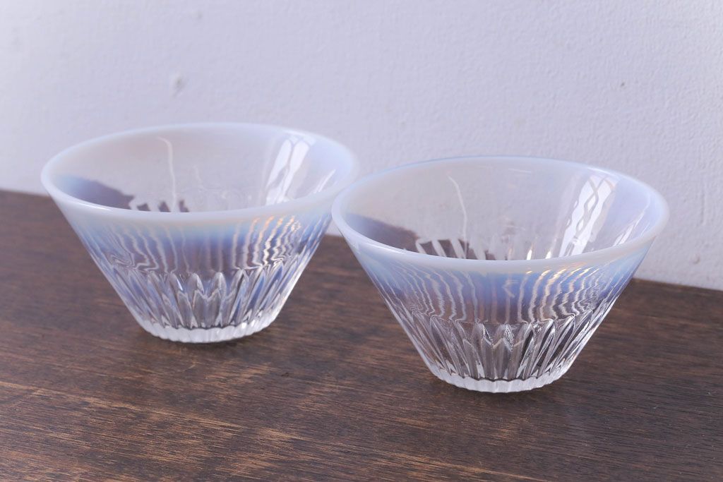 ラフジュ工房> 和食器・茶道具 > アンティーク雑貨 和製アンティーク 乳白色の縁がおしゃれなガラス器(プレスガラス、向付)2点セット