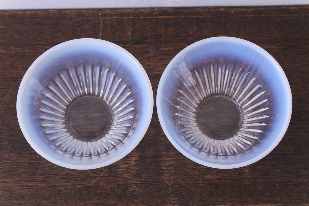 アンティーク雑貨 和製アンティーク 乳白色の縁がおしゃれなガラス器(プレスガラス、向付)2点セット
