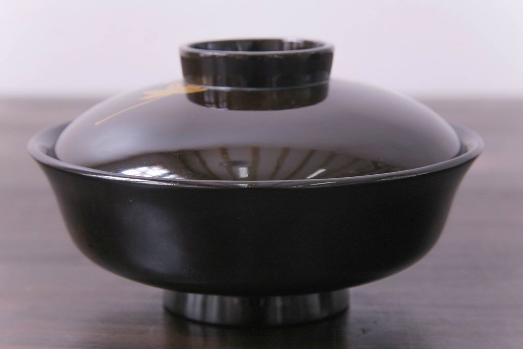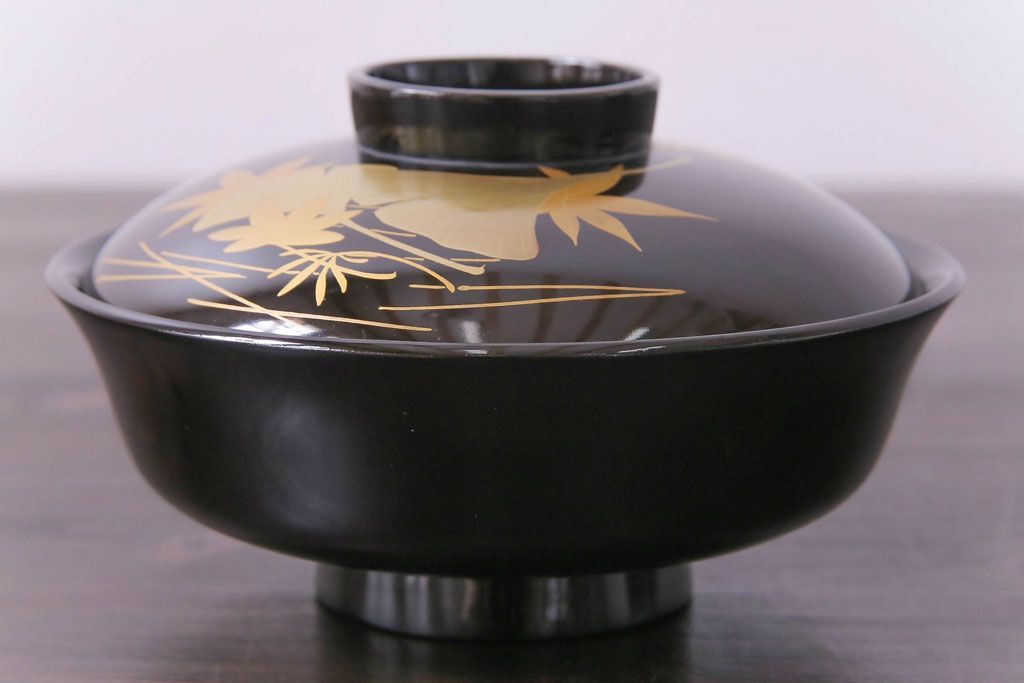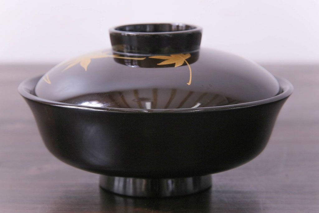 ラフジュ工房> 和食器・茶道具> お椀・茶碗 > 和製アンティーク 黒漆塗り 紅葉と銀杏の図柄が和の雰囲気漂う木製碗4客セット(漆器)(1)