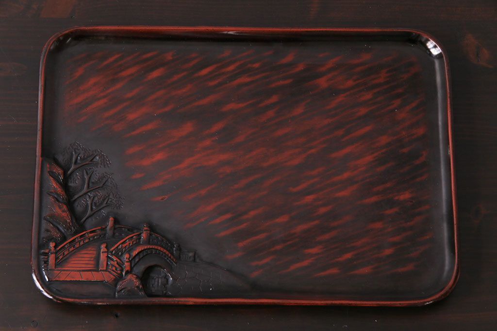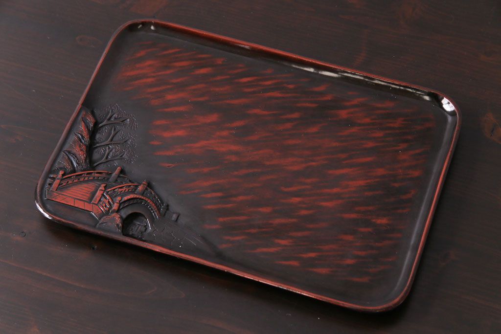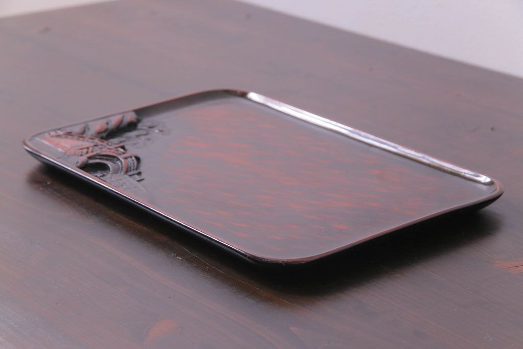 和製アンティーク 漆塗り 上品さと渋い味わいが魅力のお盆(トレー、漆器)