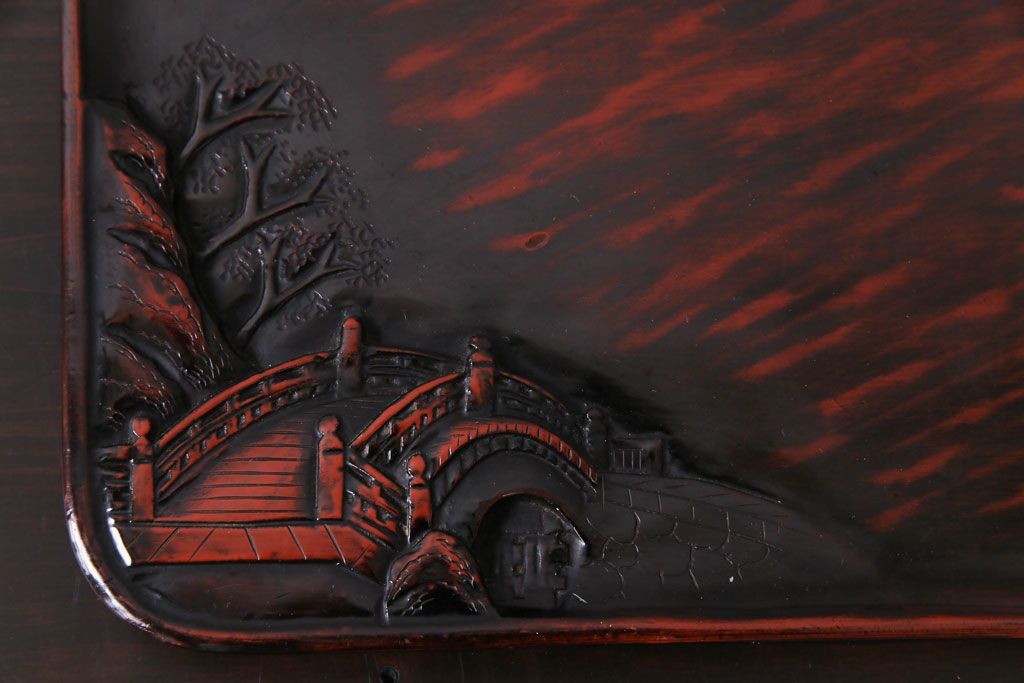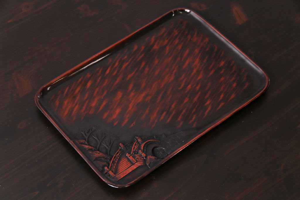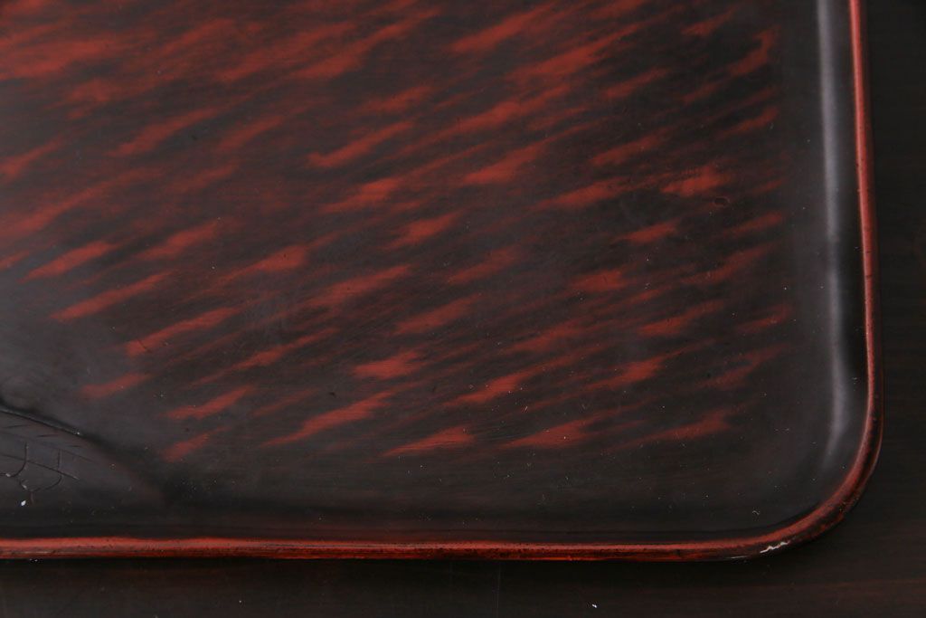 ラフジュ工房> 骨董・美術品> 骨董-漆器 > 和製アンティーク 漆塗り 上品さと渋い味わいが魅力のお盆(トレー、漆器)
