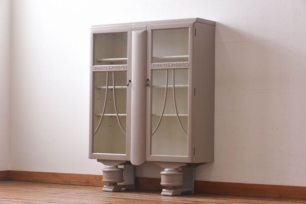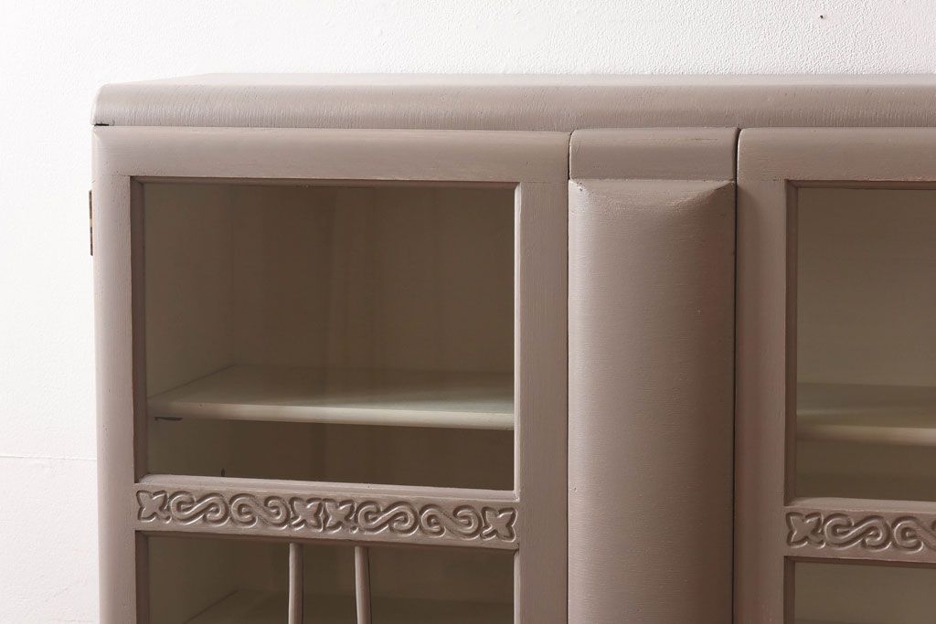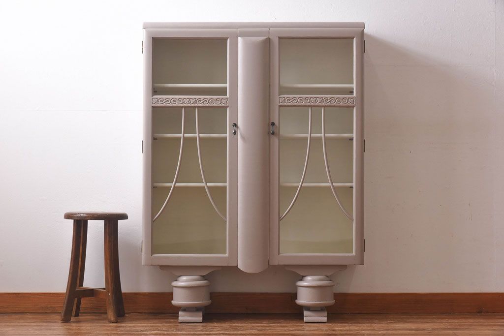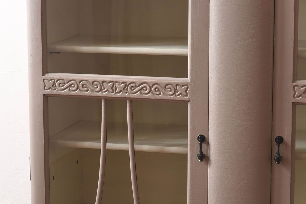 イギリスアンティーク ペイント家具 優しげな色合いが上品なペイントキャビネット(収納棚、本棚)