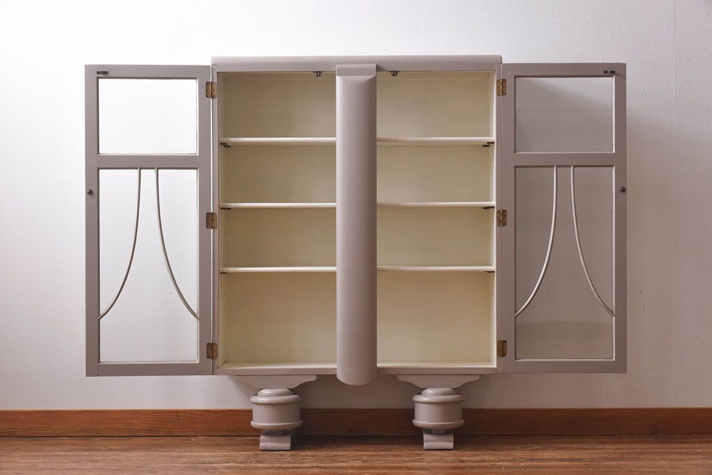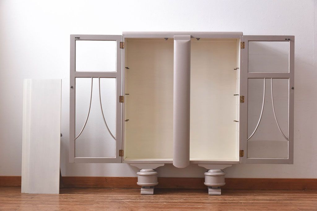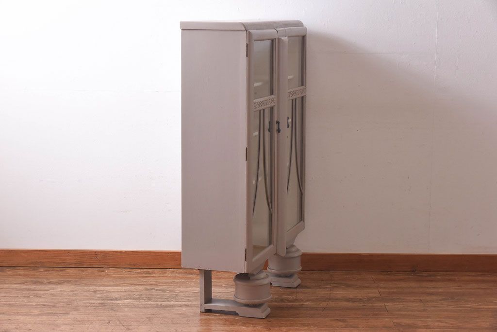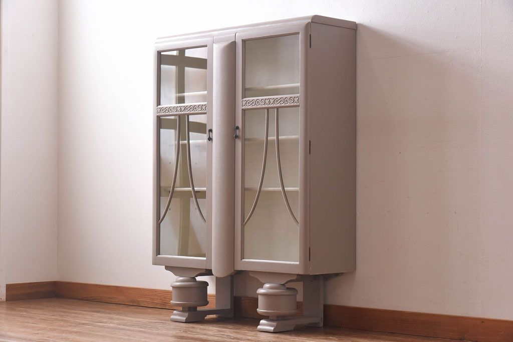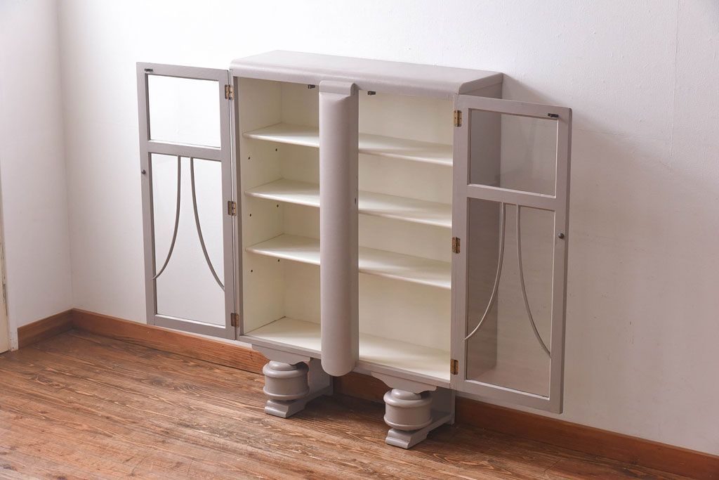 イギリスアンティーク ペイント家具 優しげな色合いが上品なペイントキャビネット(収納棚、本棚)